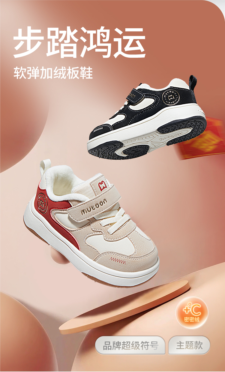 牧童儿童板鞋2025冬季新款男童轻便软底小童运动鞋加绒女童二棉鞋