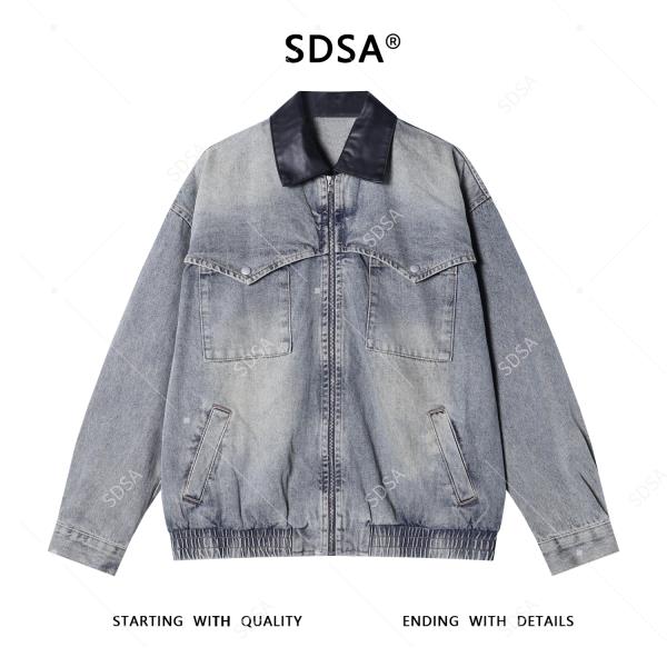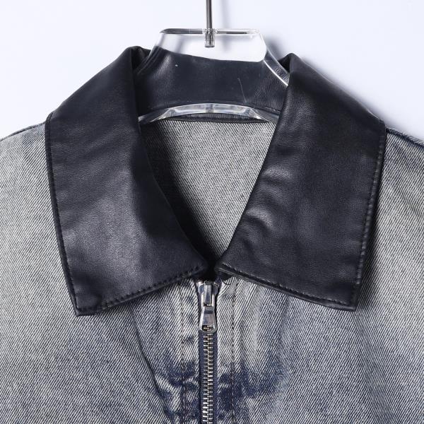 9276SDSA男士秋冬新款痞帅男装美式潮牌拼皮翻领牛仔外套街头时尚百搭