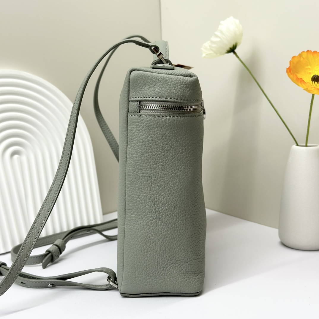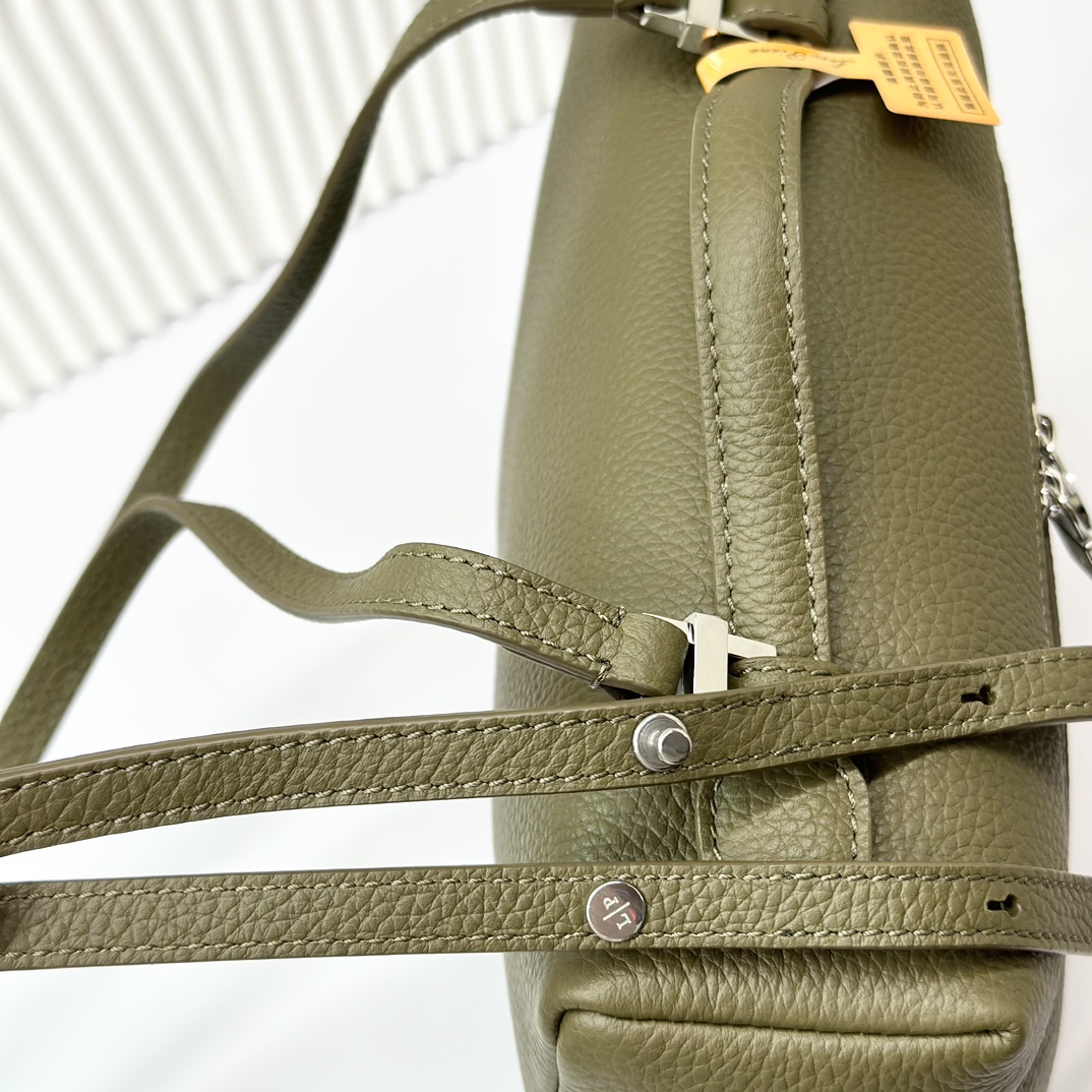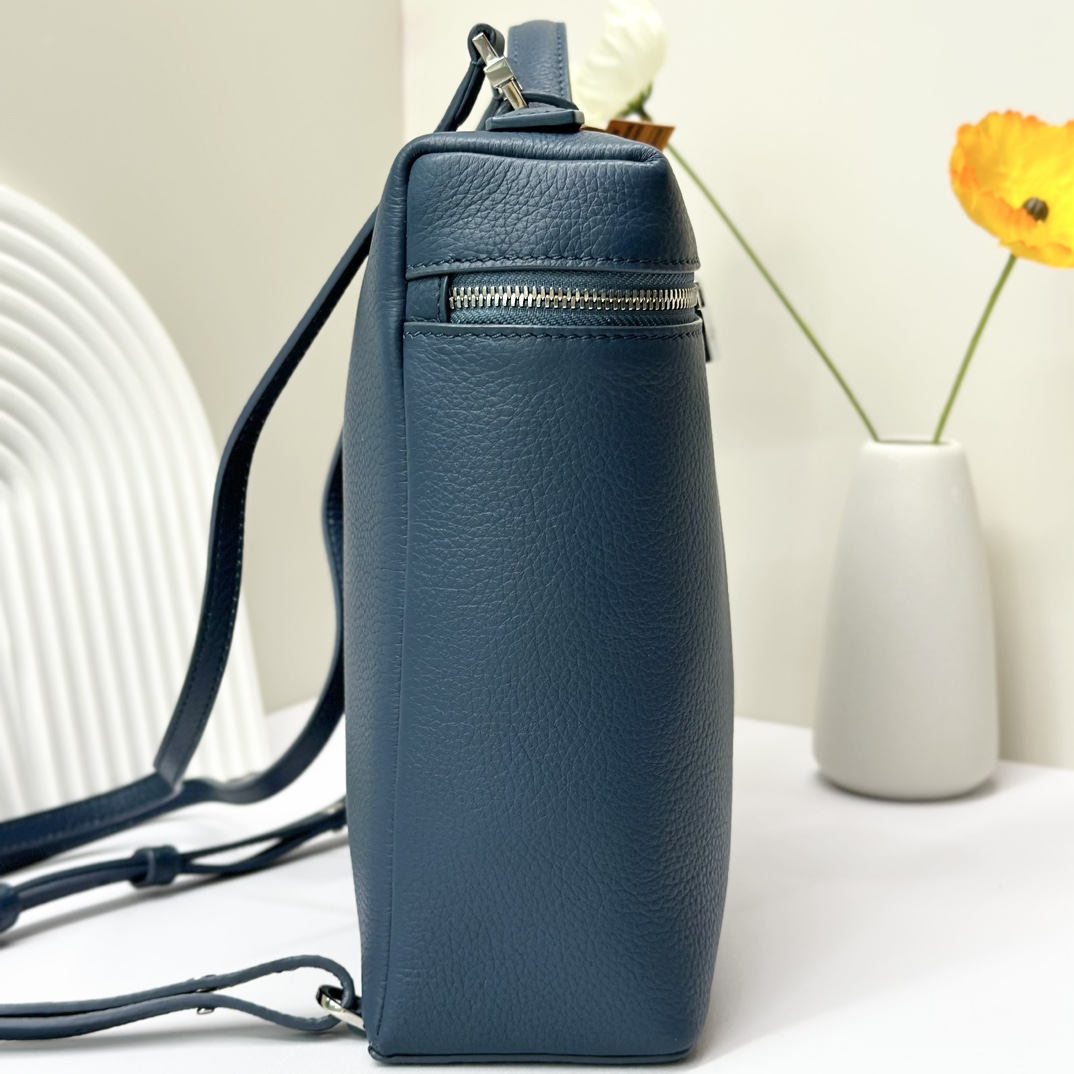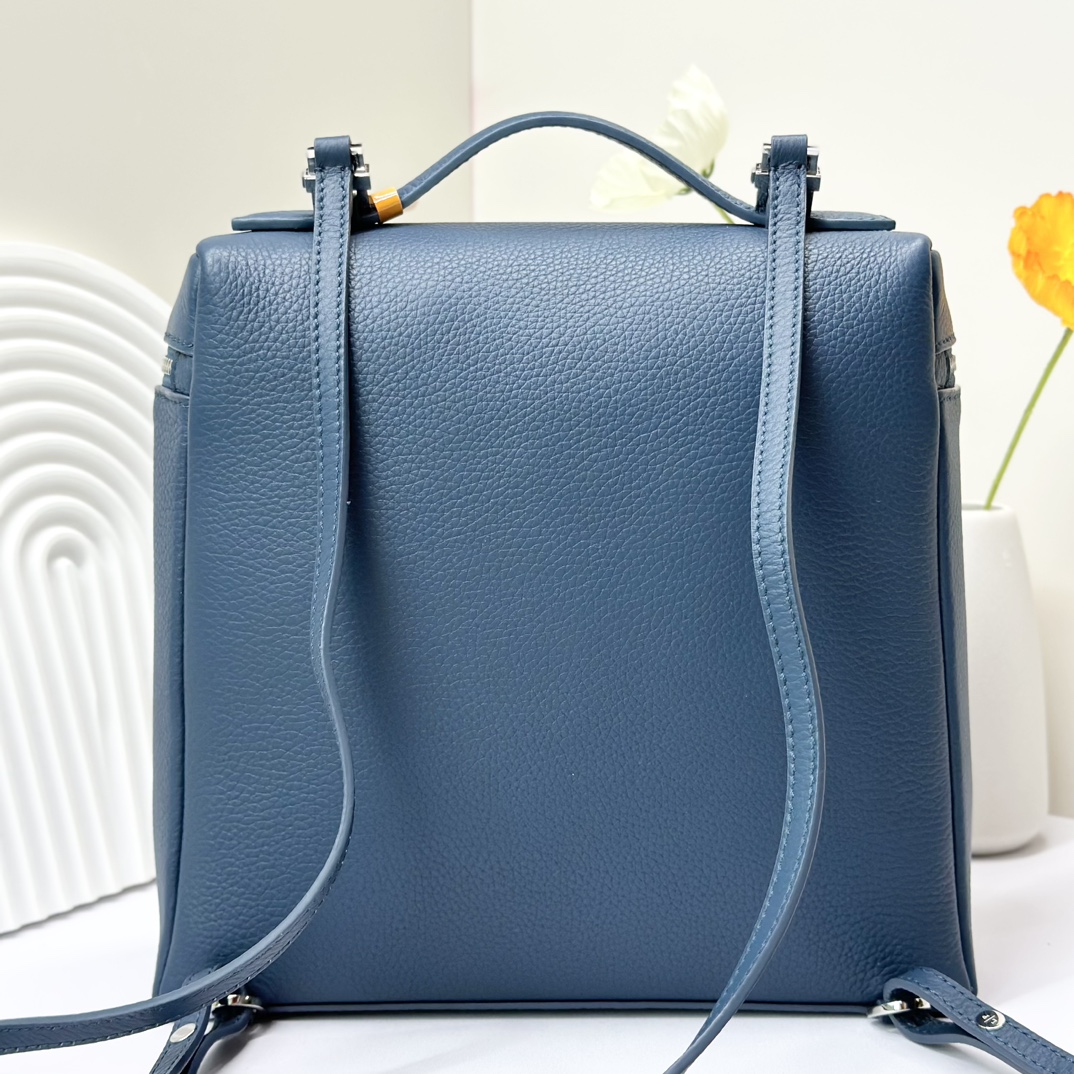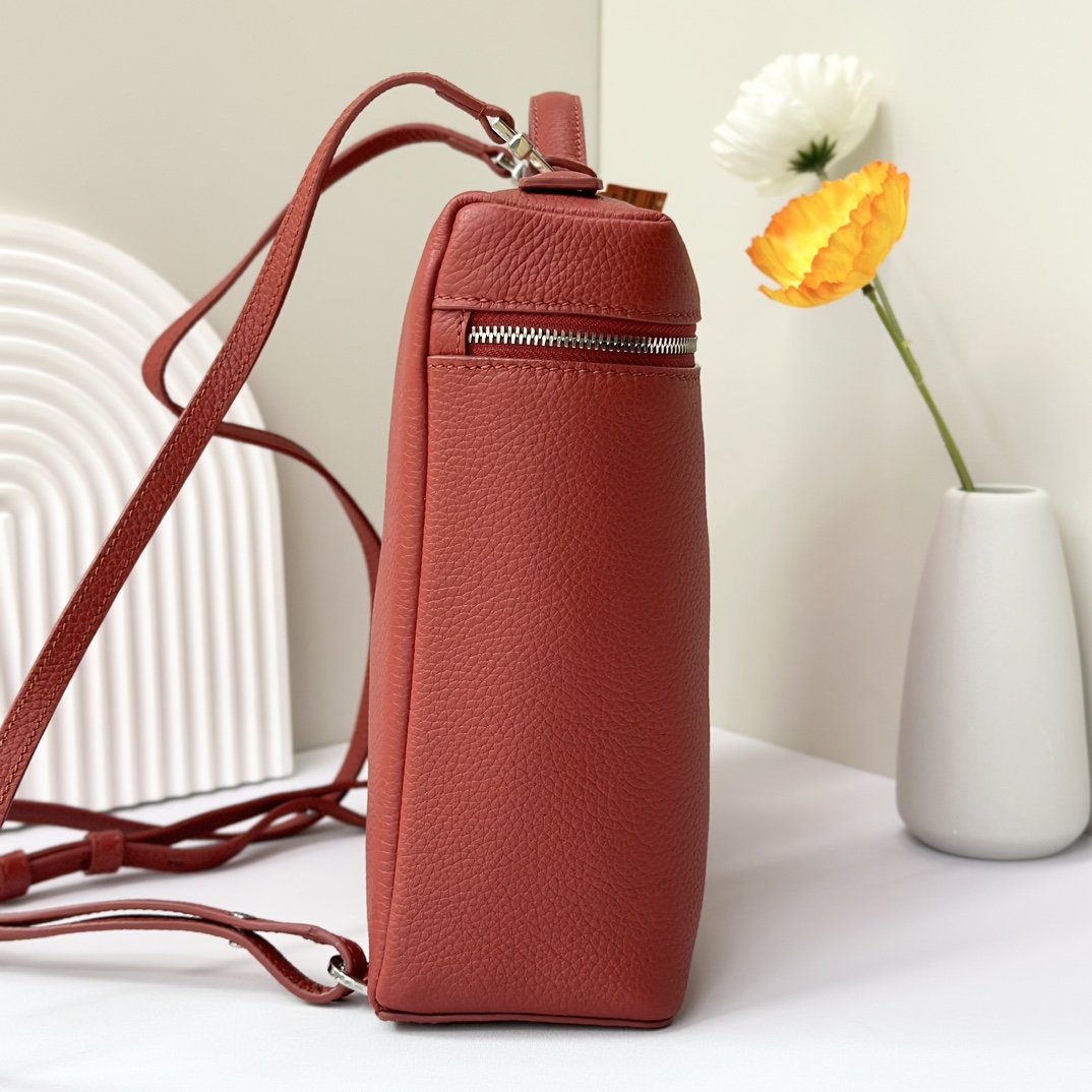 宽开口大容量方型双肩包,包身采用进口原厂小牛皮材质,轻微的锤花呈现优雅的纹理,内里采用进口原厂小羊皮。配有肩带,双向拉链开合和My Charms银色金属挂饰(特级全钢配件五金)