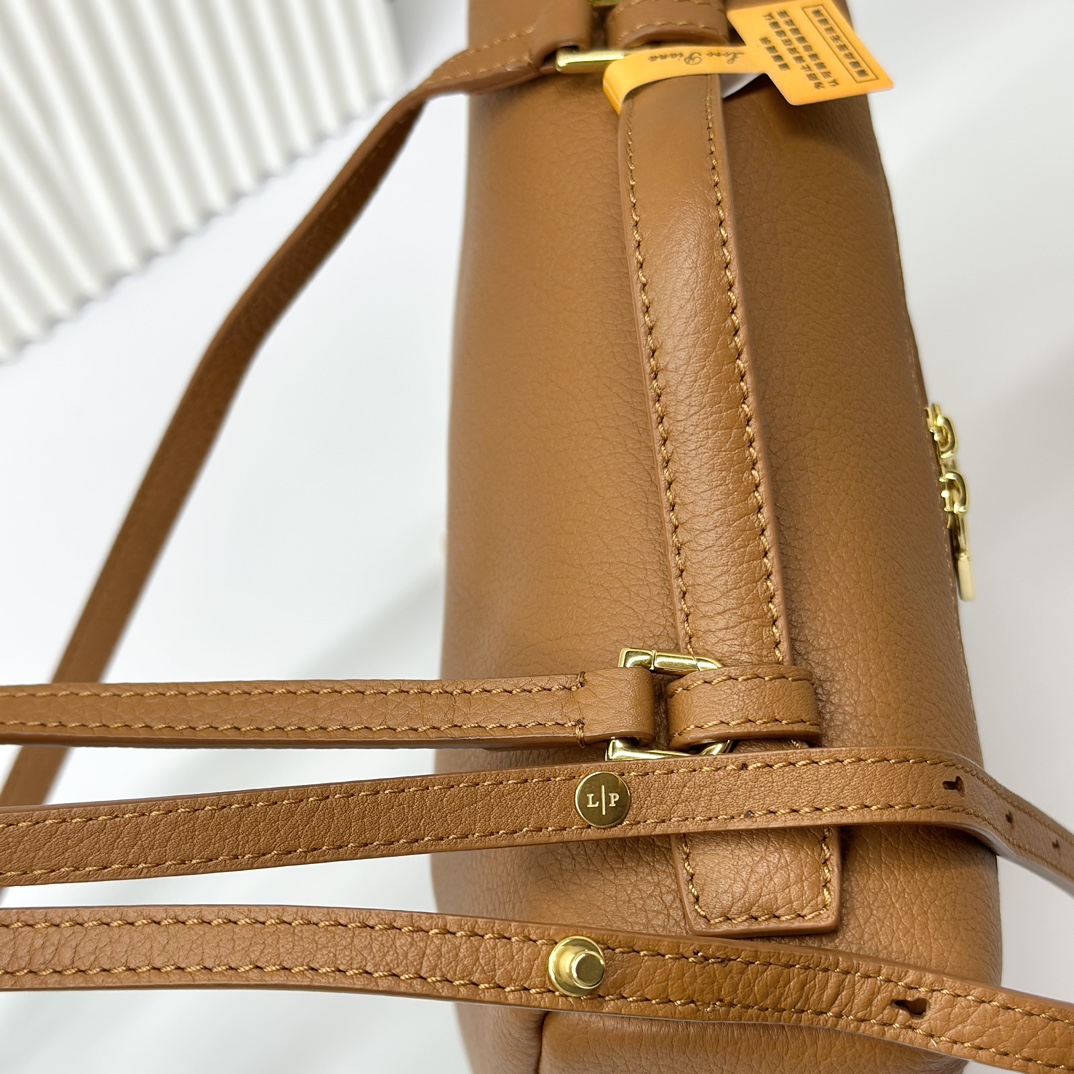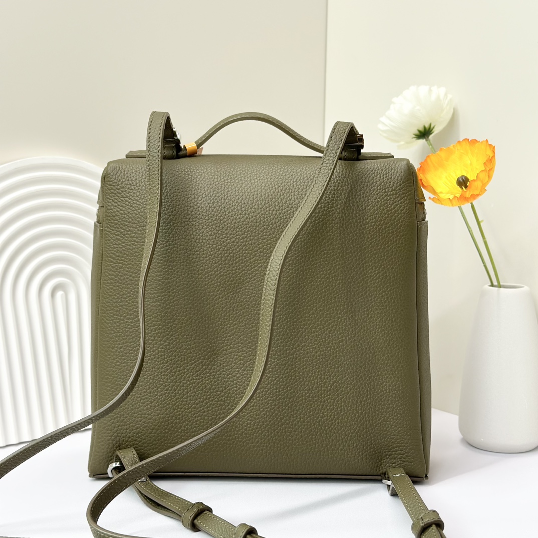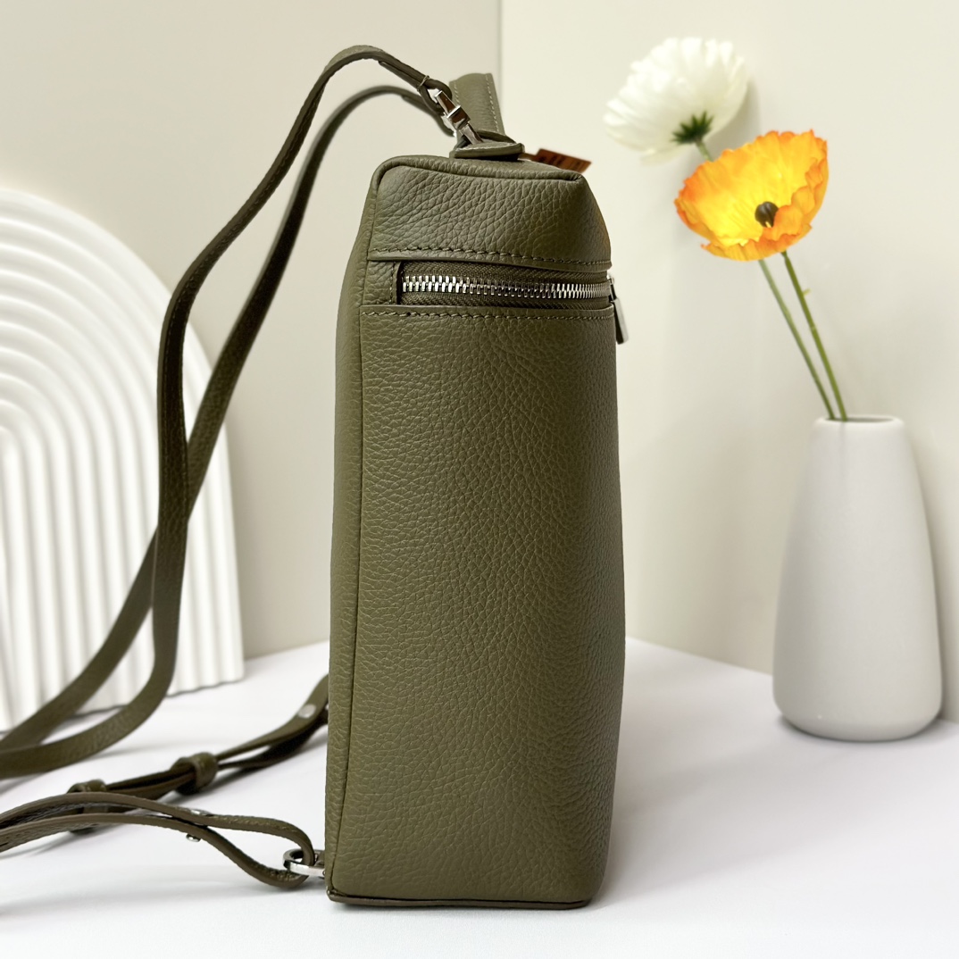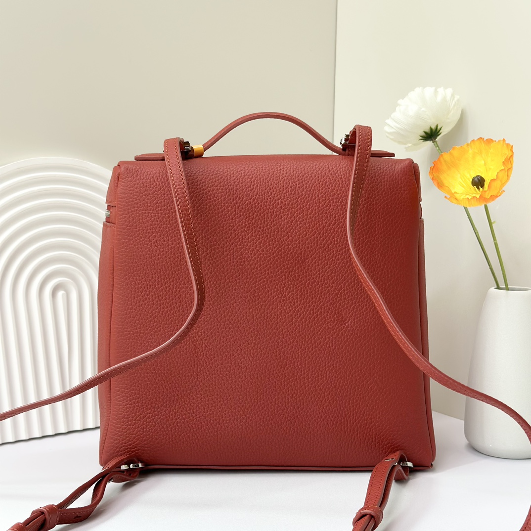 宽开口大容量方型双肩包,包身采用进口原厂小牛皮材质,轻微的锤花呈现优雅的纹理,内里采用进口原厂小羊皮。配有肩带,双向拉链开合和My Charms银色金属挂饰(特级全钢配件五金)