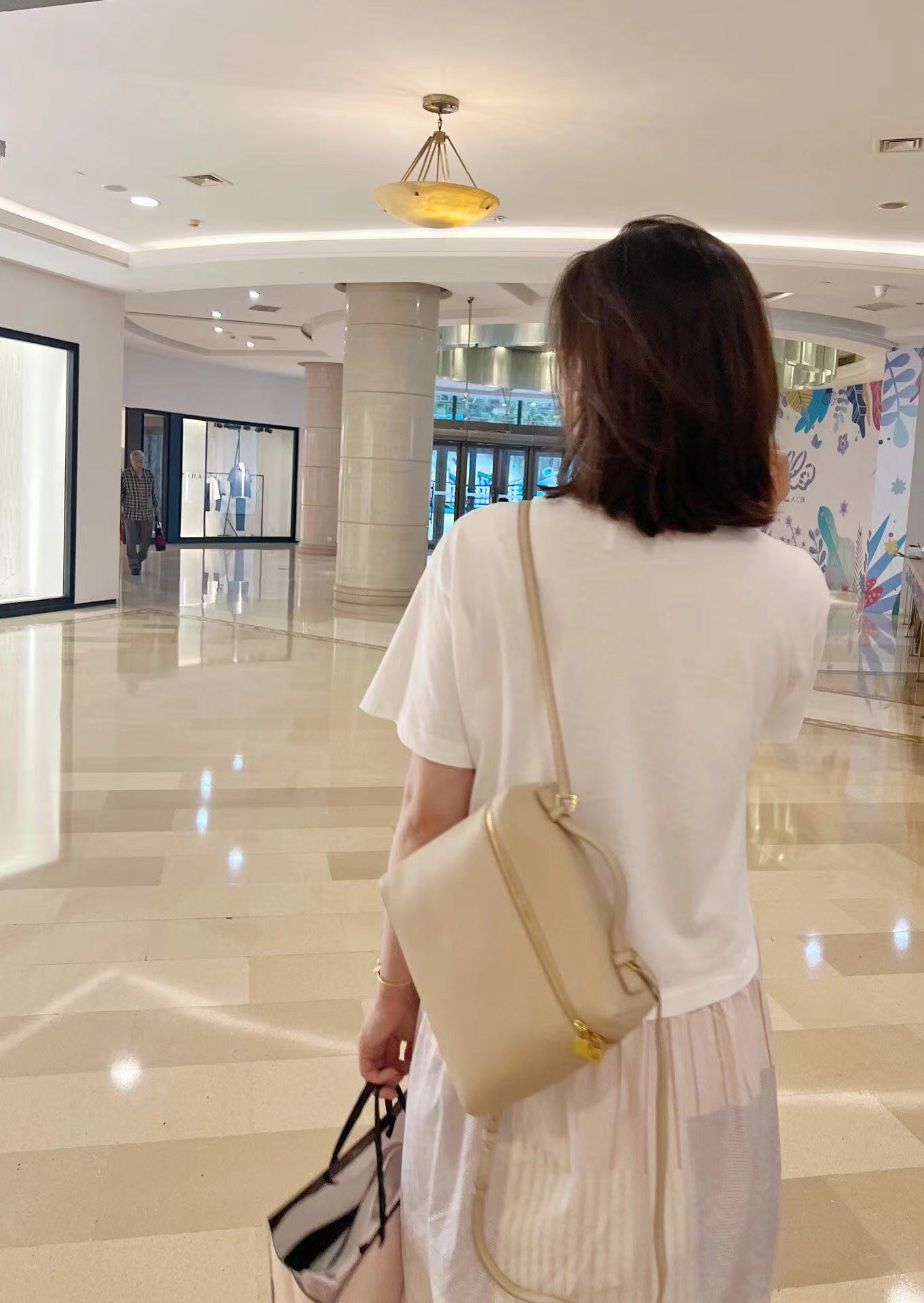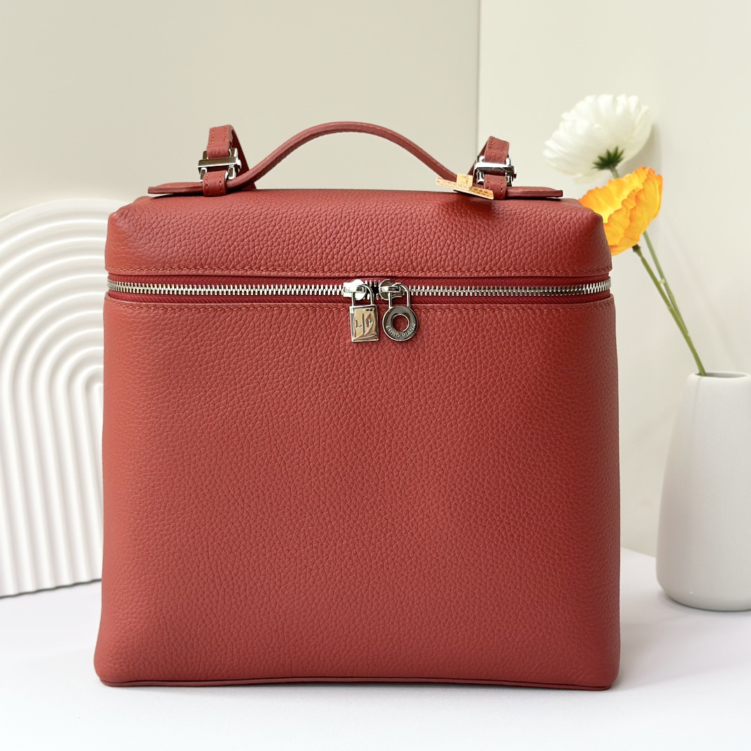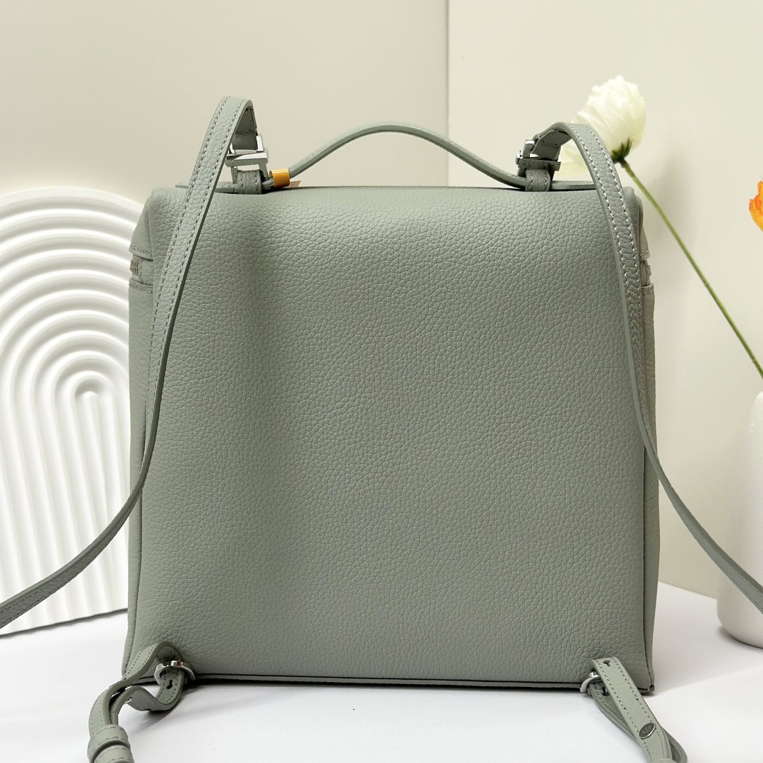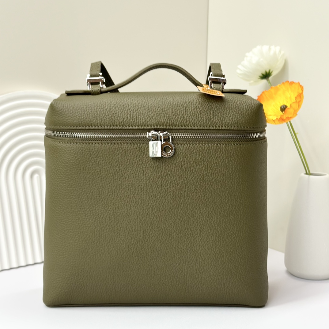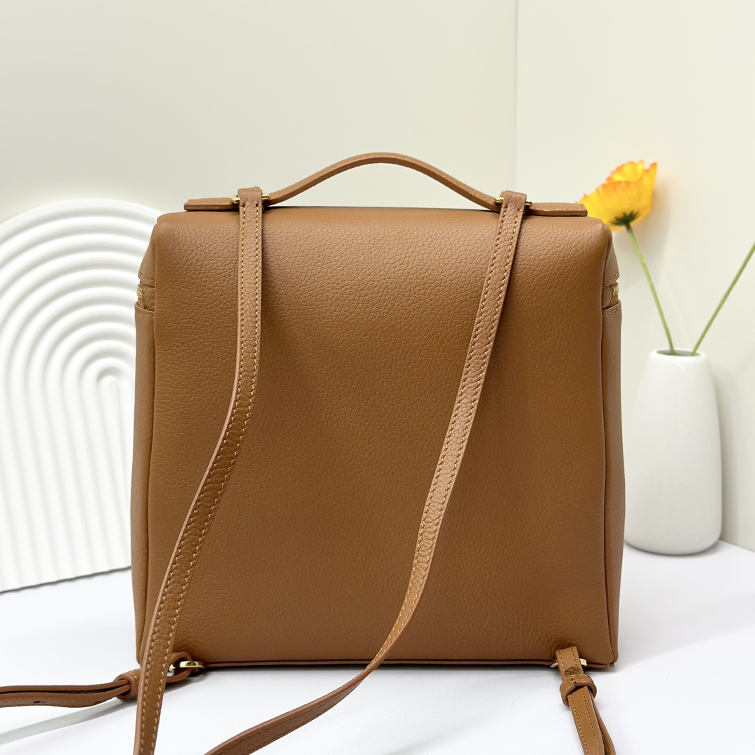 宽开口大容量方型双肩包,包身采用进口原厂小牛皮材质,轻微的锤花呈现优雅的纹理,内里采用进口原厂小羊皮。配有肩带,双向拉链开合和My Charms银色金属挂饰(特级全钢配件五金)
