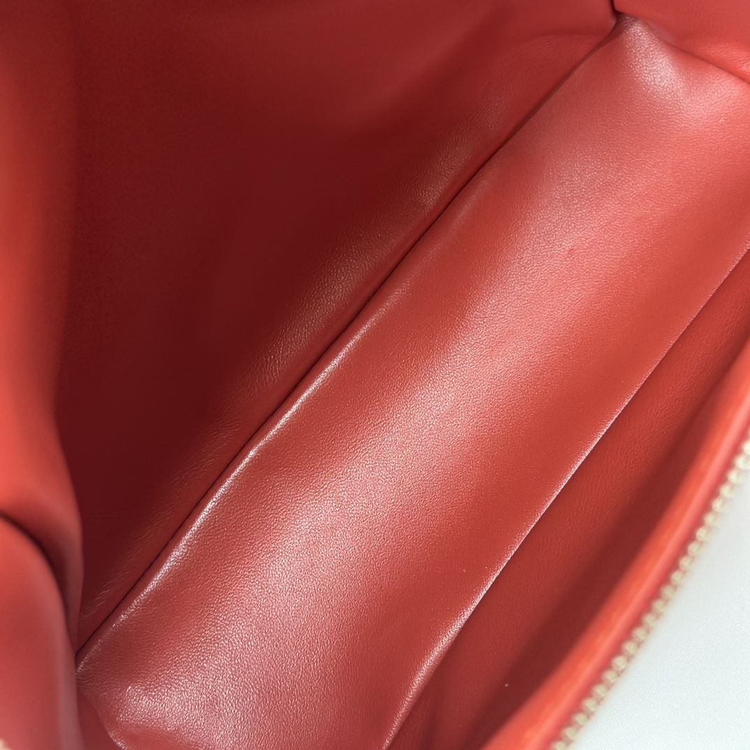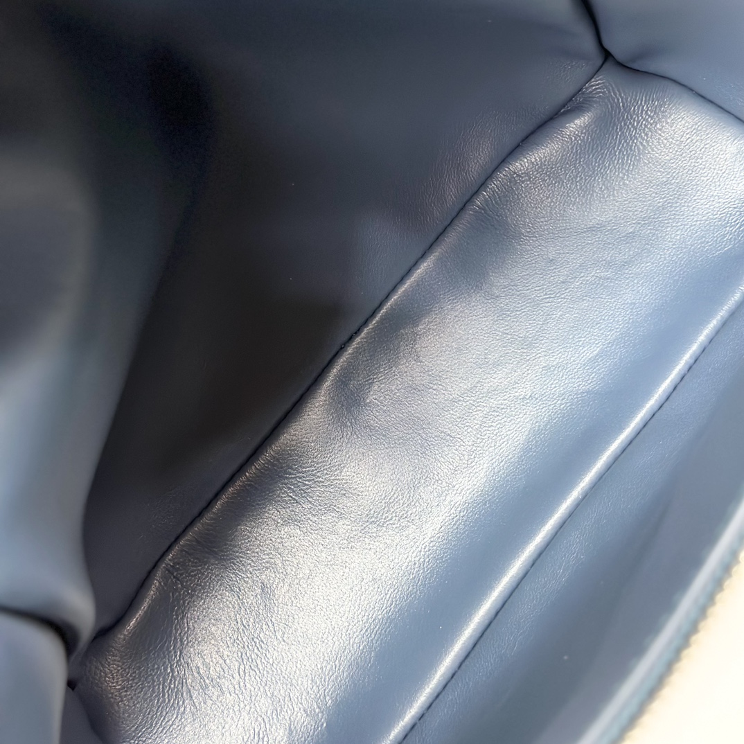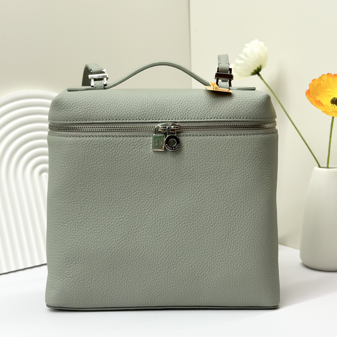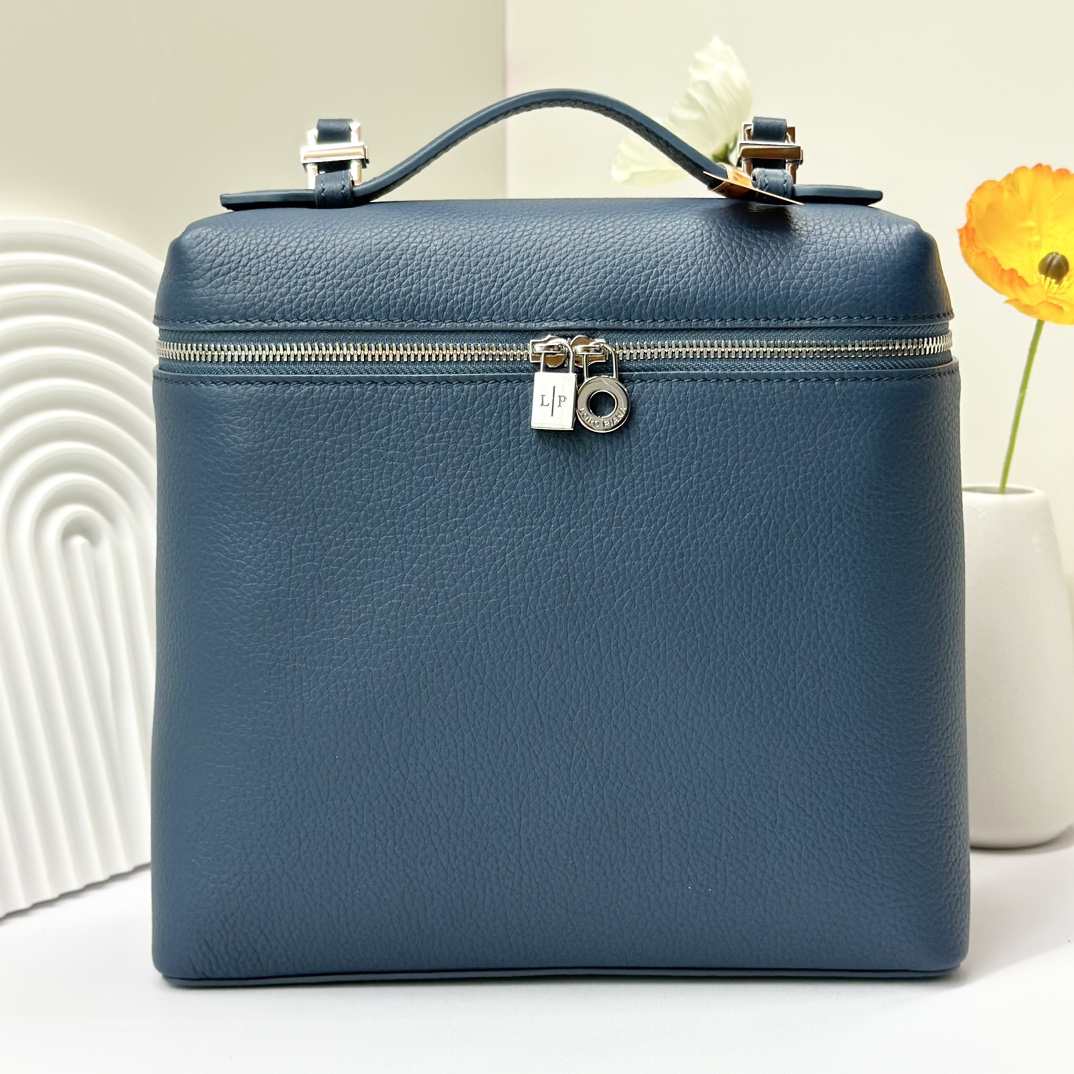 宽开口大容量方型双肩包,包身采用进口原厂小牛皮材质,轻微的锤花呈现优雅的纹理,内里采用进口原厂小羊皮。配有肩带,双向拉链开合和My Charms银色金属挂饰(特级全钢配件五金)