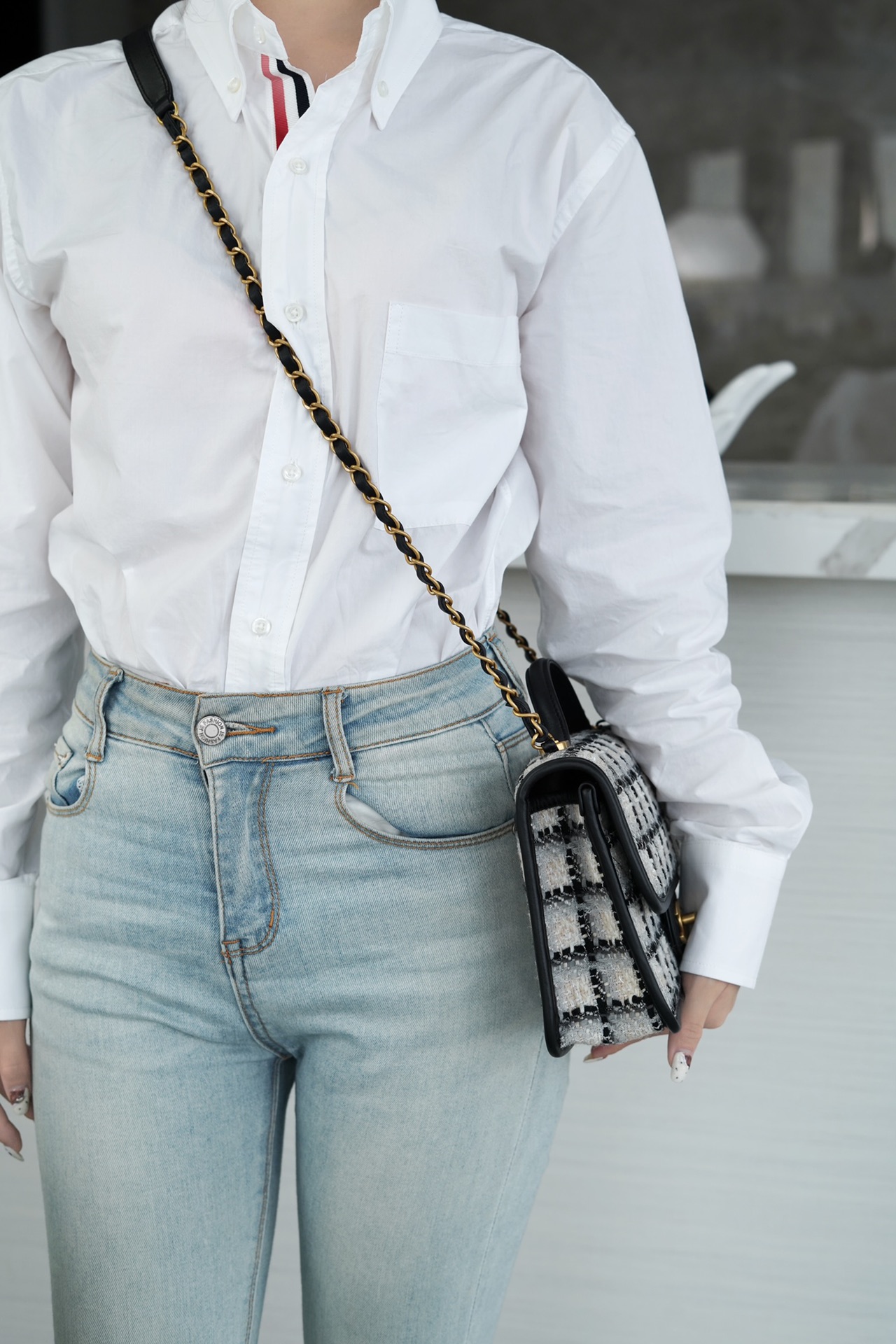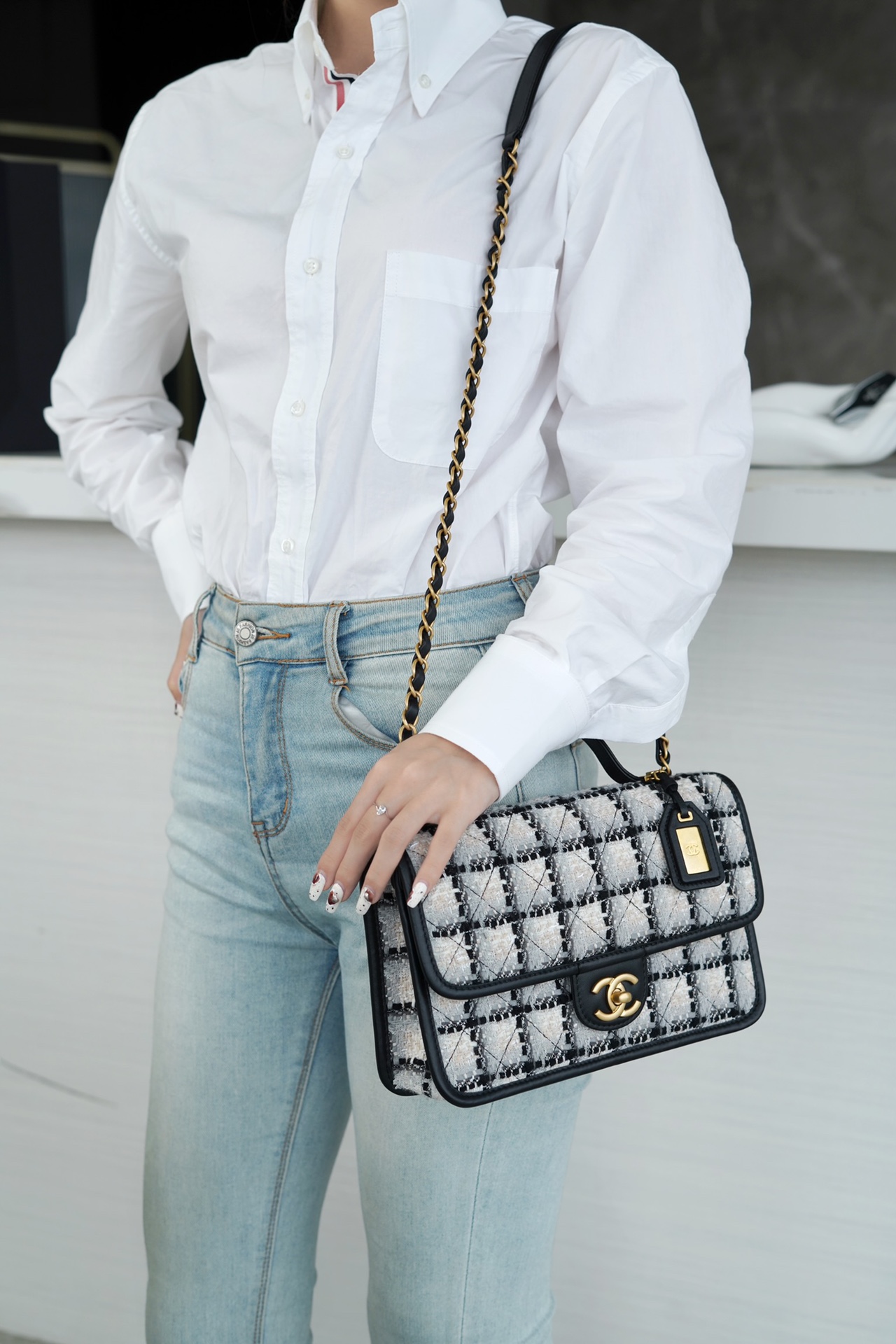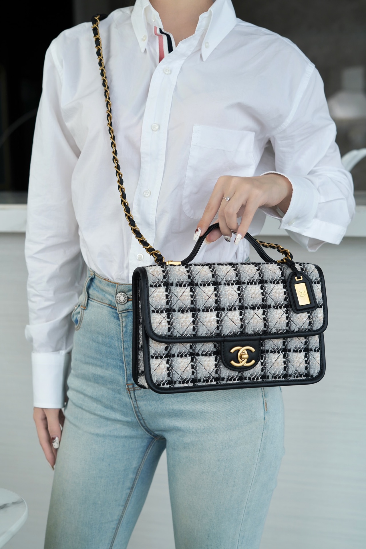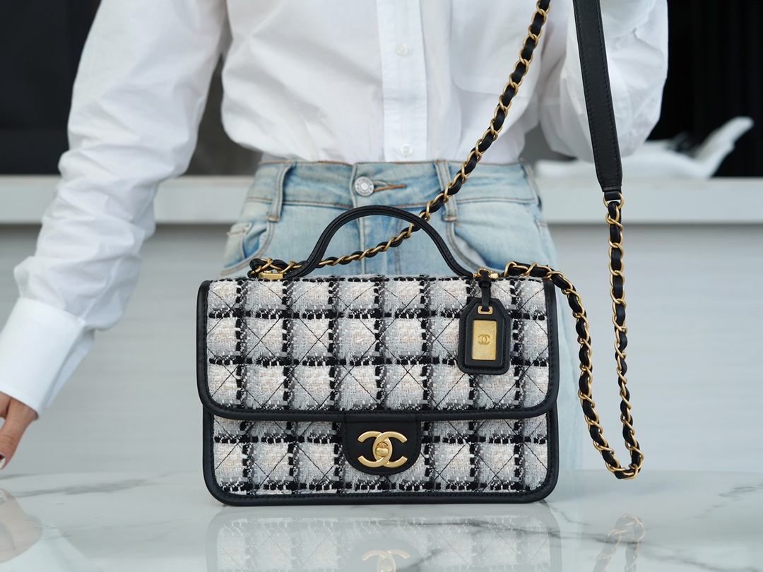 粗花呢豆腐邮差包??粗花呢编织质感就是秋冬氛围感利器, 有种小复古还有一种小正式的感觉,贵气十足~还有一颗经典 logo 小铭牌还挺精致的!