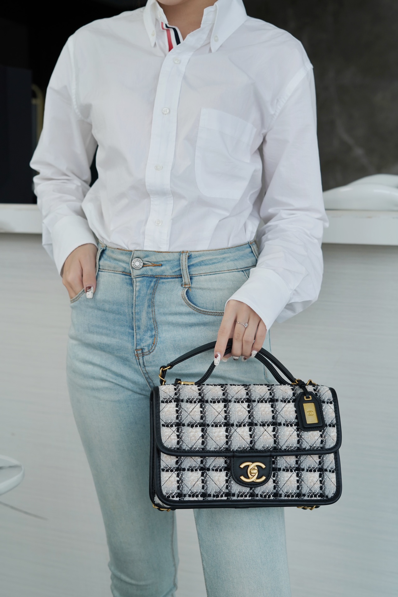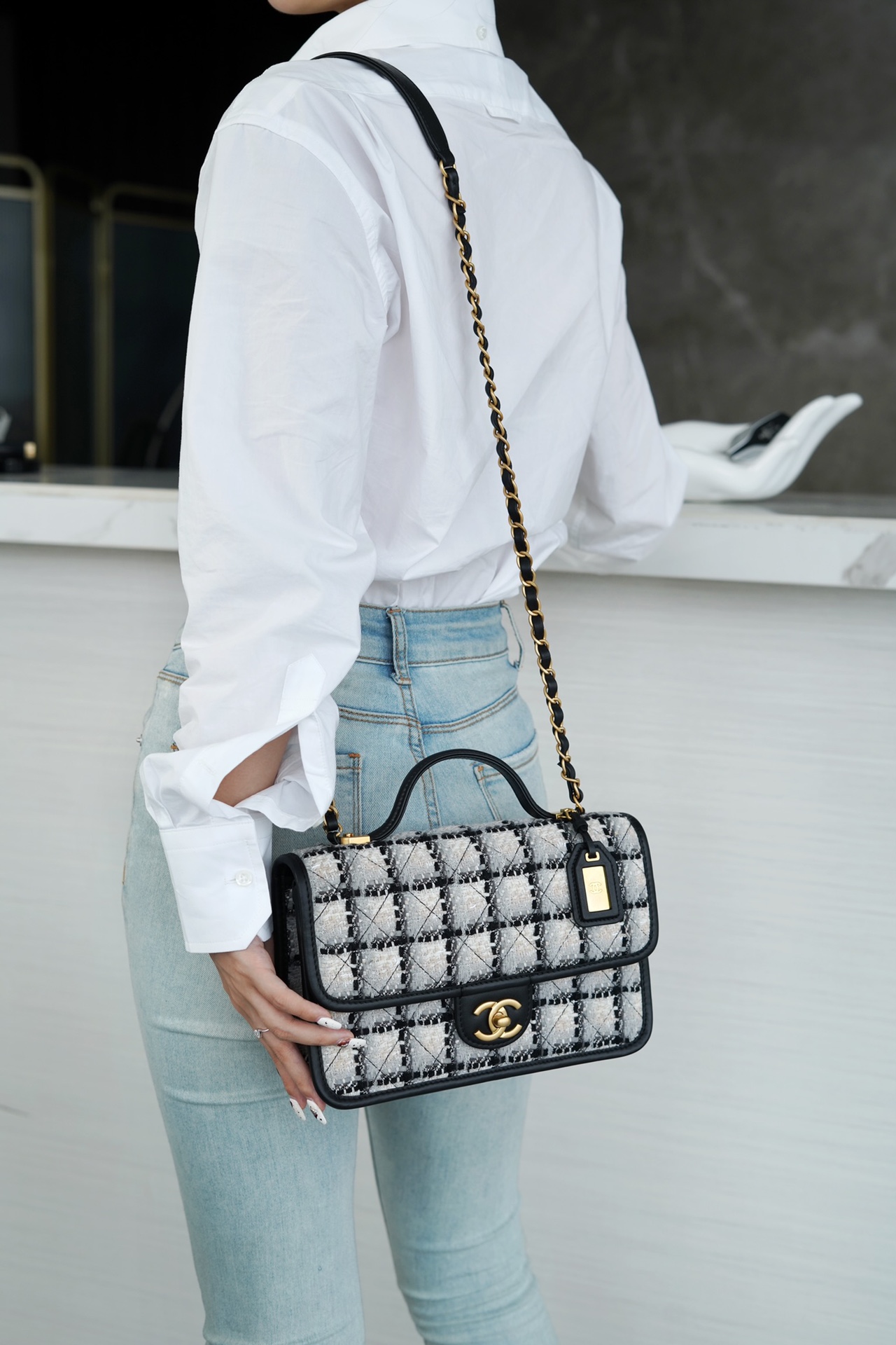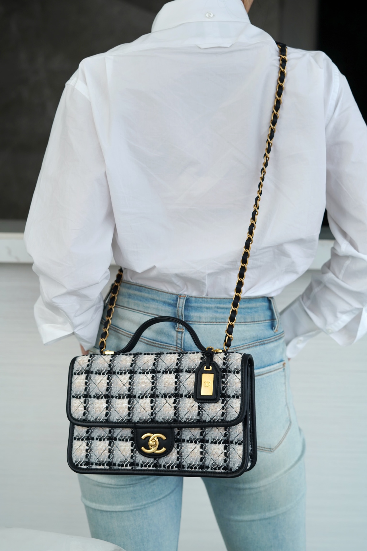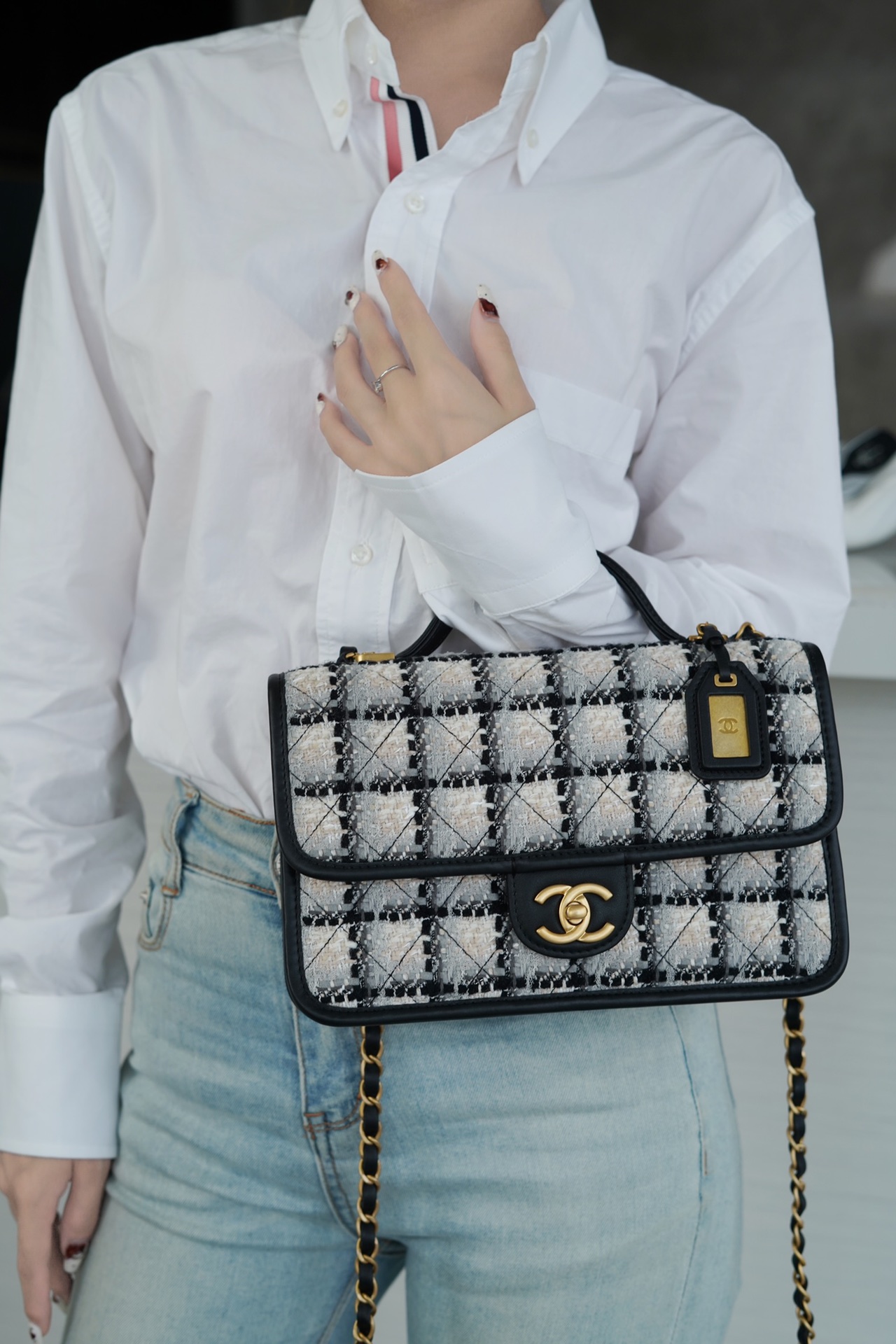 粗花呢豆腐邮差包??粗花呢编织质感就是秋冬氛围感利器, 有种小复古还有一种小正式的感觉,贵气十足~还有一颗经典 logo 小铭牌还挺精致的!