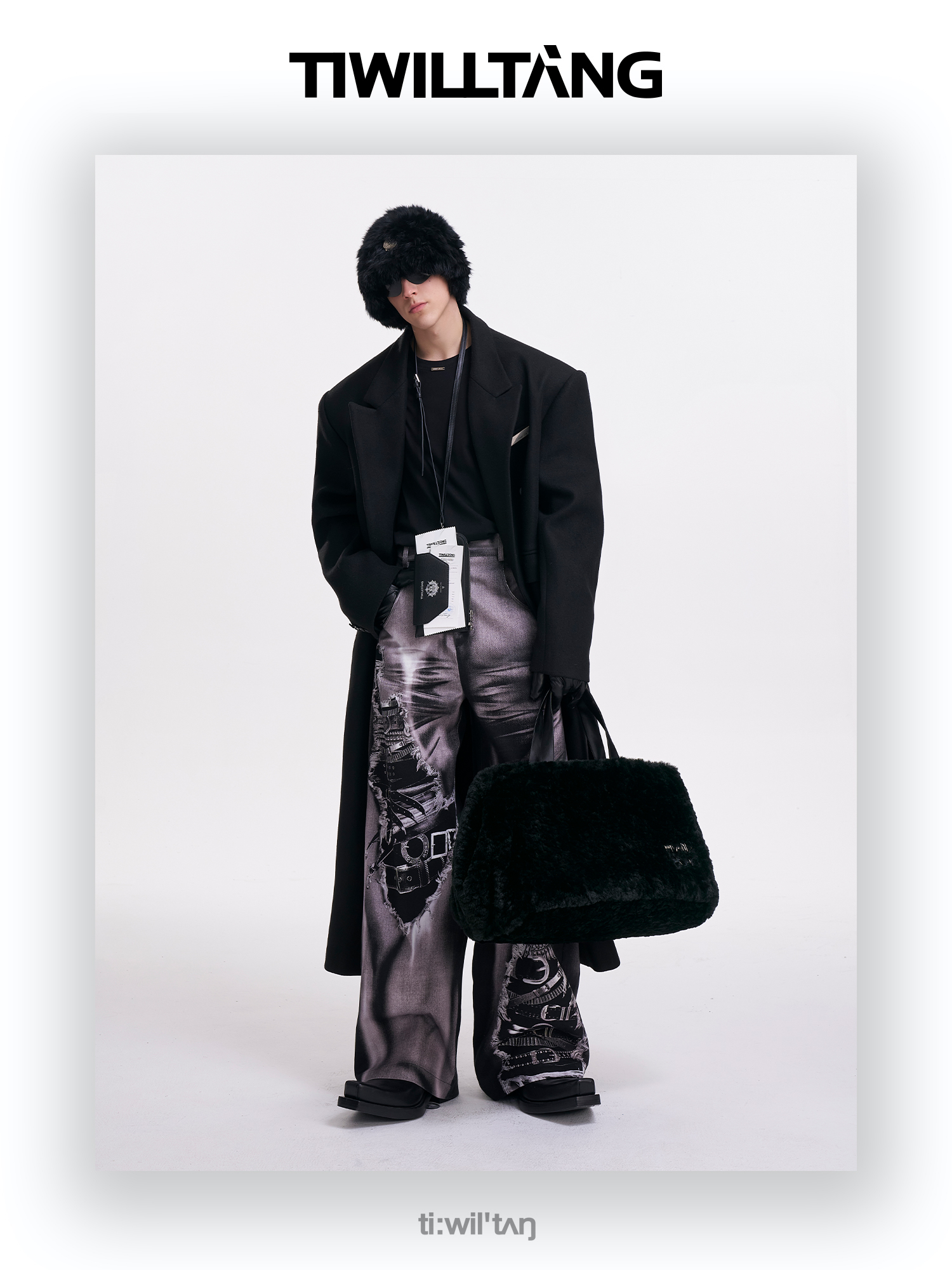 TIWILLTANG启世录“钦衹域裥”折边牛仔长裤