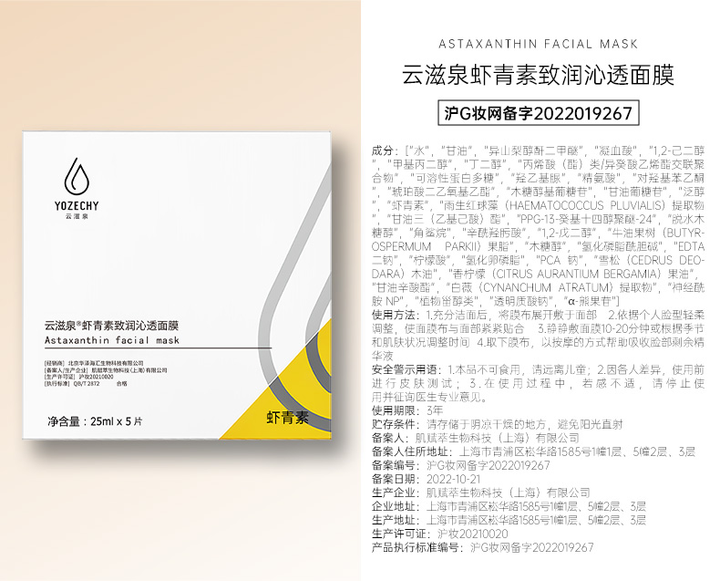 🔥【社群专享到手5盒】云滋泉 虾青素面膜细腻沁透亲肤面膜温和