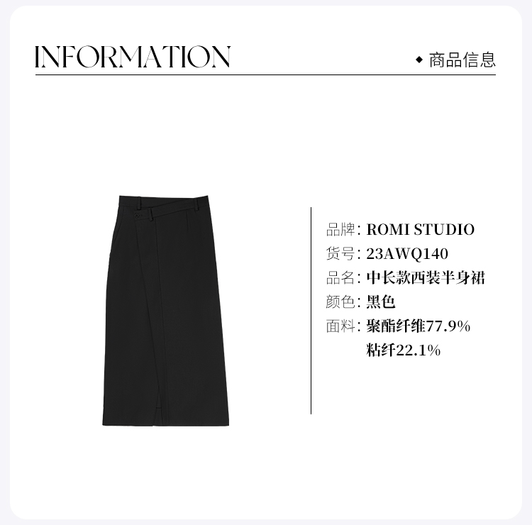 ROMI STUDIO“立体裁剪”高腰不规则开叉中长款西装半身裙 23AWQ140