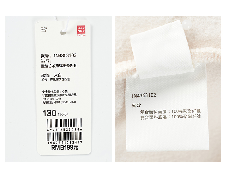 【茄克】童装仿羊羔绒无领外套1N4363102