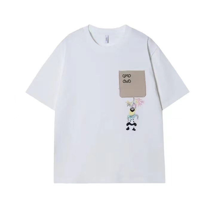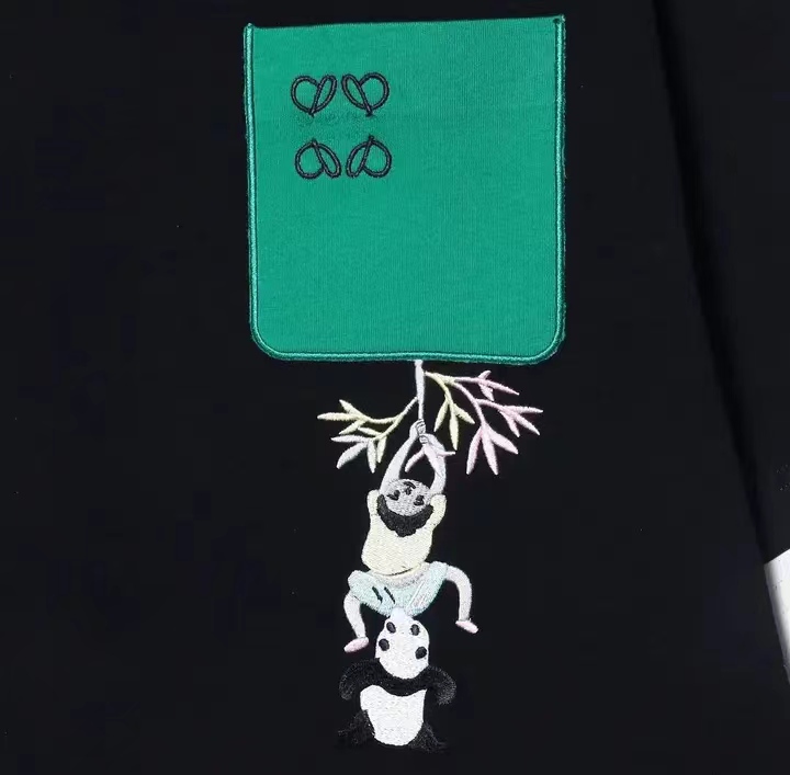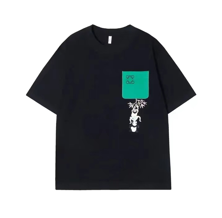 T1026夏季新款熊猫刺绣口袋男女情侣同款上衣百搭潮流休闲短袖T恤