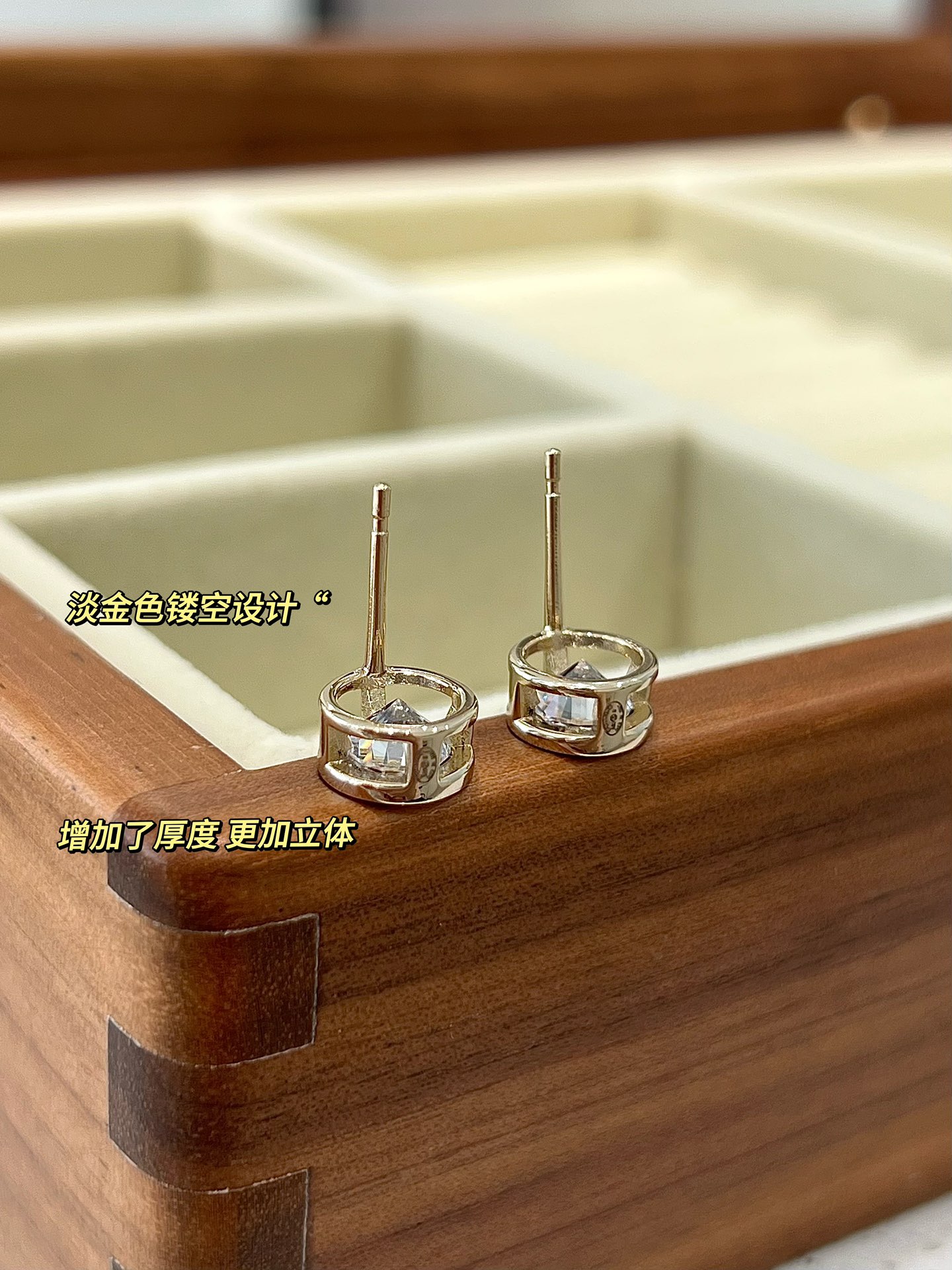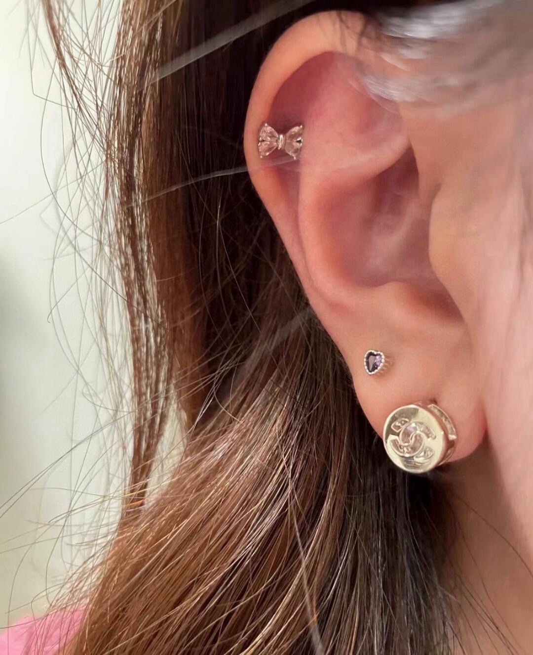增加了厚度同时也做了部分镂空处理,而且立体感十足,这个重量和尺寸感觉也可以戴在耳骨上,平时上班戴也不会夸张,很低调