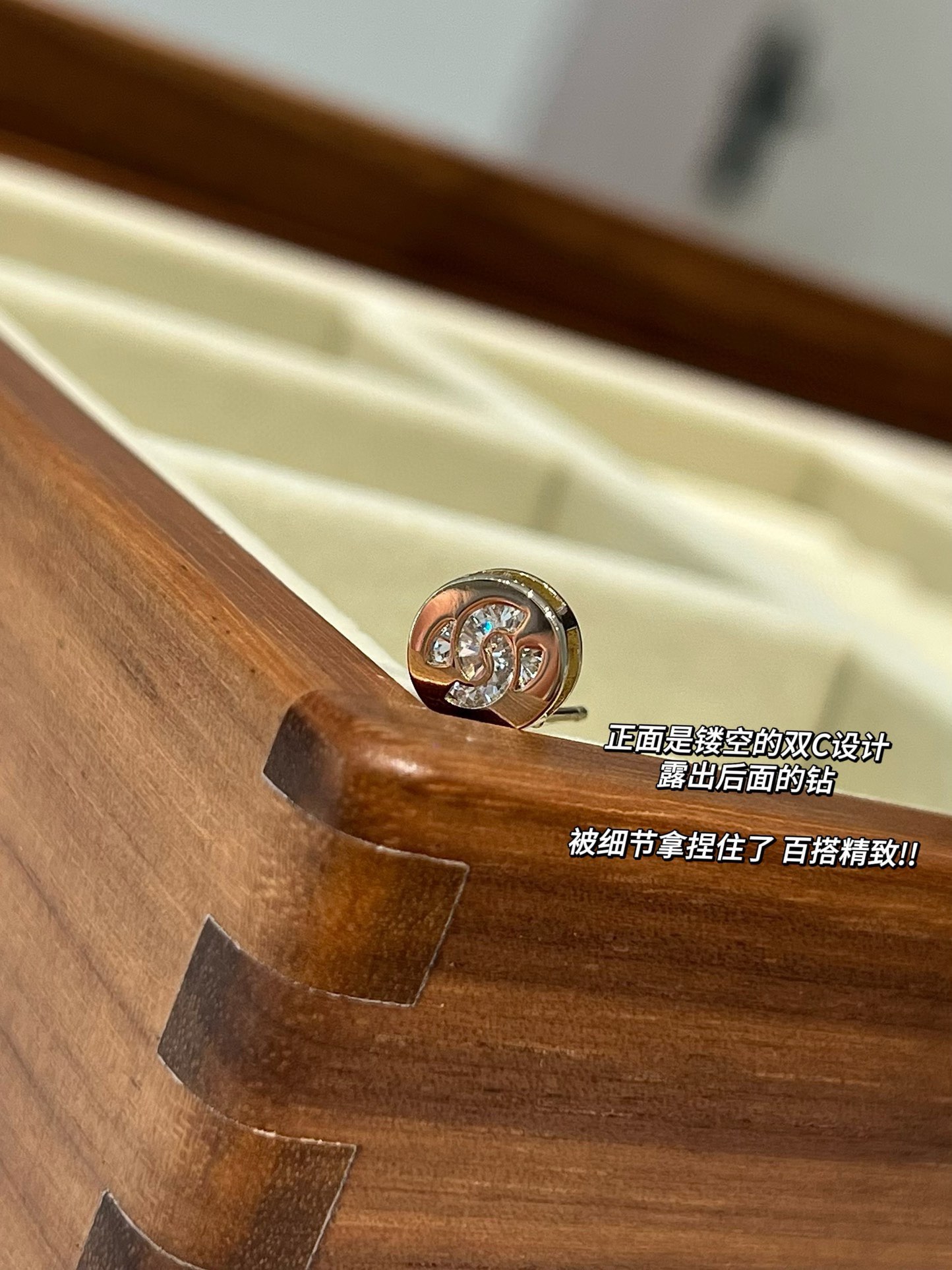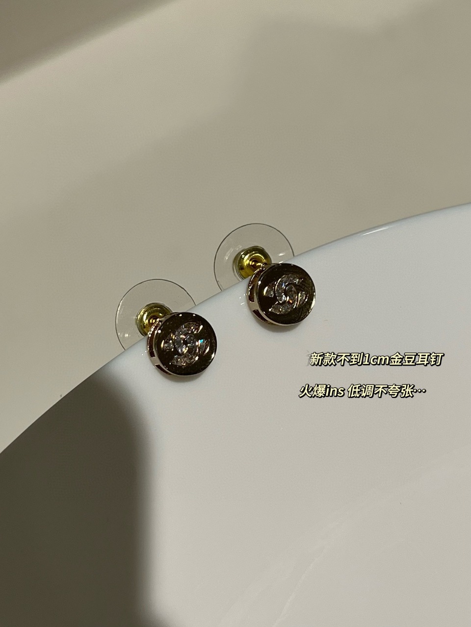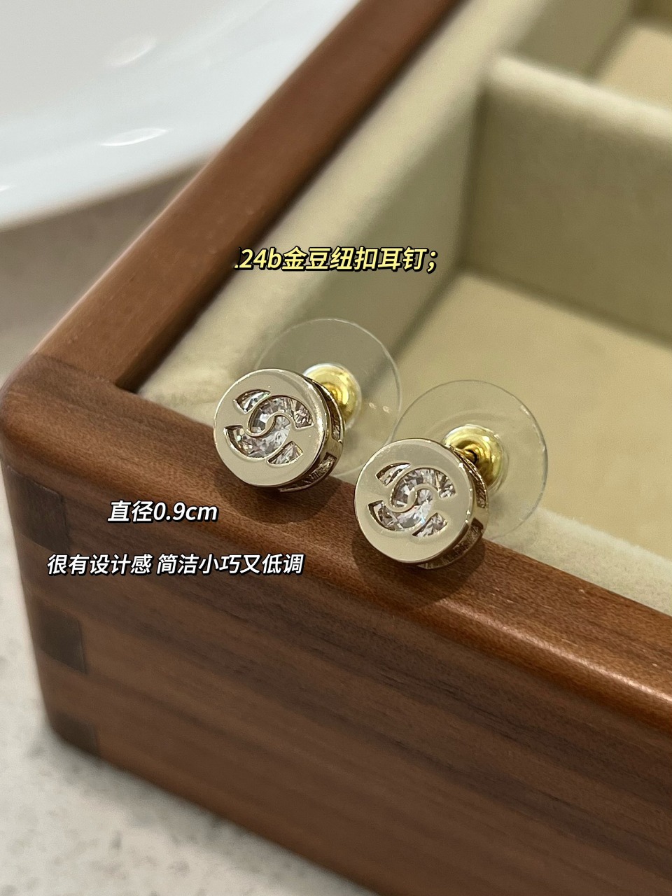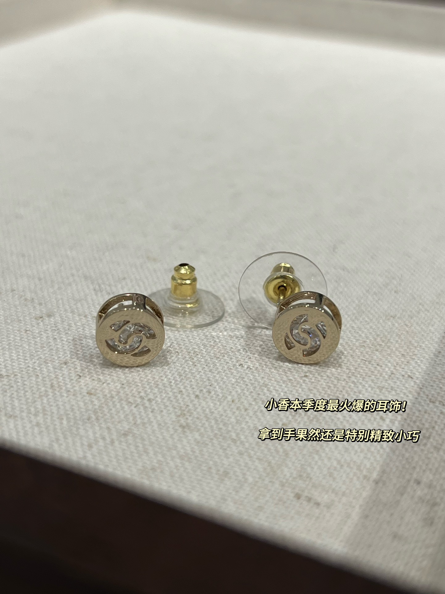 以往小香家每一季的纽扣耳钉,尺寸在1.2-1.5cm之间,这款更打破常规,只有不到1cm的尺寸,