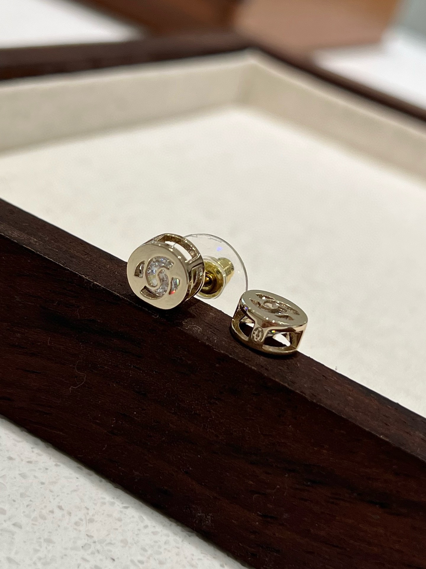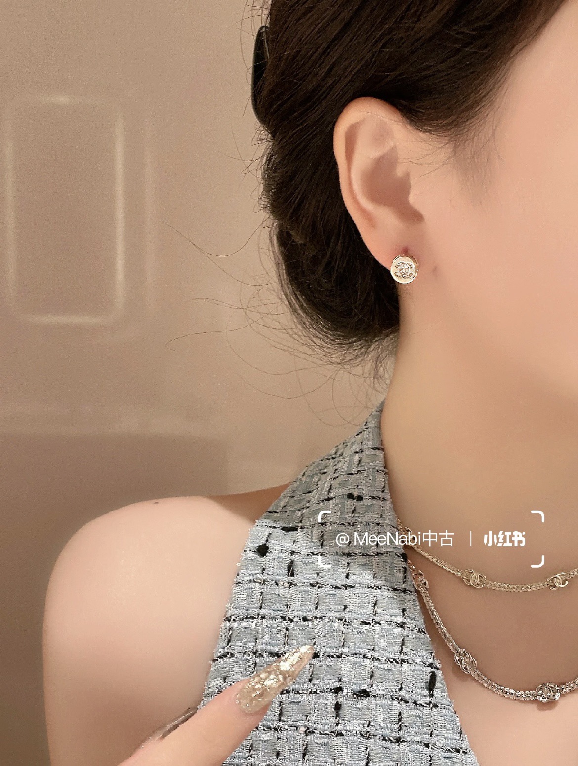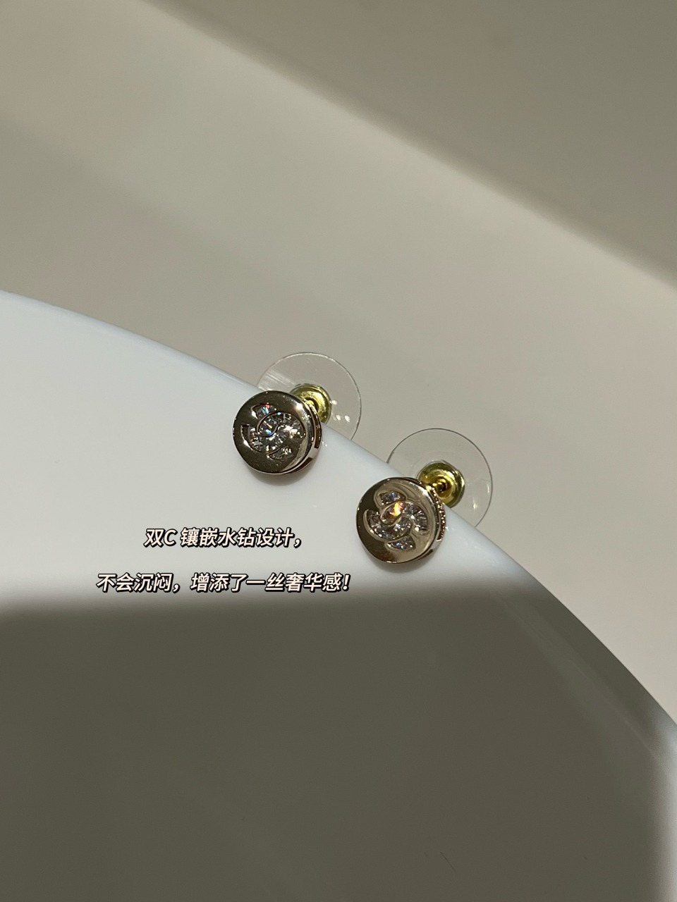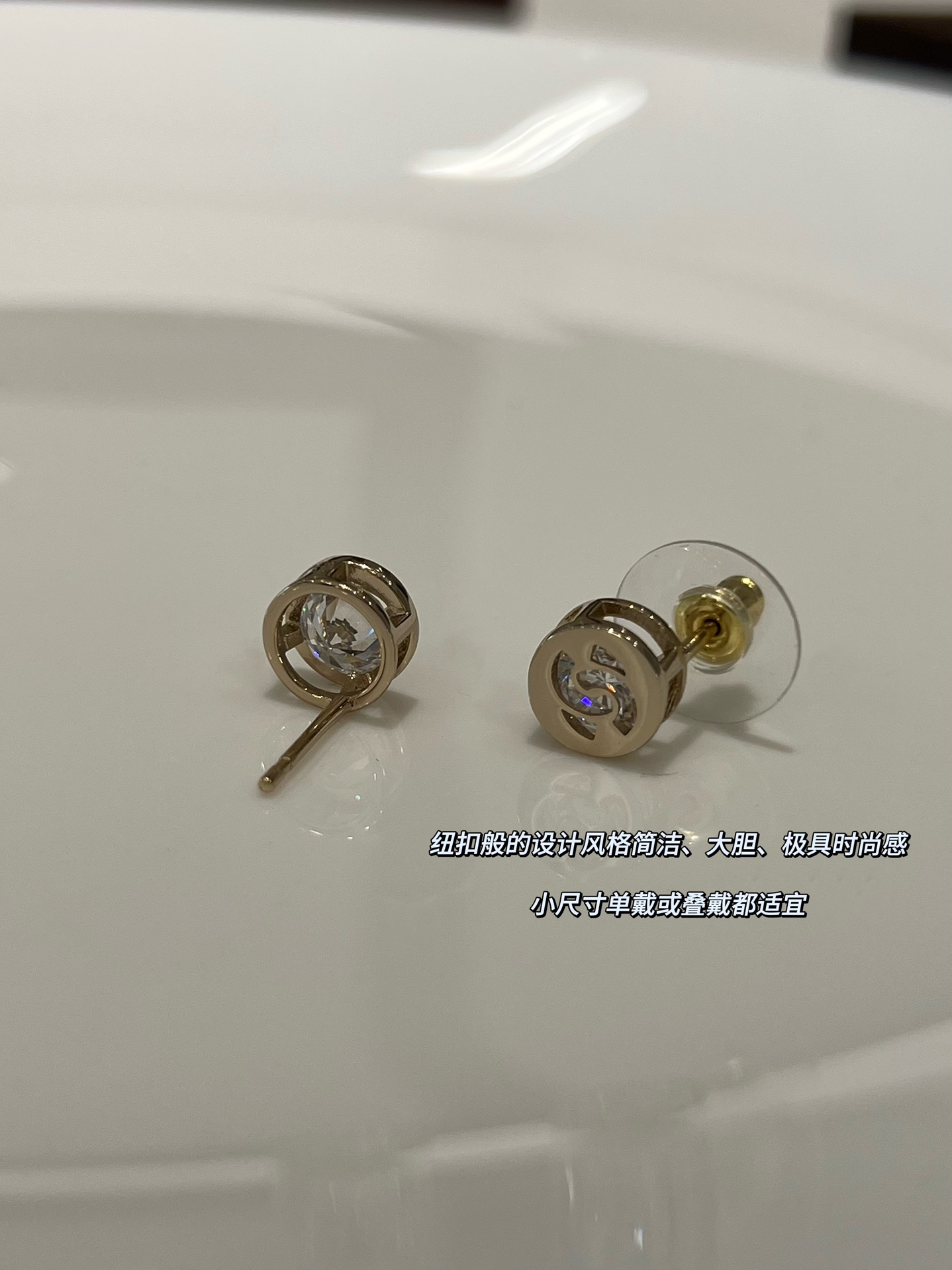 以往小香家每一季的纽扣耳钉,尺寸在1.2-1.5cm之间,这款更打破常规,只有不到1cm的尺寸,