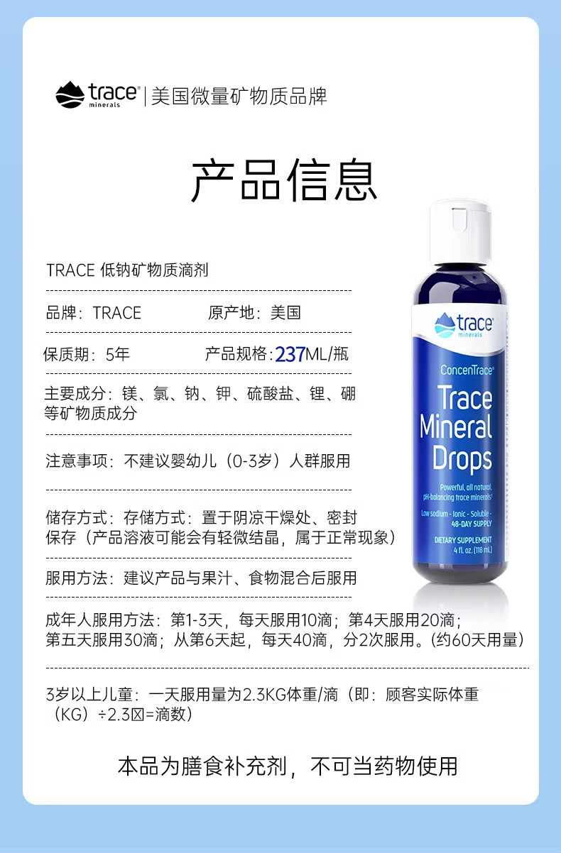 美国Trace 矿宝CMD细胞浓缩营养液矿物滴微量矿物质118ml2瓶
