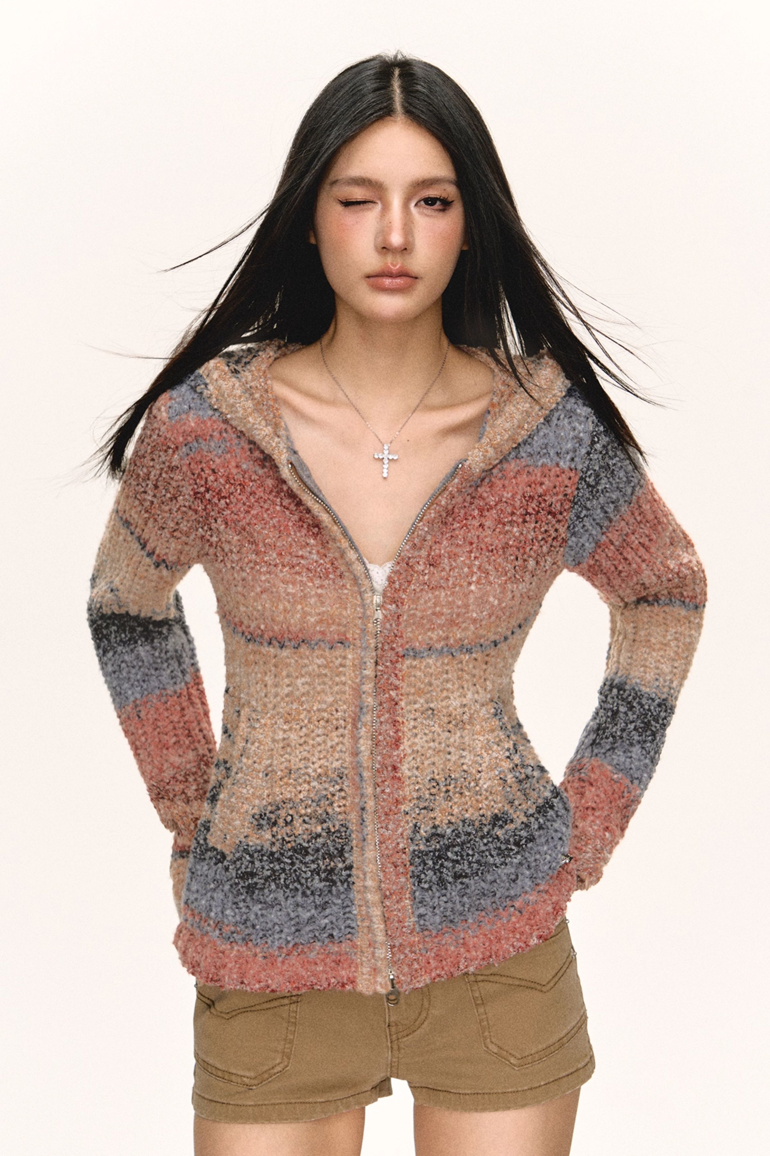 Ariseism 美式复古设计感连帽开衫毛衣外套女秋季新款上衣