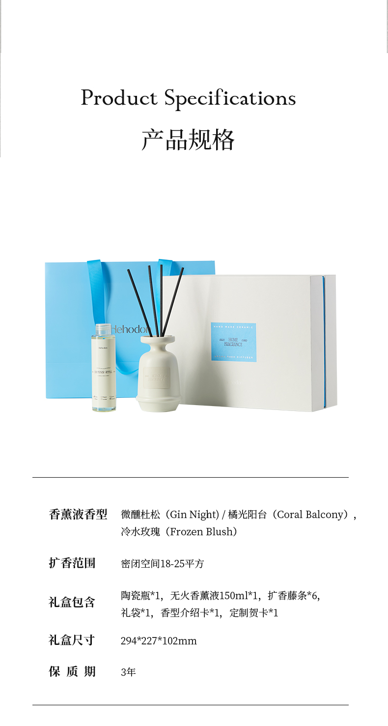 Hehodon无火香薰礼盒高级香氛藤条房间卧室内持久新年礼物顺丰