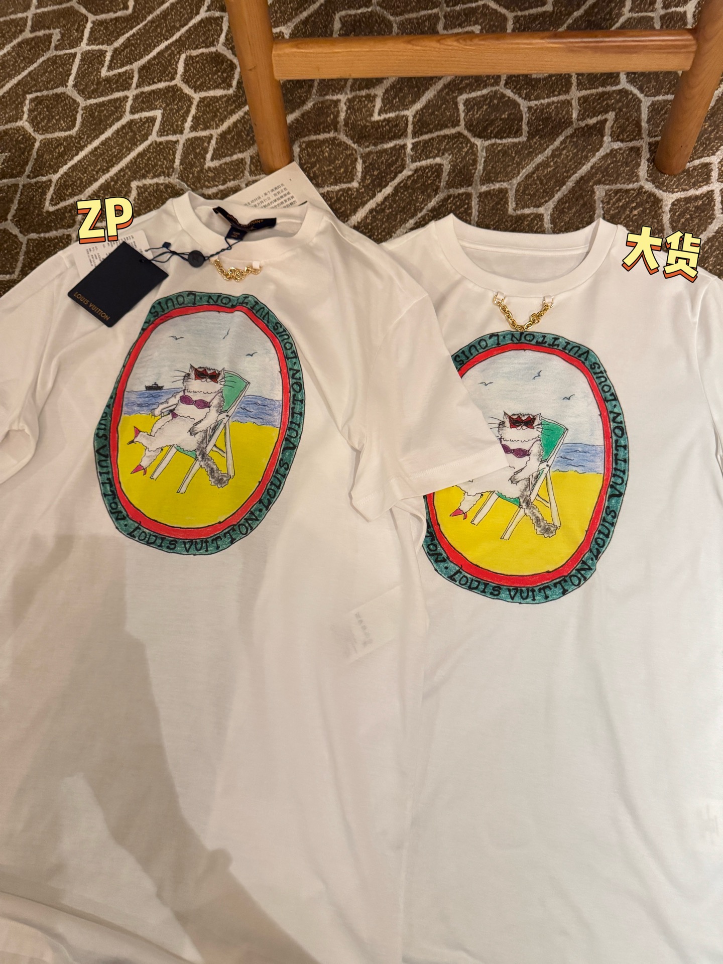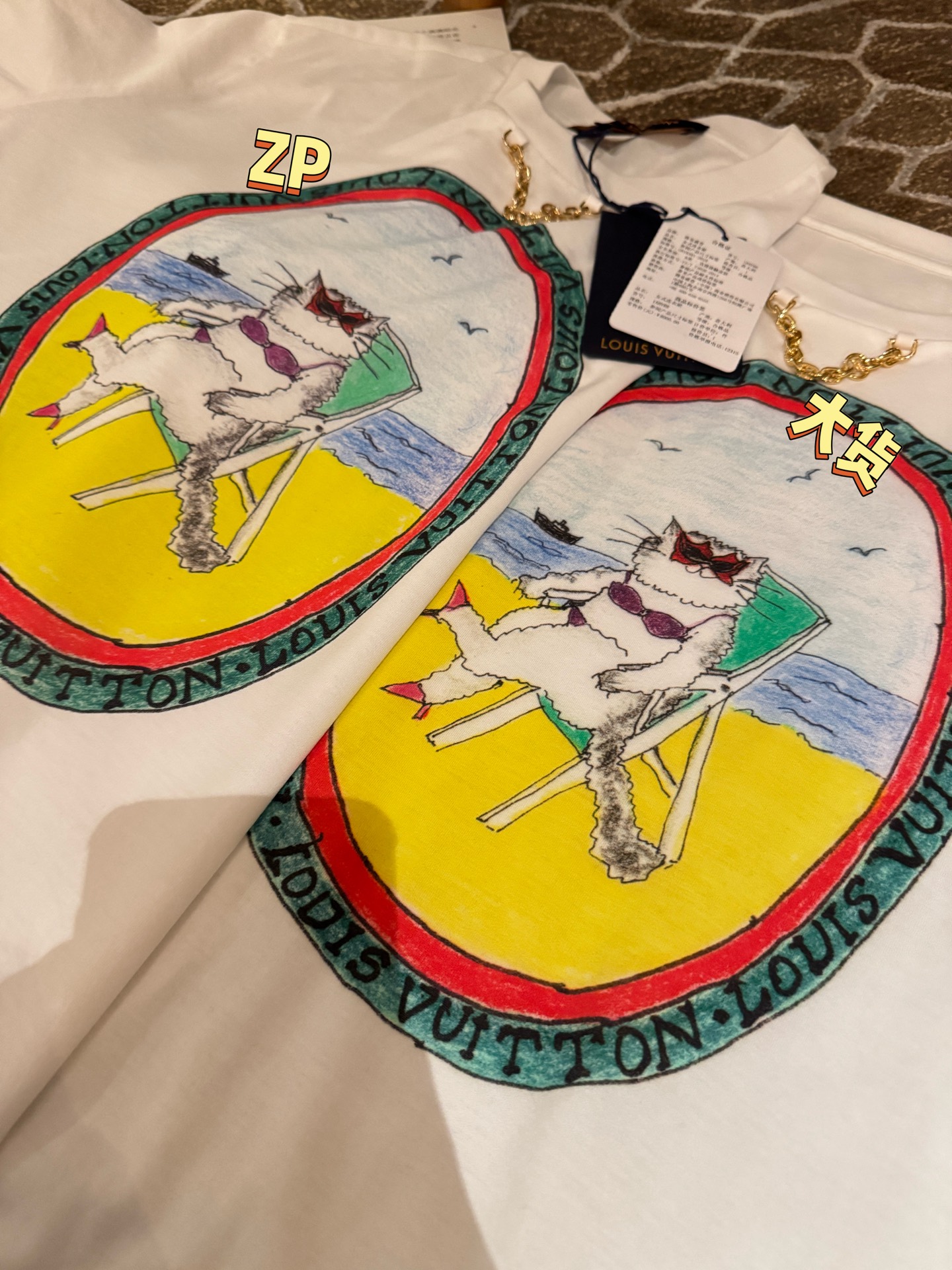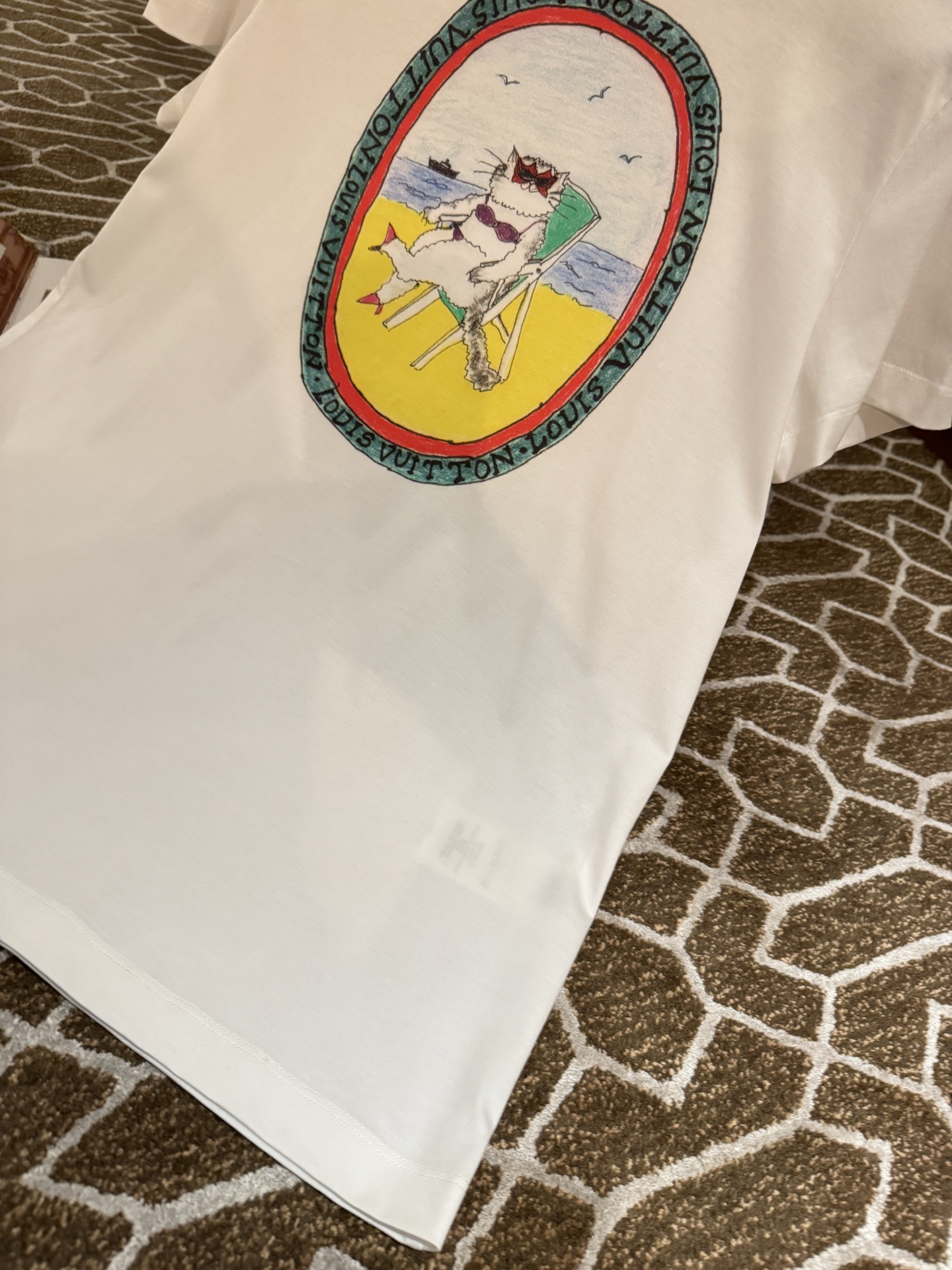 驴家 25年新品✖️Grace·Coddington联名的猫猫系列 白色猫猫度假风中长款印花T恤(KX*MM)