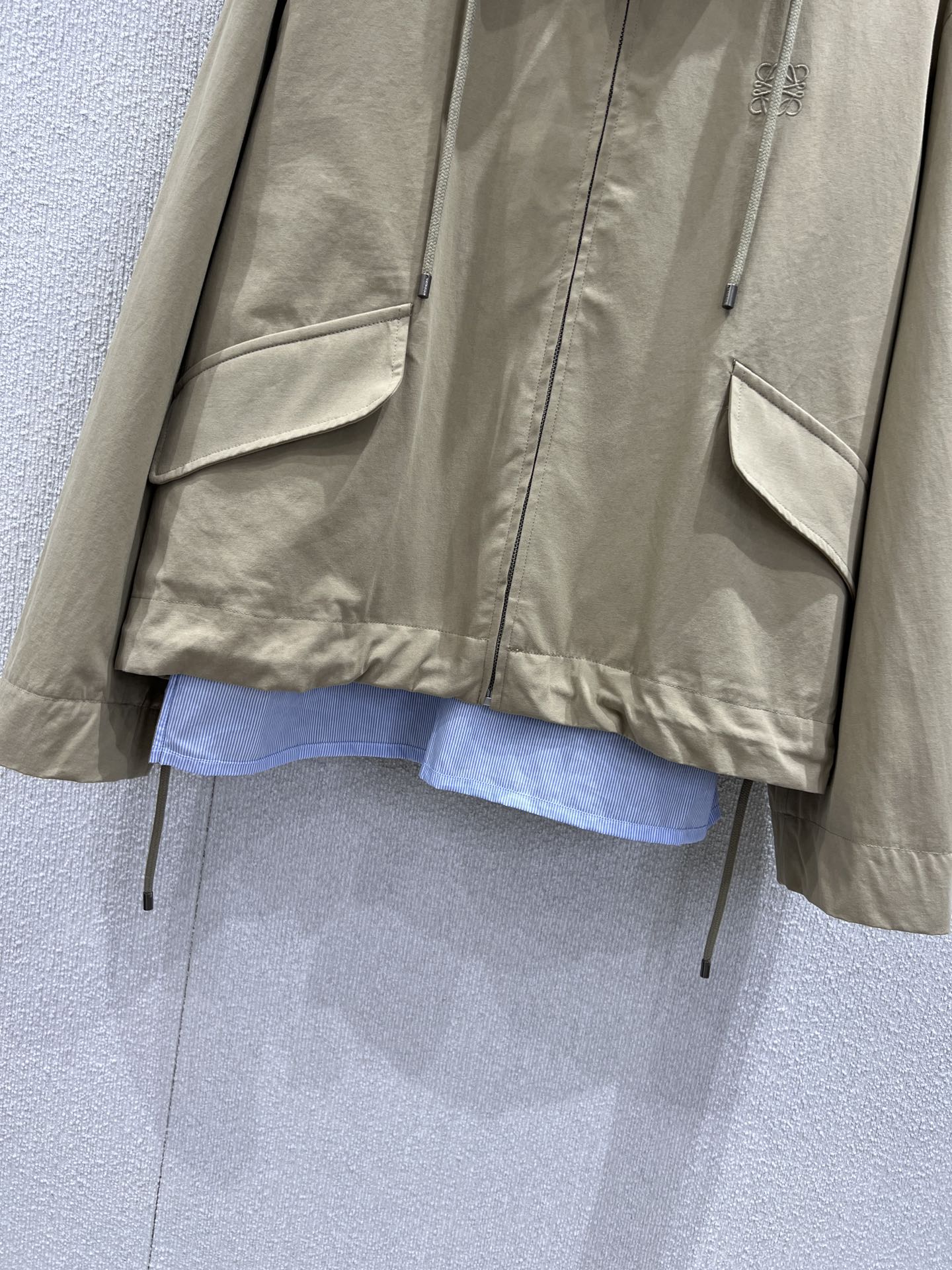 🆕Loew* 25Fw秋冬新款 微标刺绣口袋抽绳宽松连帽风衣外套丨⚠独家yb开发!高版出品!卡其色风衣拼接浅蓝色内衬,假两件设计好特别✨连帽+翻领 一衣两穿的小心思拿捏🤏前后略为不一样的长度,完美包裹女生的臀围,侧面拉长腿部视觉感,宽松版型不挑身材,搭裤子裙子都很绝,谁穿谁是街头最会穿的时髦精~已经列入今年最值得入的风衣list📝完美做工品质看细节。