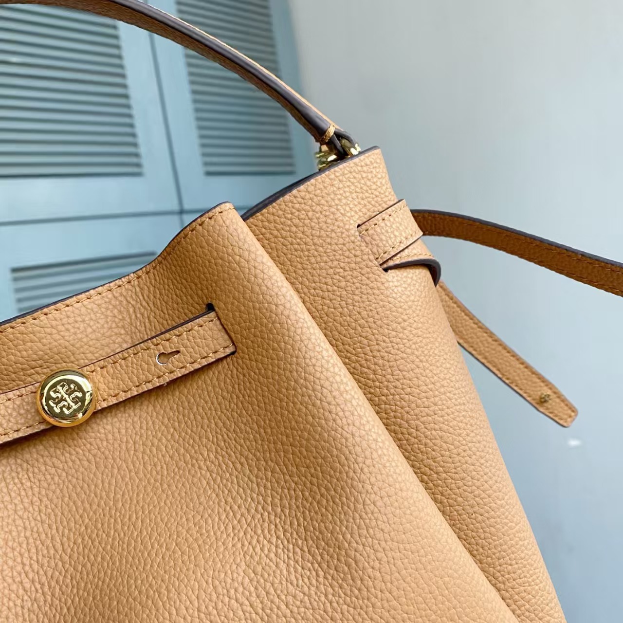TORY BURCH Romy Bucket Romy 可调节可拆卸肩带五金配件 荔枝纹皮革 水桶包单肩手提包 小号 (CB)