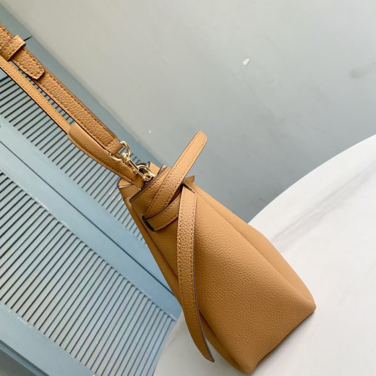 编号923 ROMY手提斜挎水桶包,采用细腻厚实的头层牛皮材质,具有柔和收腰的轮廓。它是终极的日常手提包,重量轻,内部空间宽敞,配有深口袋。配有细腰带和我们的全新按钮标志。可手提或斜挎。