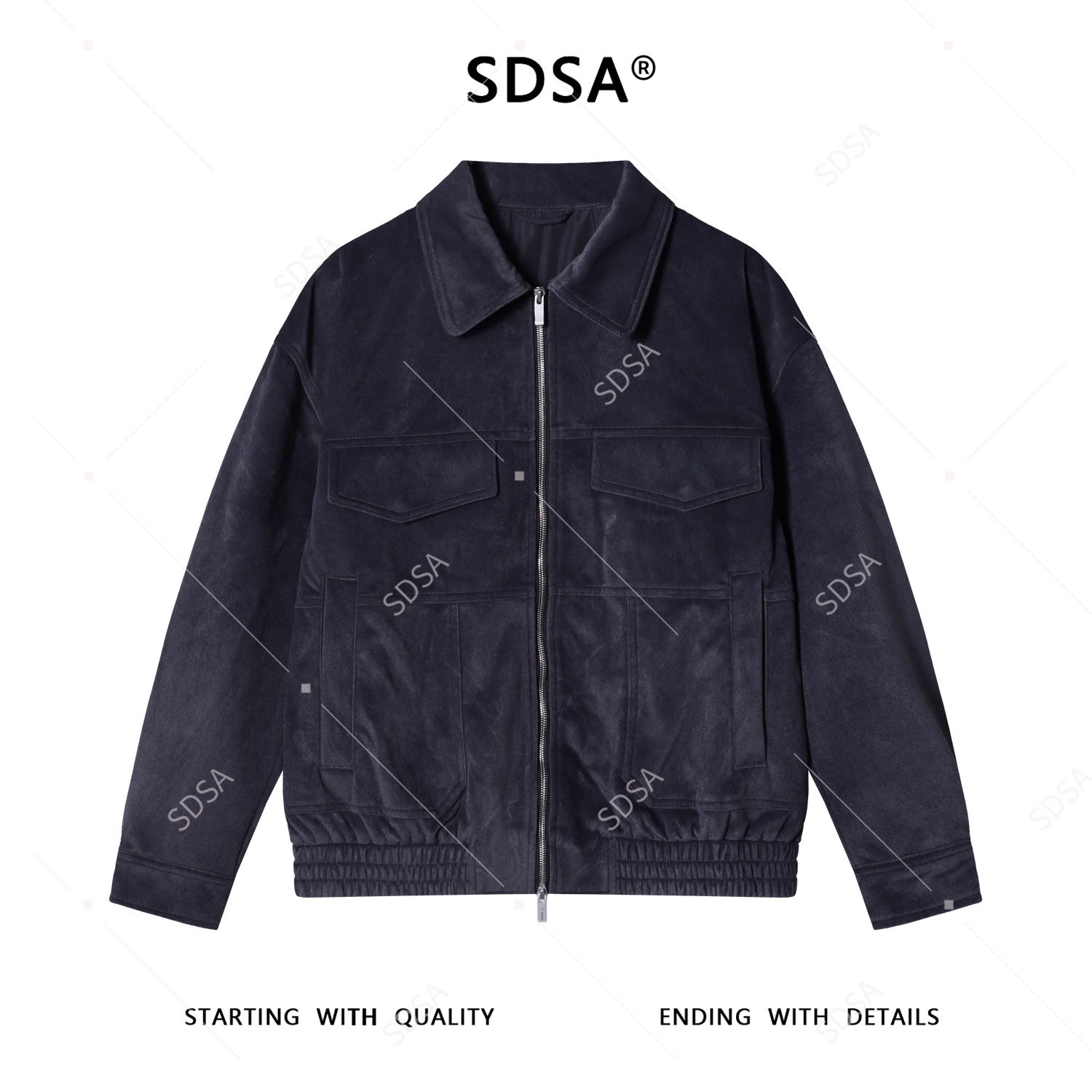 8702SDSA秋冬新款痞帅男装美式绒面纯色压线拉链翻领夹克外套时尚休闲