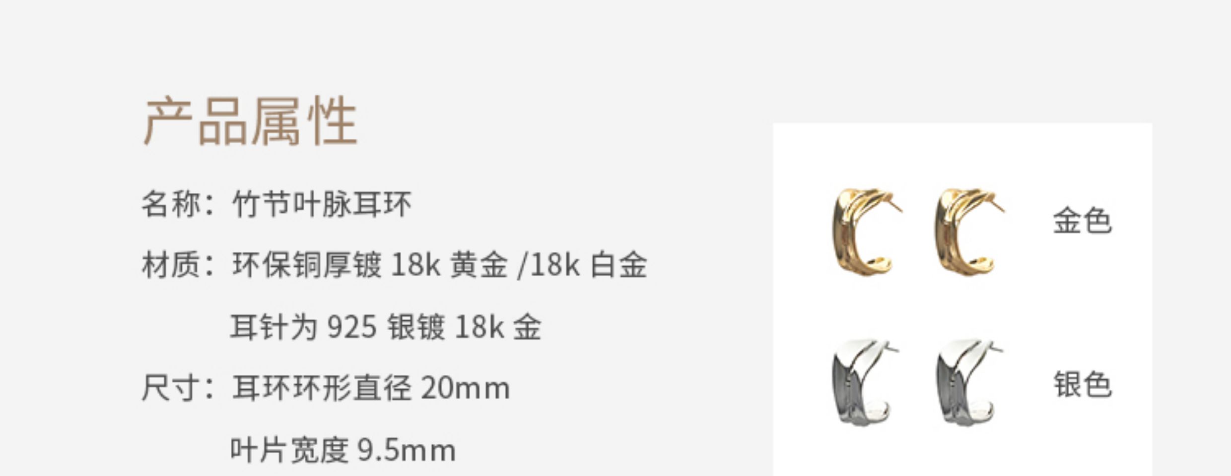 LHWINDSOR 原创设计竹节叶脉耳环经典竹节系列耳环金银双色个性