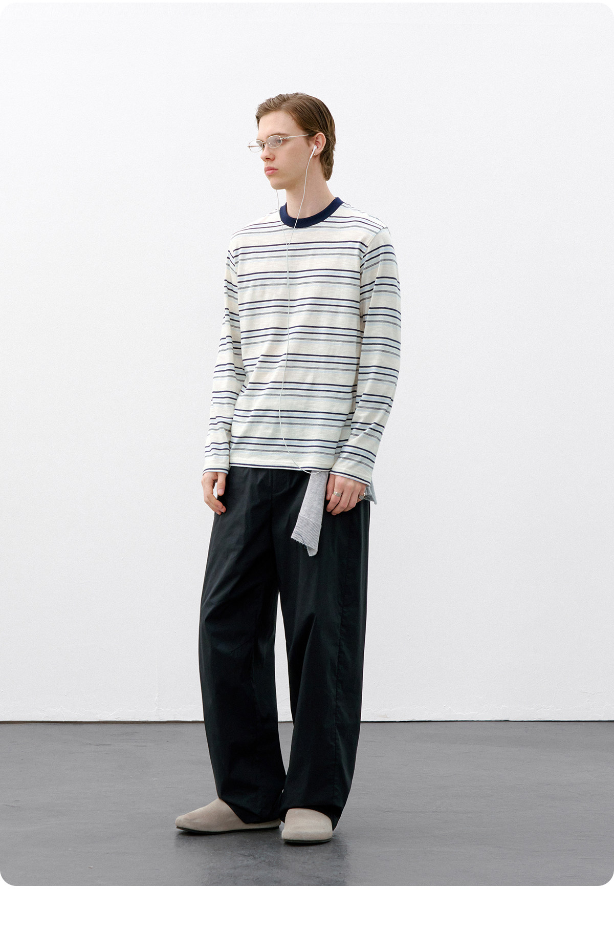 714street轻薄条纹长袖上衣2026春季新款潮牌休闲圆领混纺T恤男女