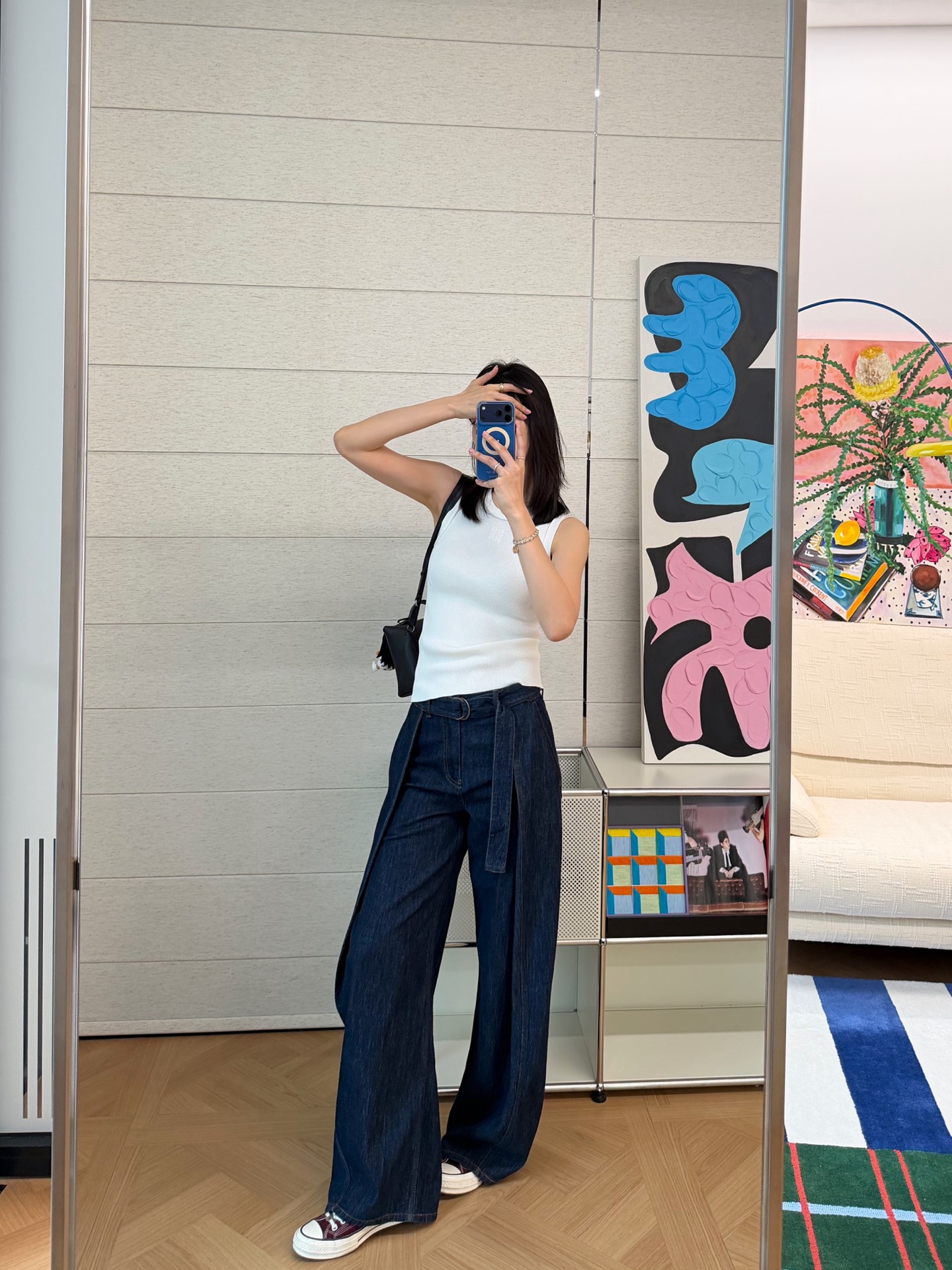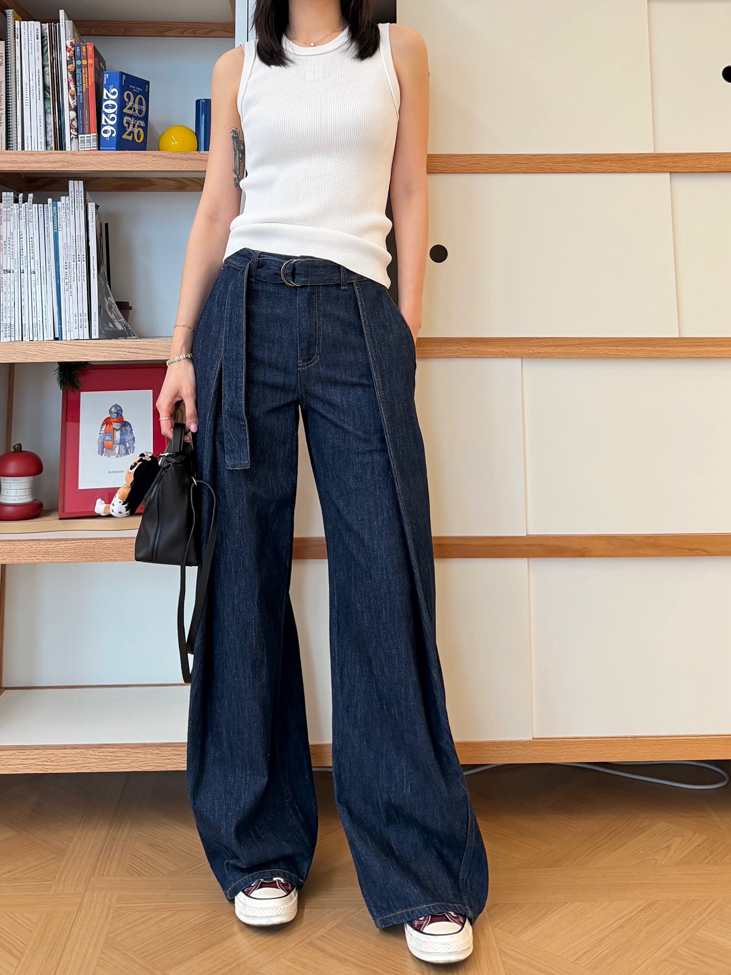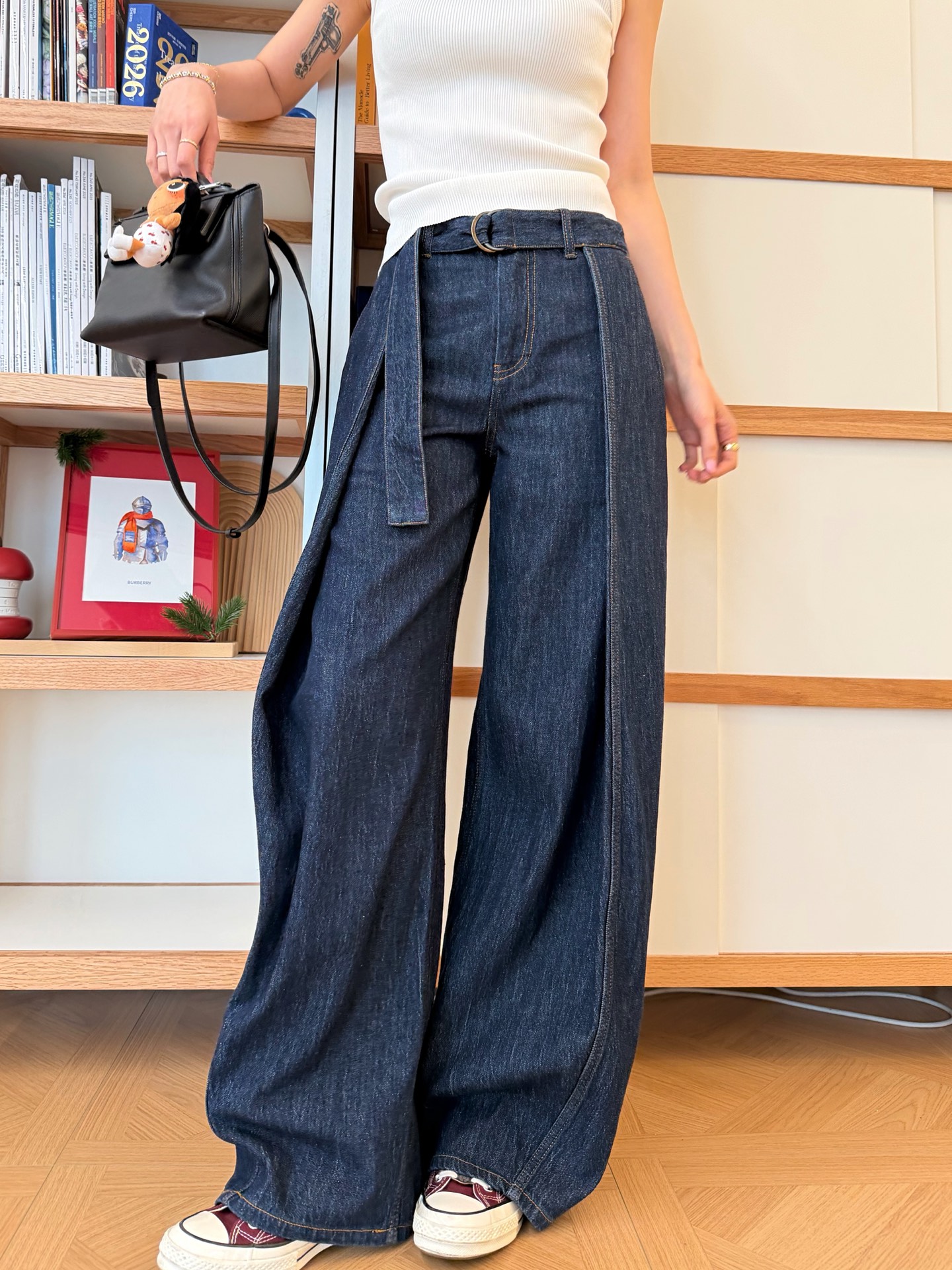 【新款现货发售】新款🆕腰带阔腿牛仔裤✨梨形身材本命神裤👍🏻阔腿剪裁➕高腰系带设计😜自带显瘦滤镜,完美修饰胯宽腿粗,拉长腿部比例,秒变超模腿☑️甄选欧洲进口牛仔坯布,复古水洗蓝调自带高级工匠感,质感拉满🔝四季可穿的万能单品➰配针织衫温柔慵懒,搭背心/短上衣甜酷随性,街头感与高级感轻松切换,时髦精闭眼冲💞版型绝绝子‼️恰到好处的裤长+立体中线,梨形身材闭眼入,人手一条不过分☺️