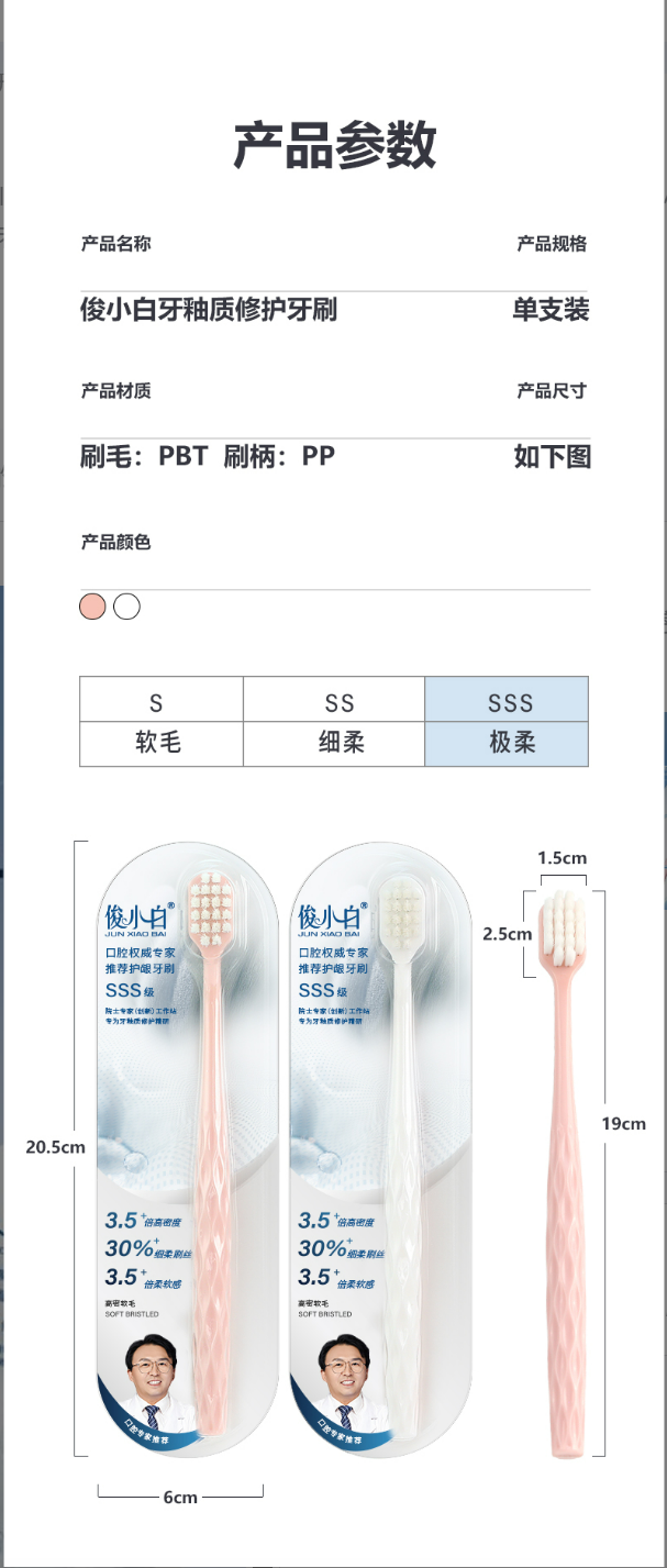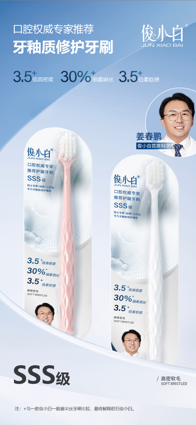 【三支装】【高密柔丝 云朵感护龈】俊小白高密软毛护龈牙刷