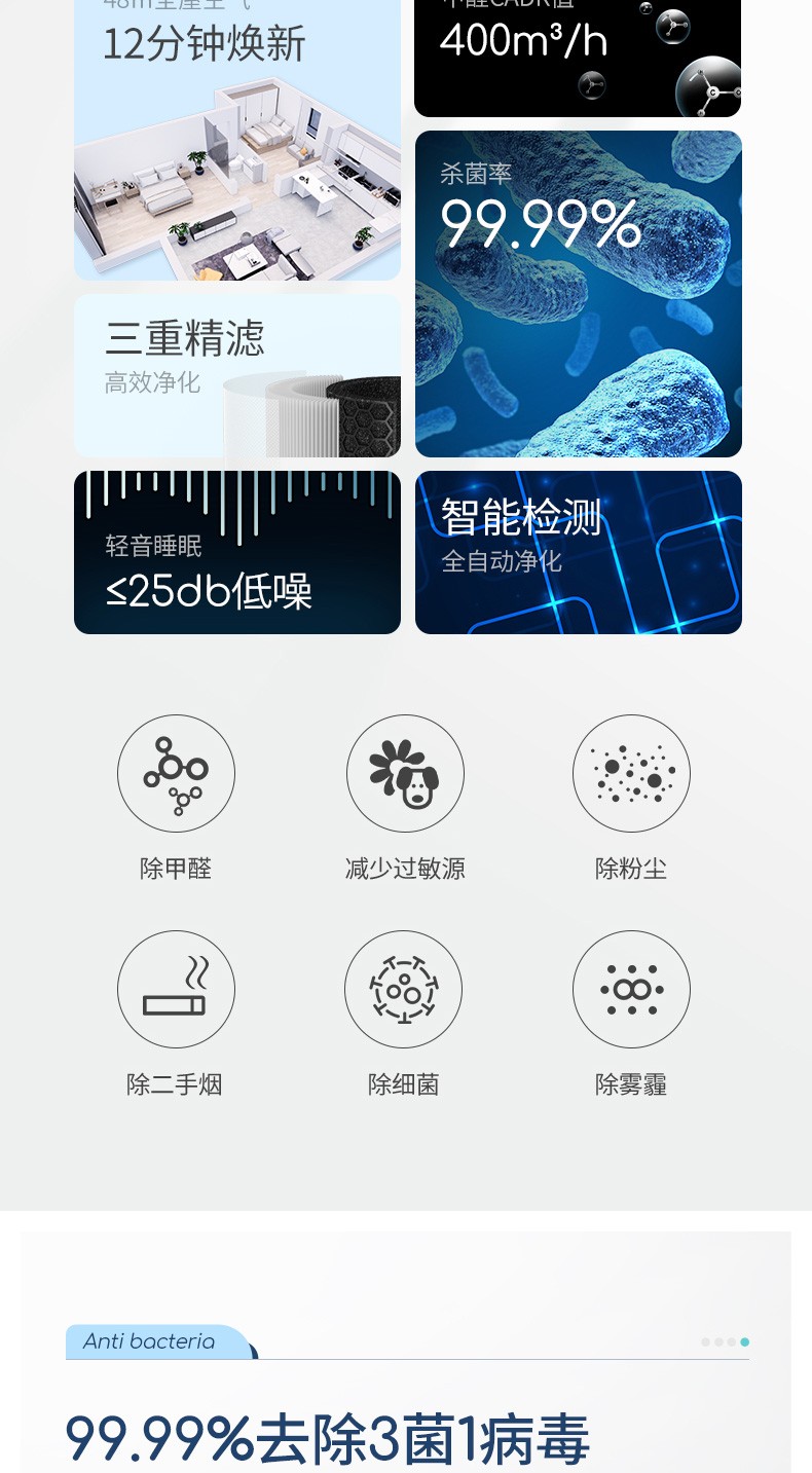 摩飞电器(Morphyrichards)家用办公室全屋净化新风消毒机去除甲醛分解除尘二手烟异味 MR3500 空气净化器