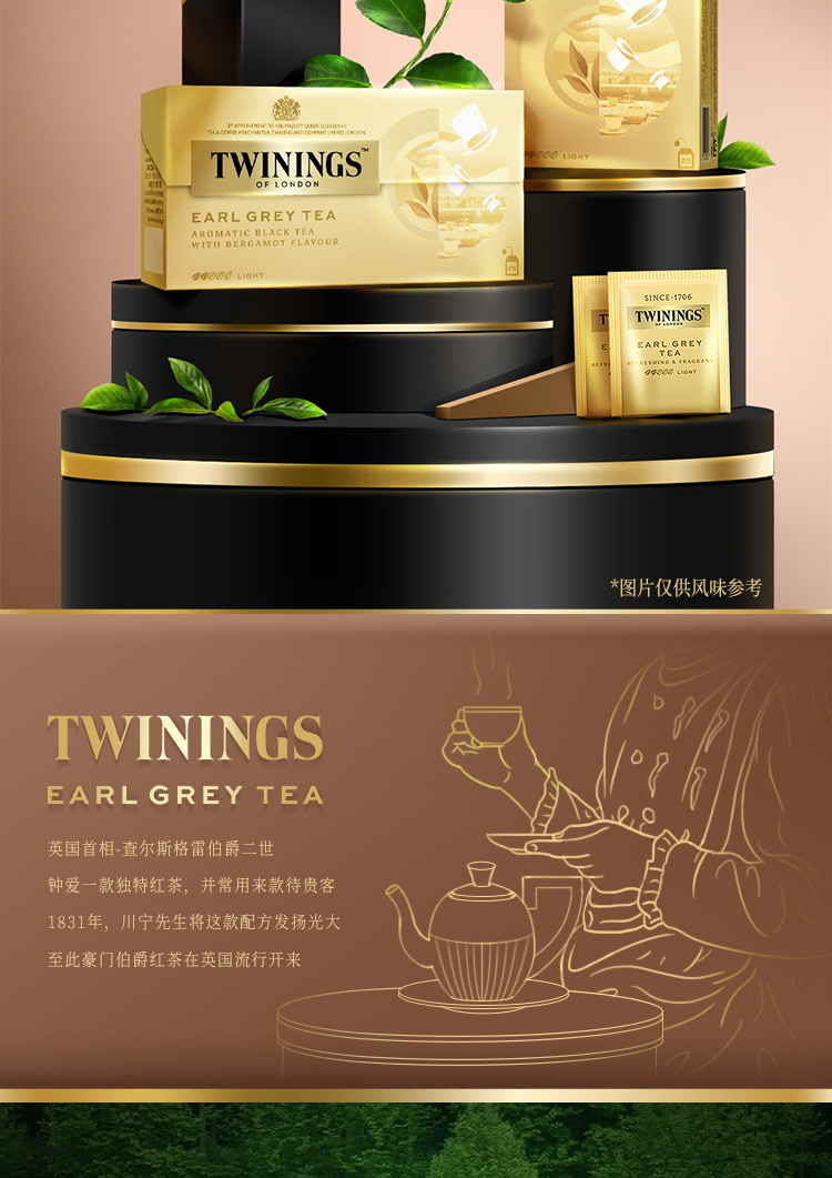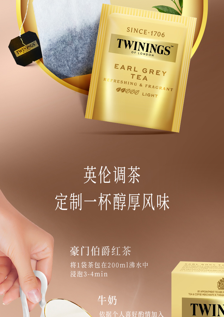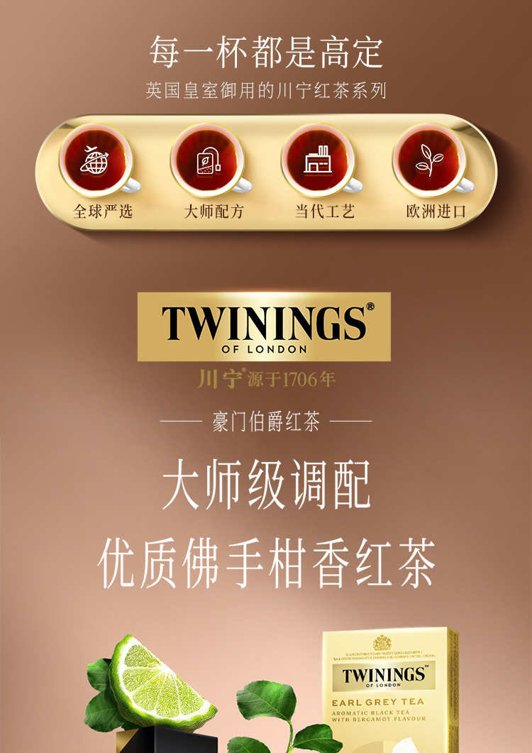 【森哥优选】川宁 4盒100袋 豪门伯爵红茶 英国进口twinings 茶包英式奶茶专用茶叶茶粉 25袋