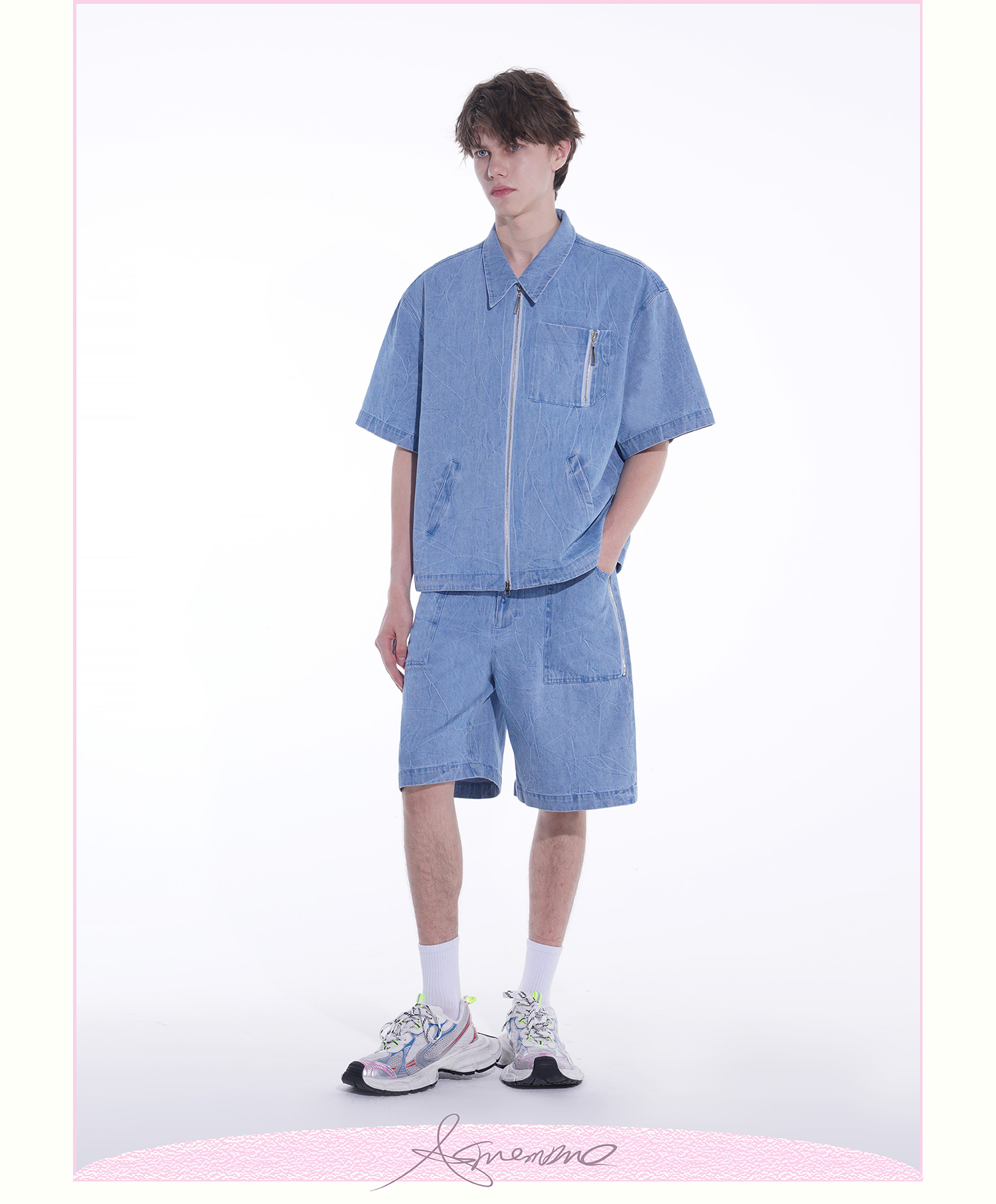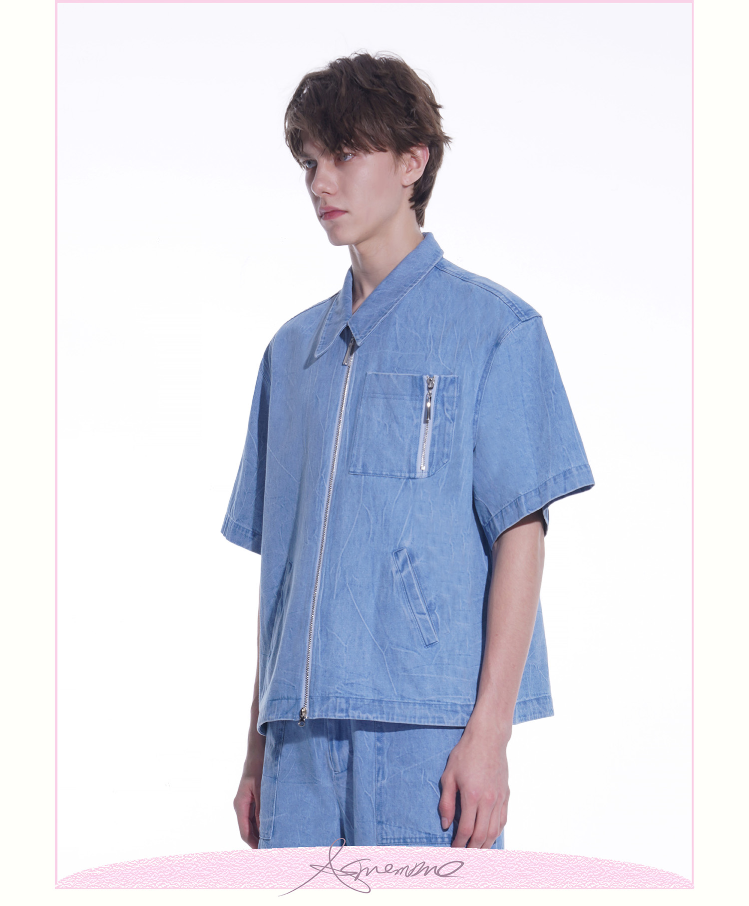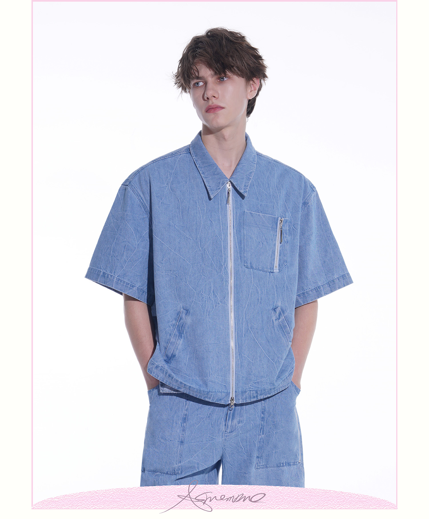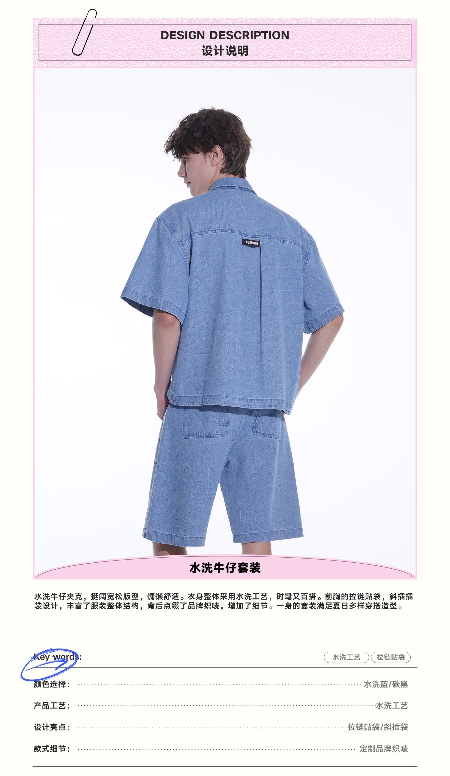 ASMEMMO咦哇•“岛屿蓝”水洗蓝色牛仔夹克外套夏季短袖套装男女
