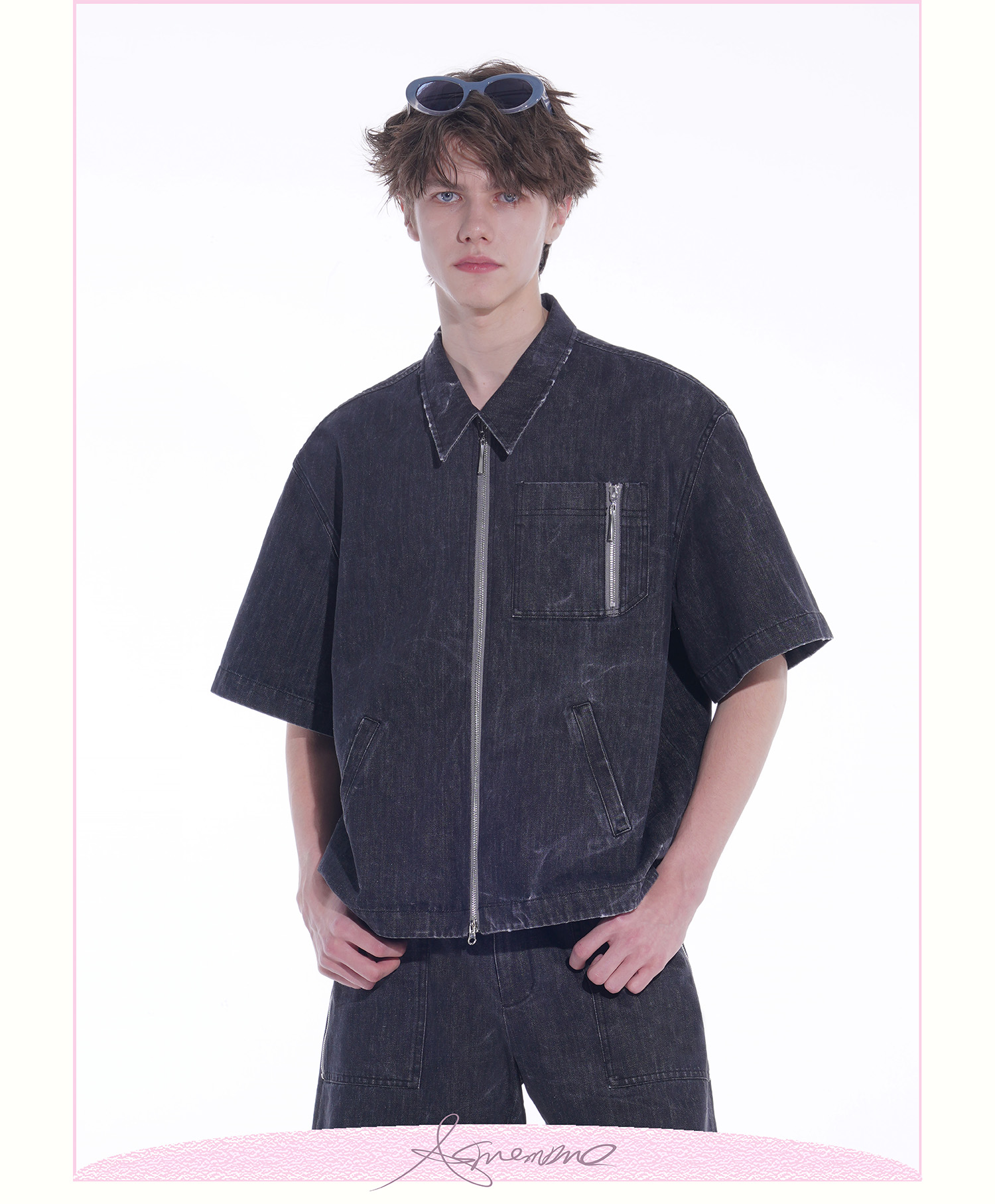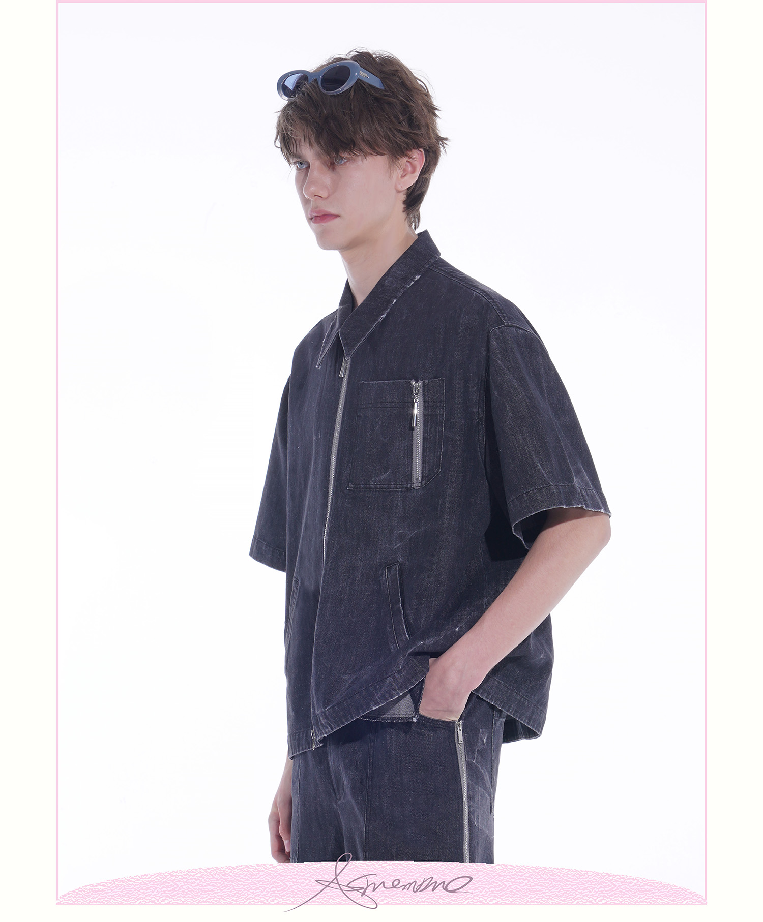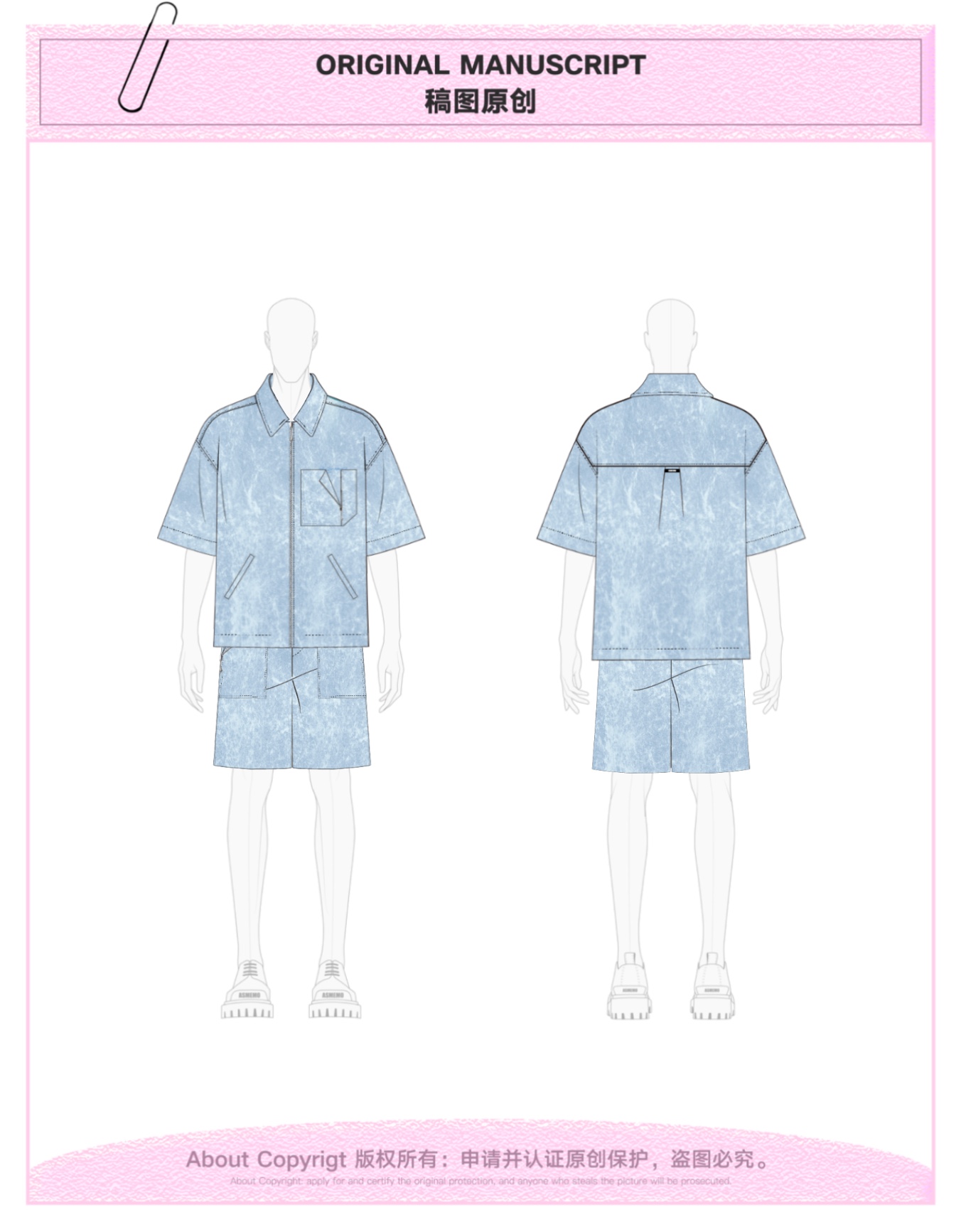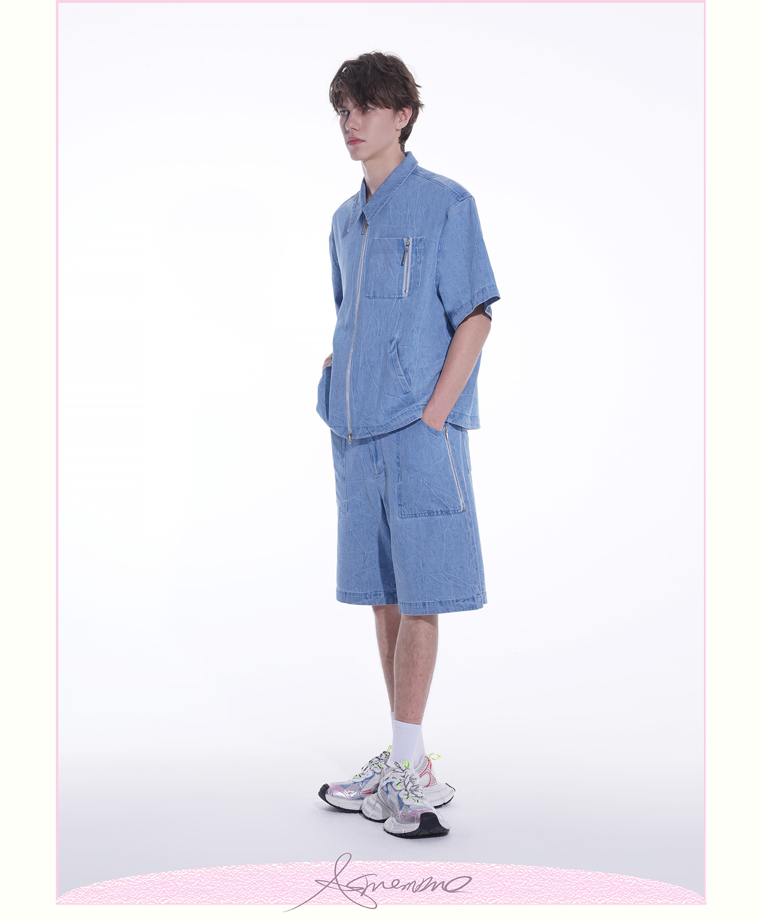 ASMEMMO咦哇•“岛屿蓝”水洗蓝色牛仔夹克外套夏季短袖套装男女
