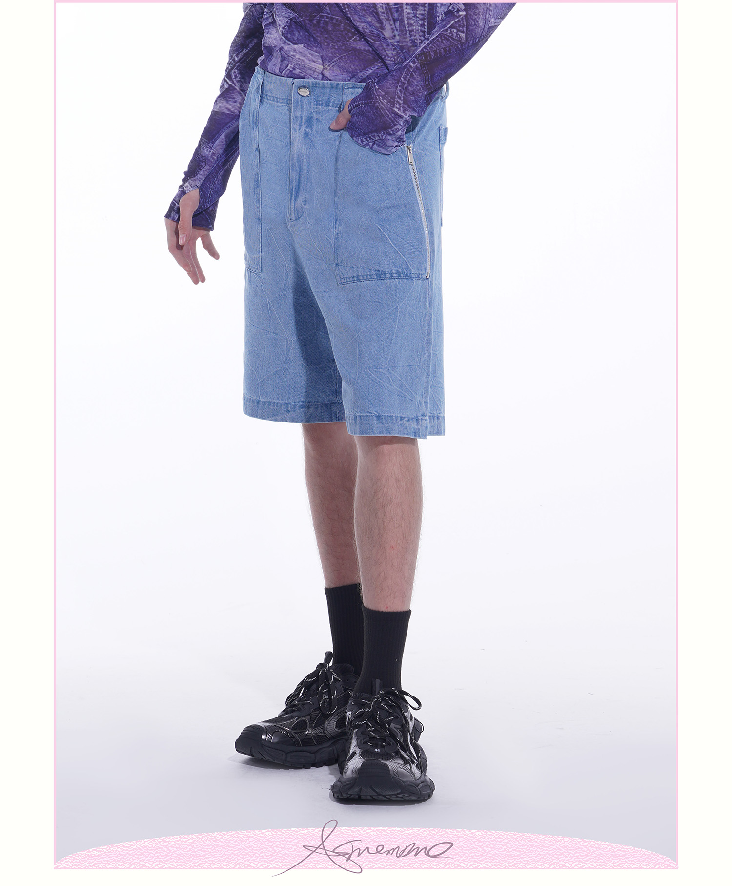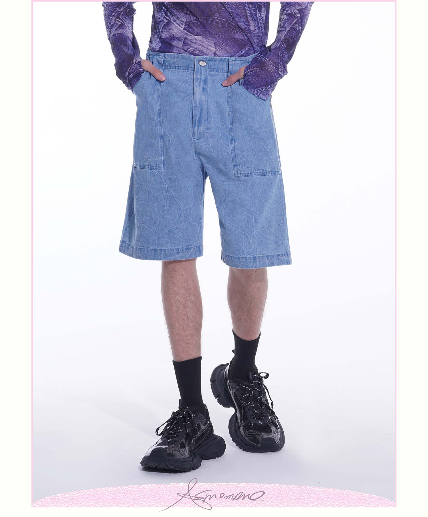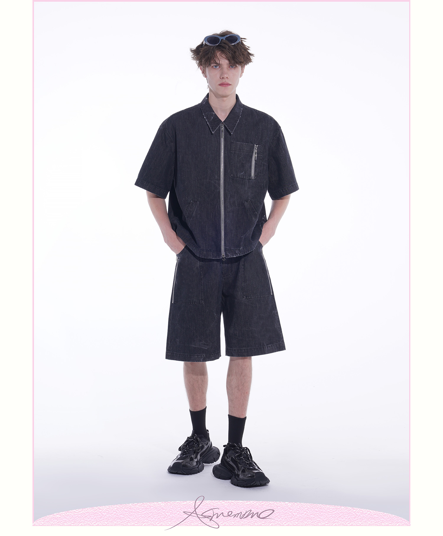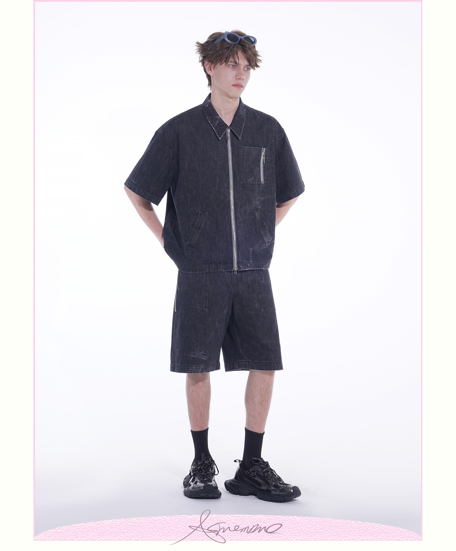 ASMEMMO咦哇•“岛屿蓝”水洗蓝色牛仔夹克外套夏季短袖套装男女