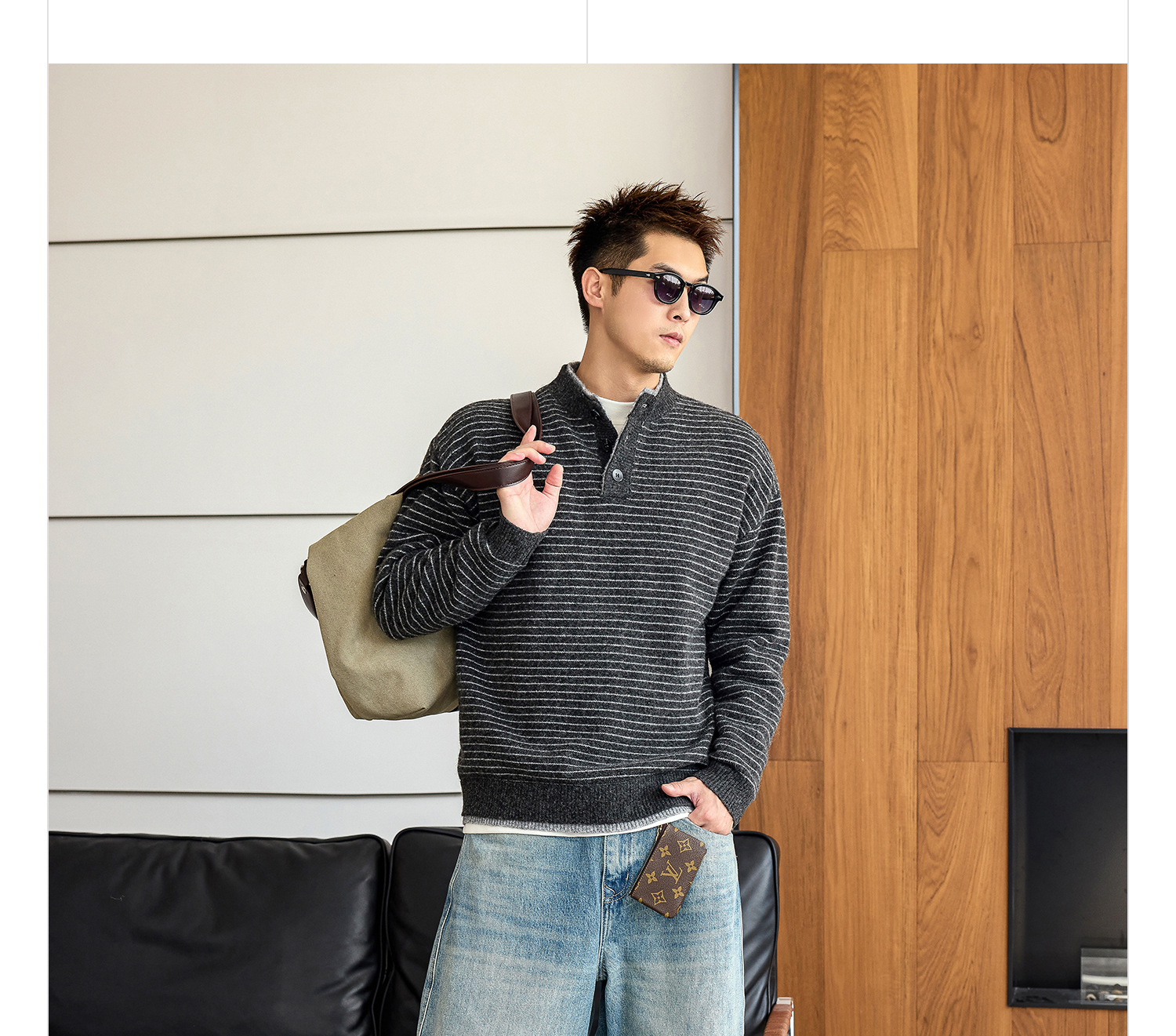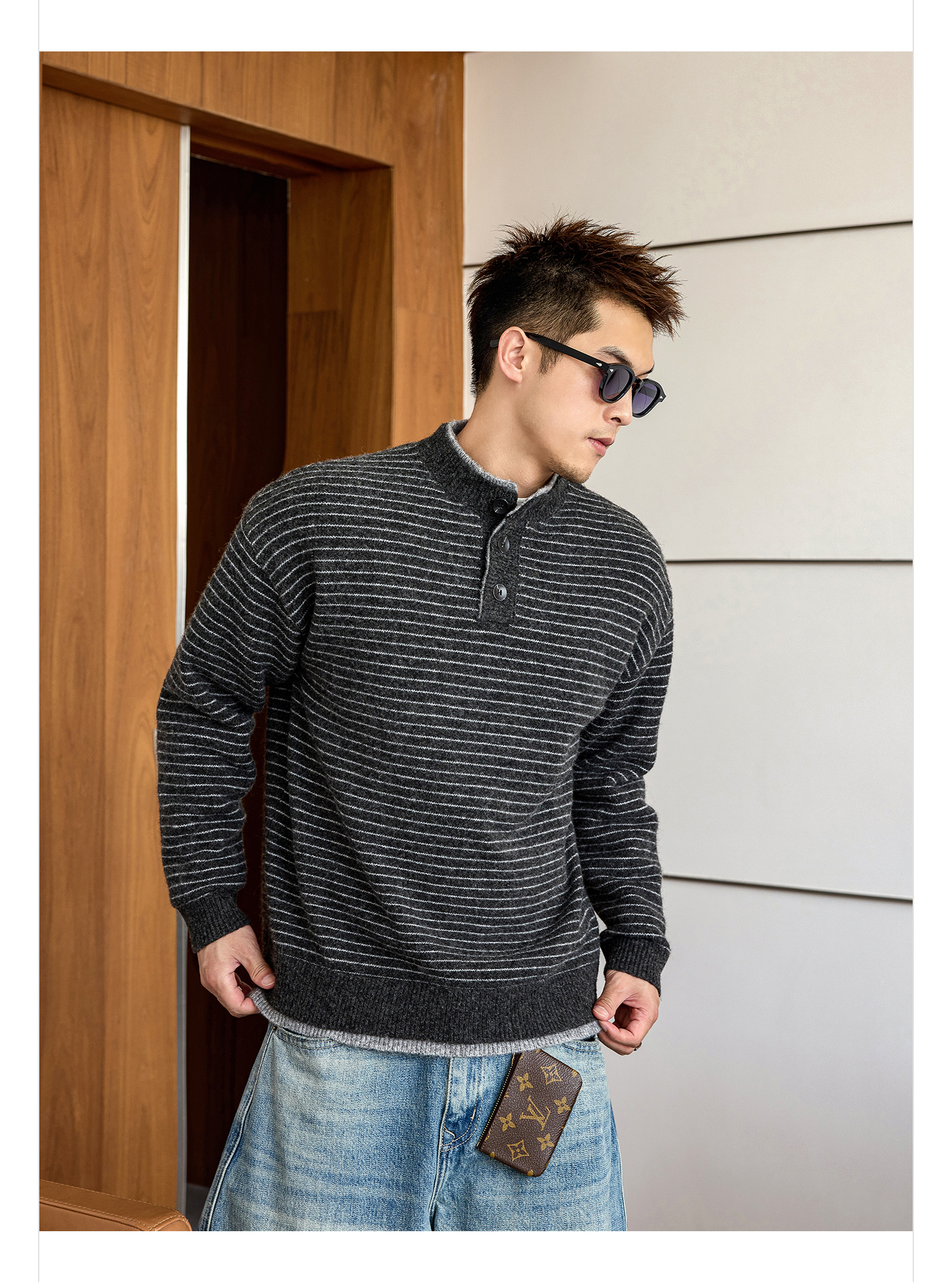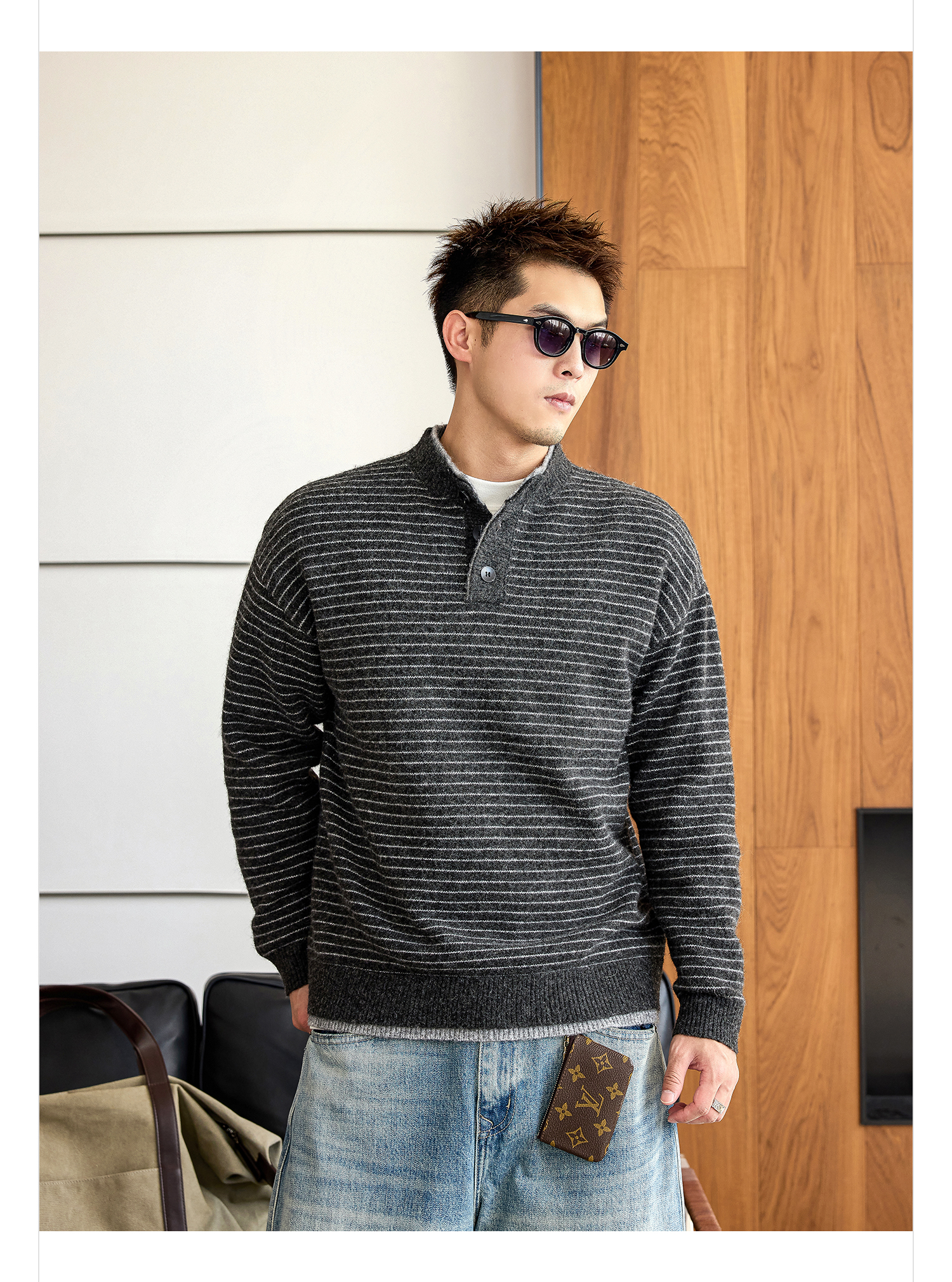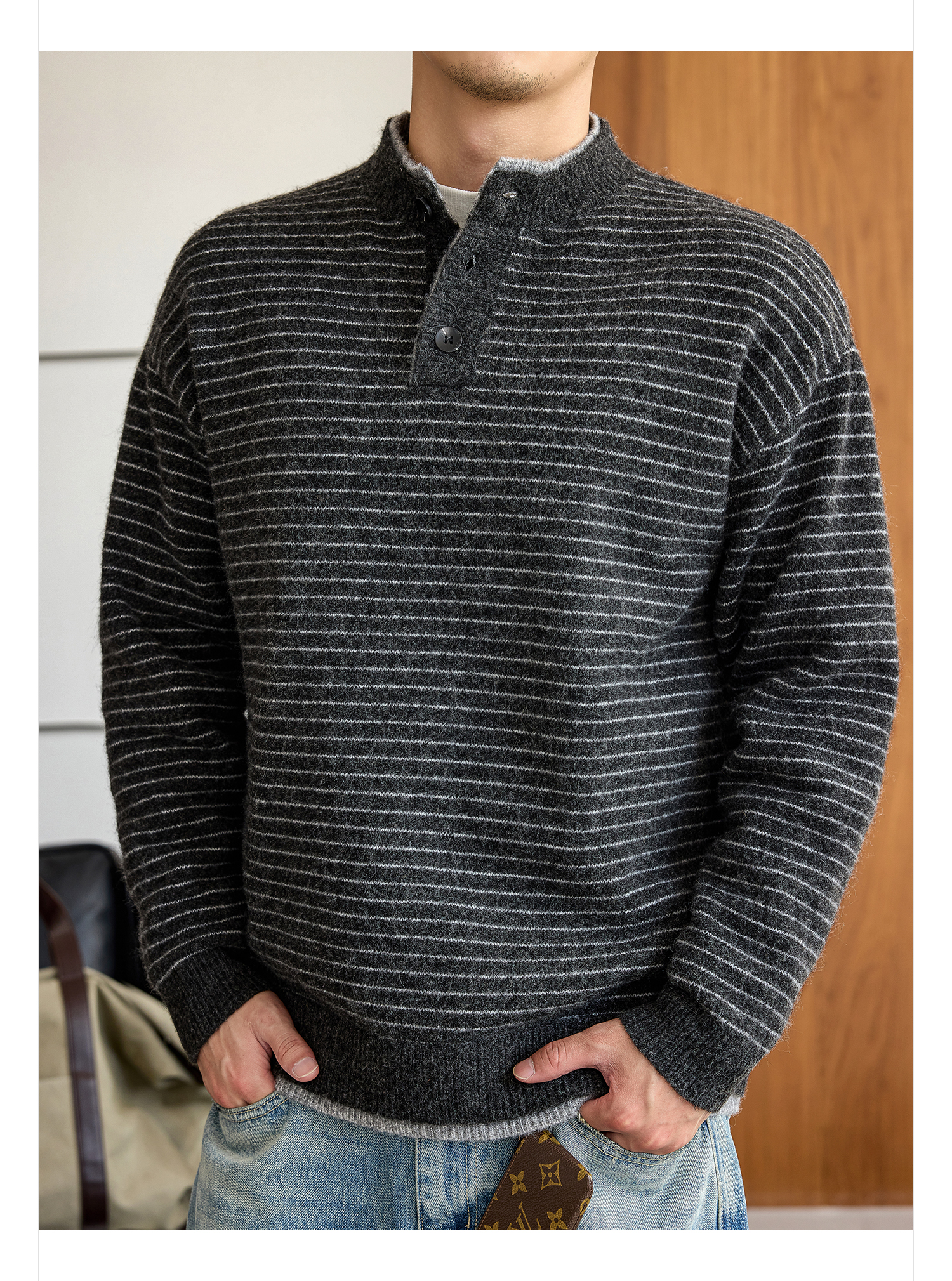 徐太浪【羊毛混纺 毛绒条纹】大码毛衣男冬季保暖内搭针织衫上衣
