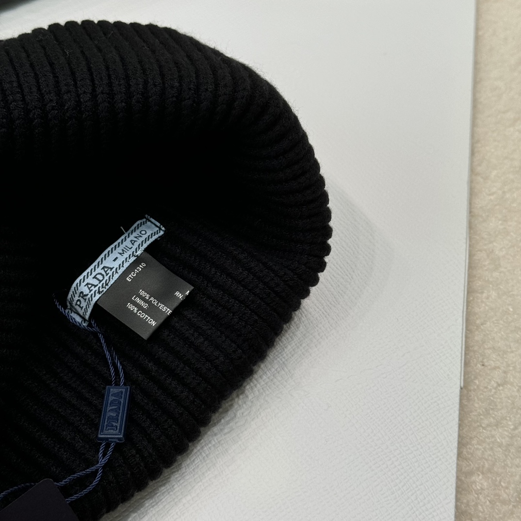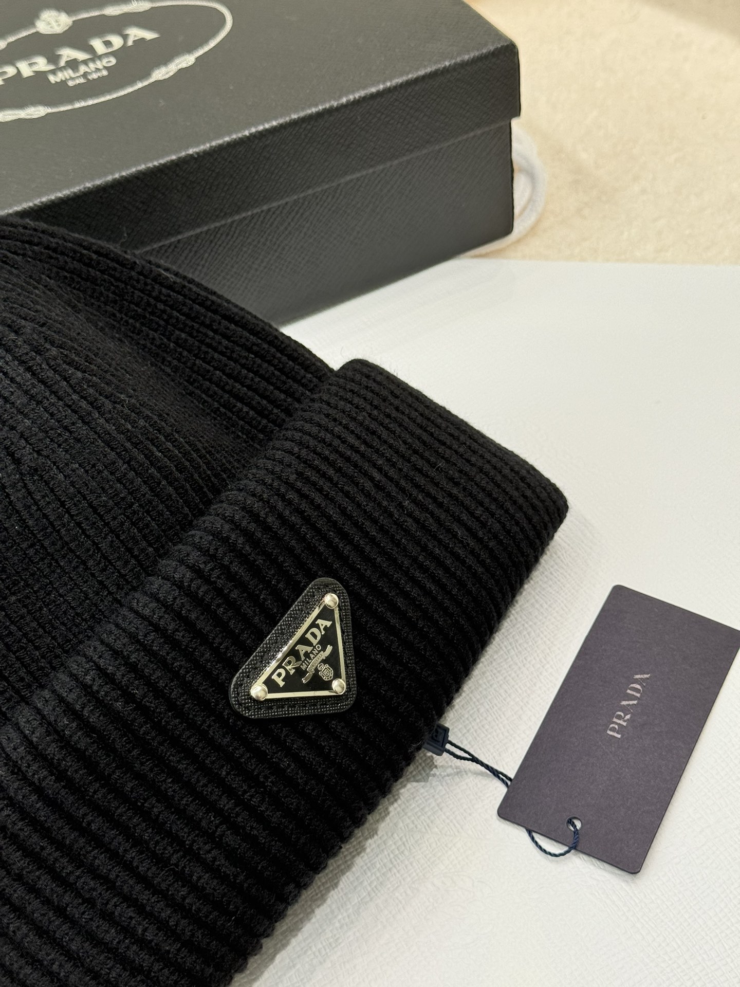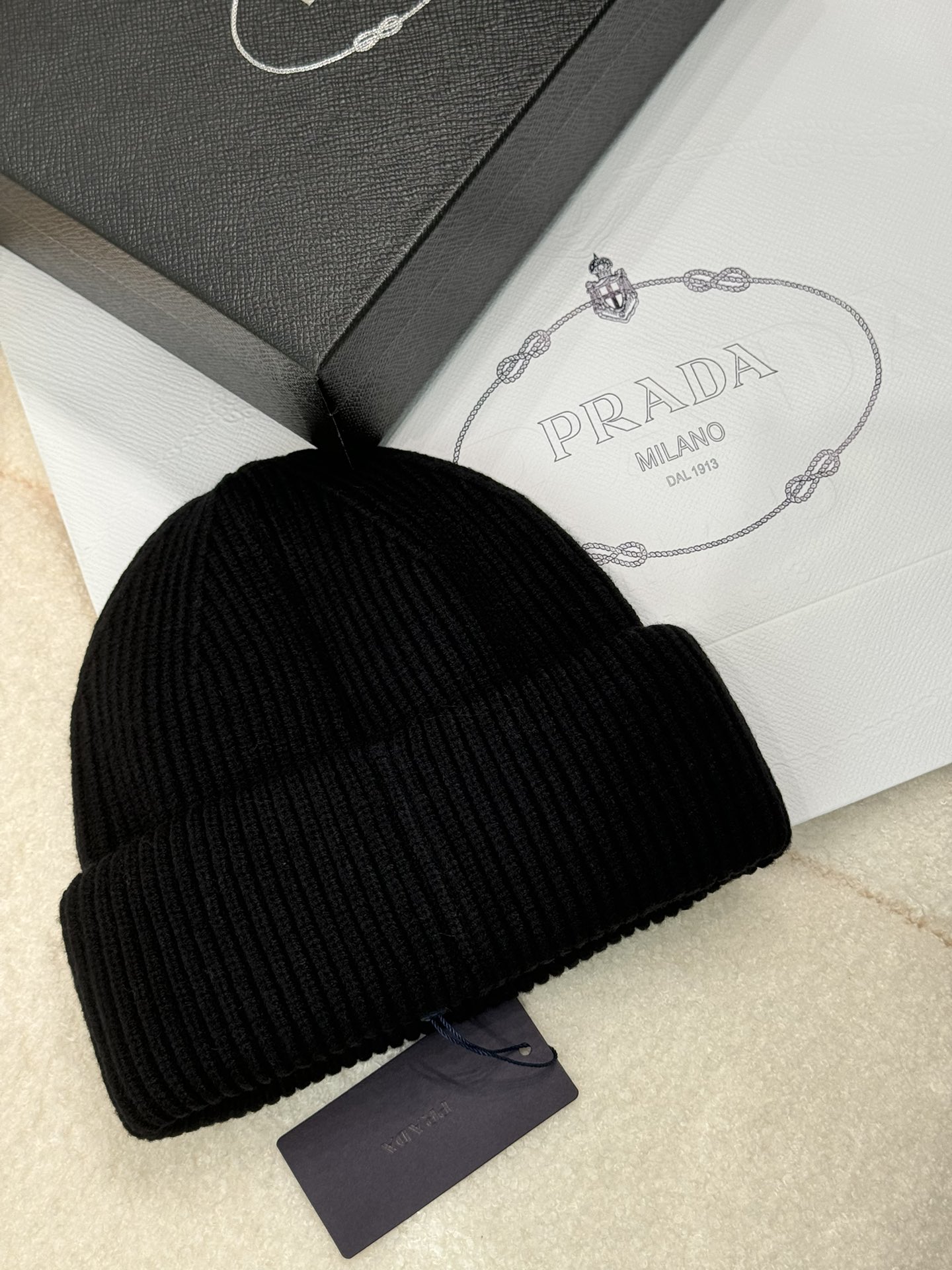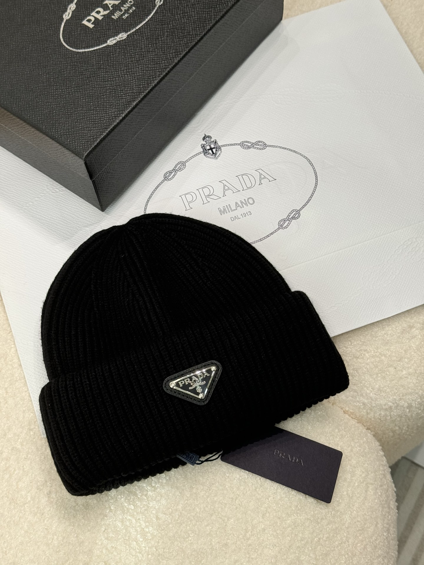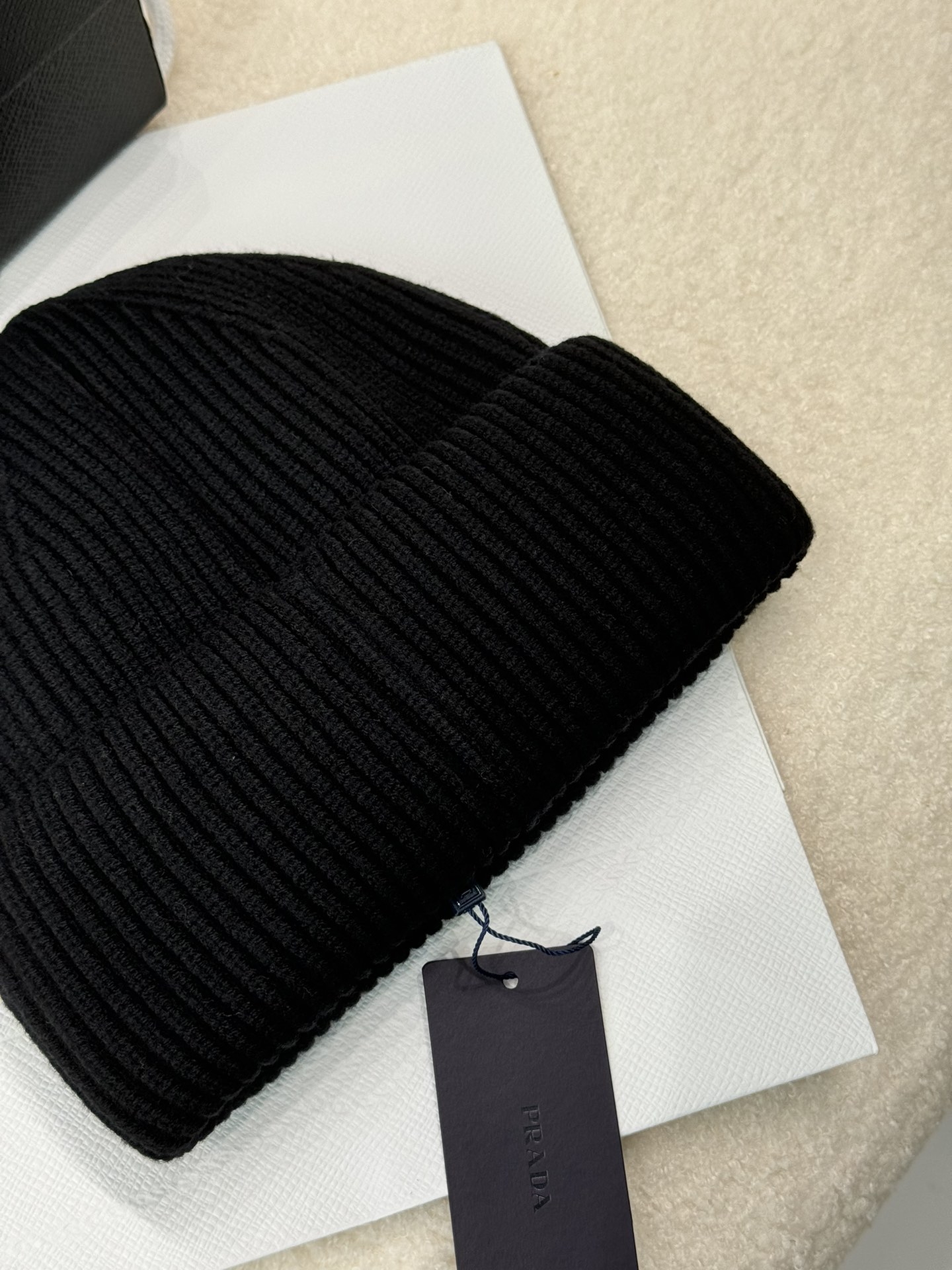 PRADA普拉达秋冬款翻边羊毛针织毛线帽