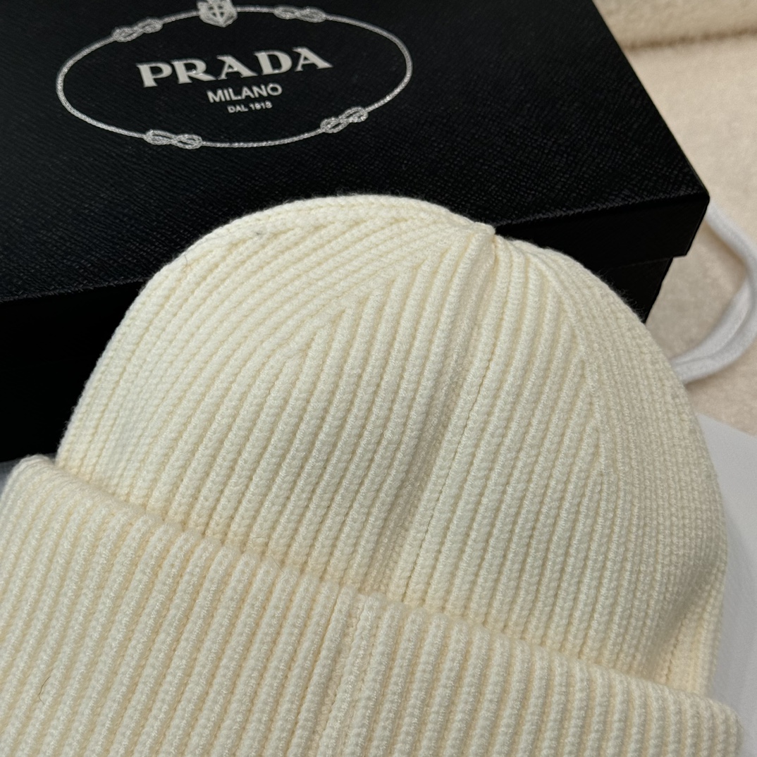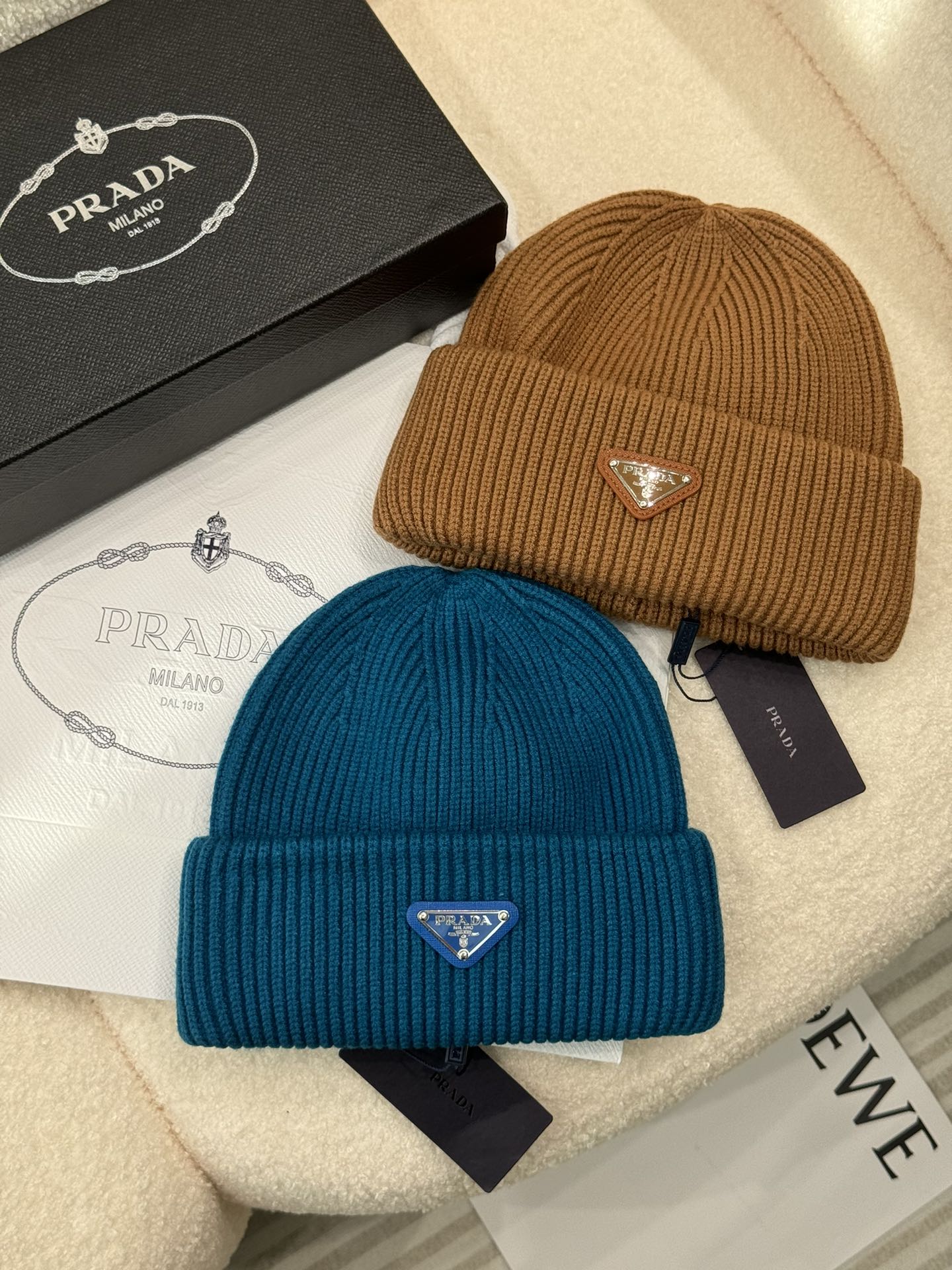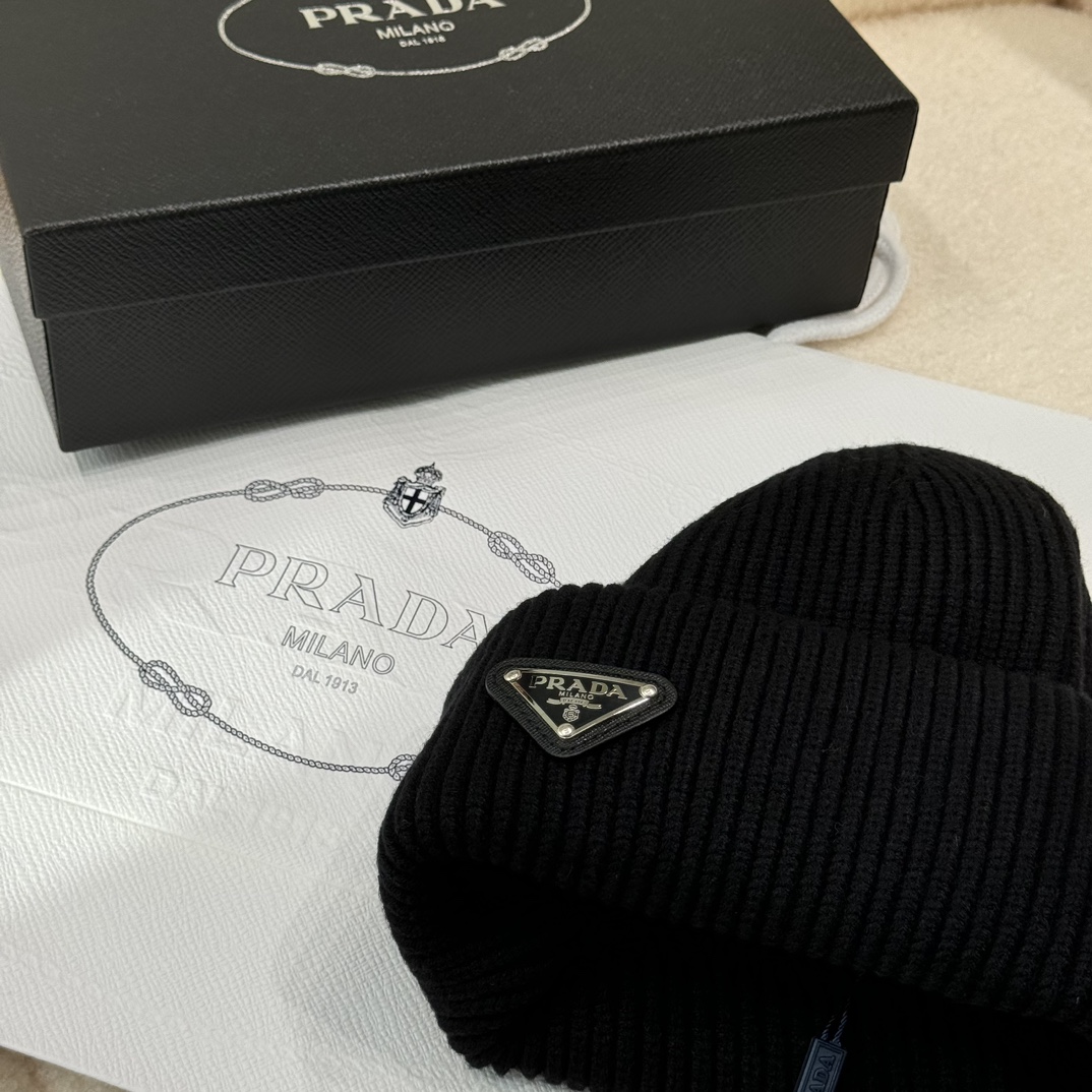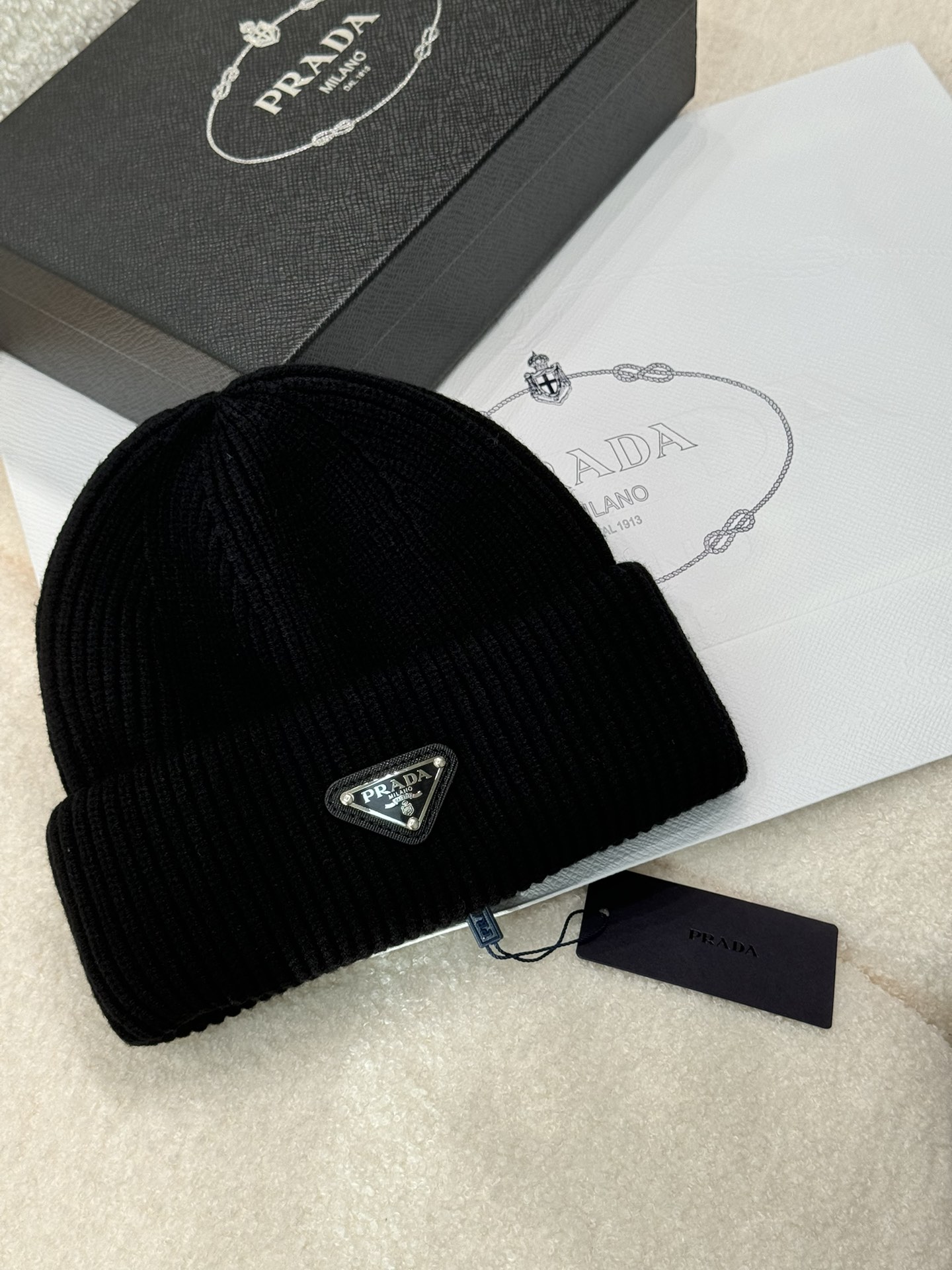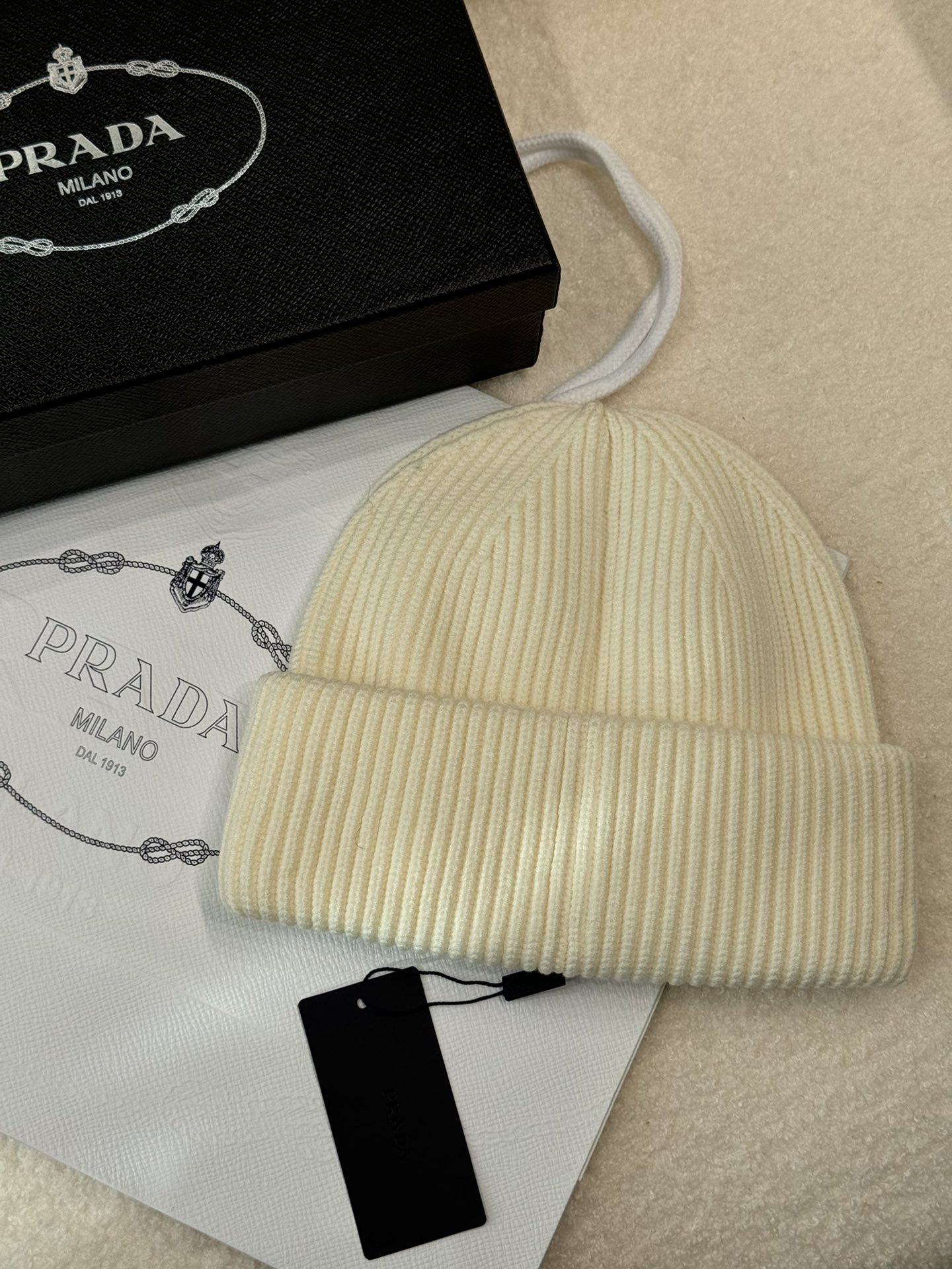 PRADA普拉达秋冬款翻边羊毛针织毛线帽