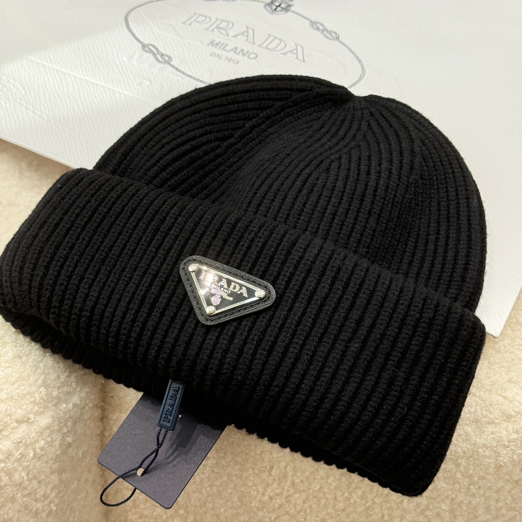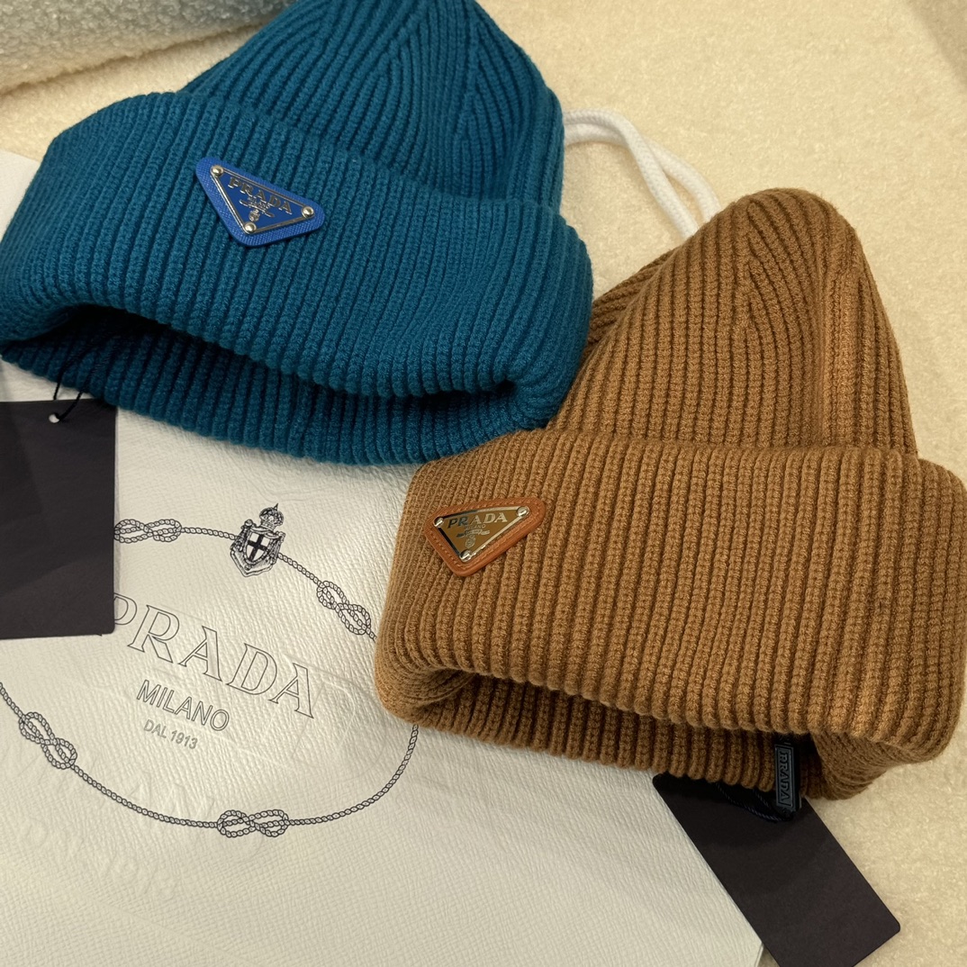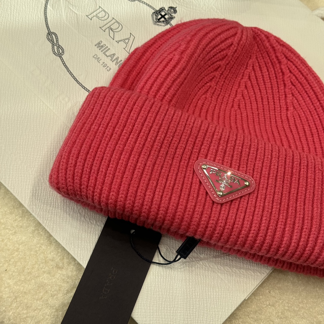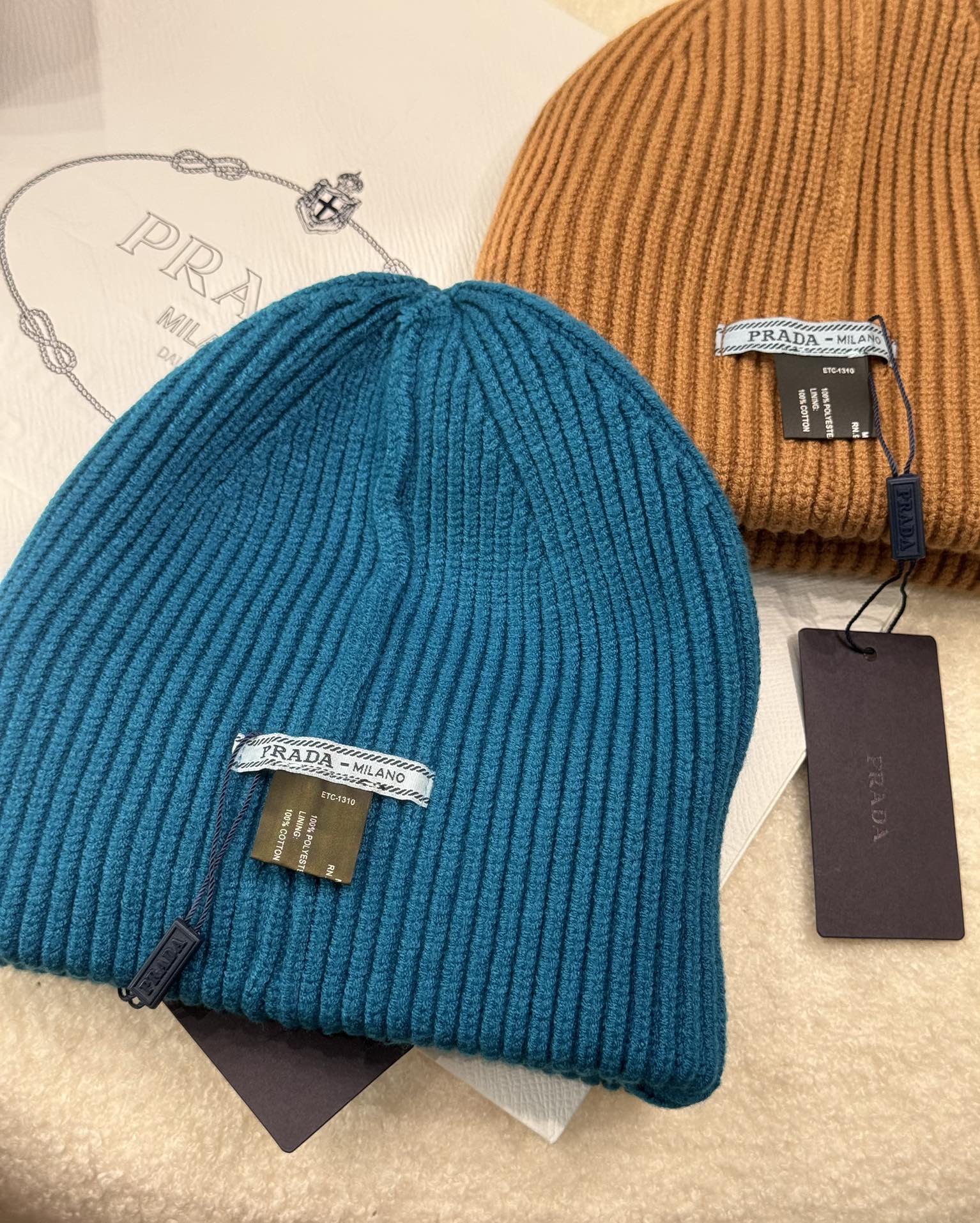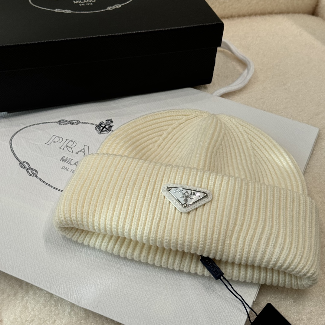 PRADA普拉达秋冬款翻边羊毛针织毛线帽