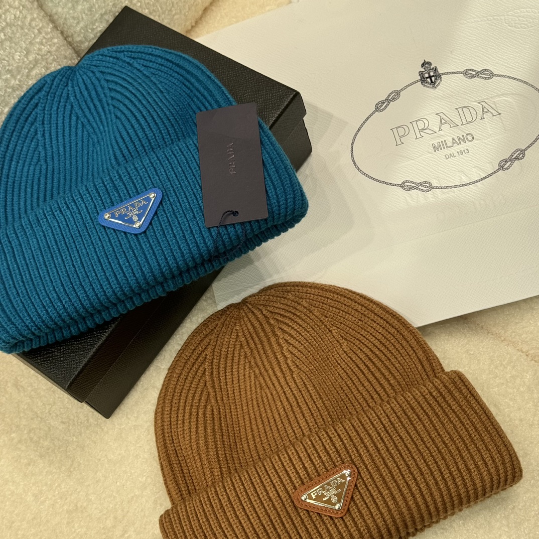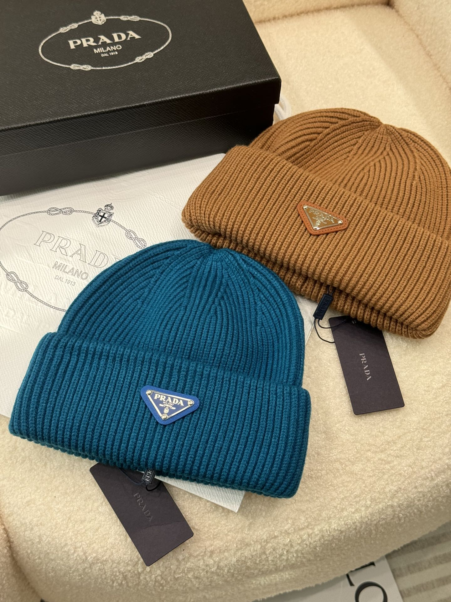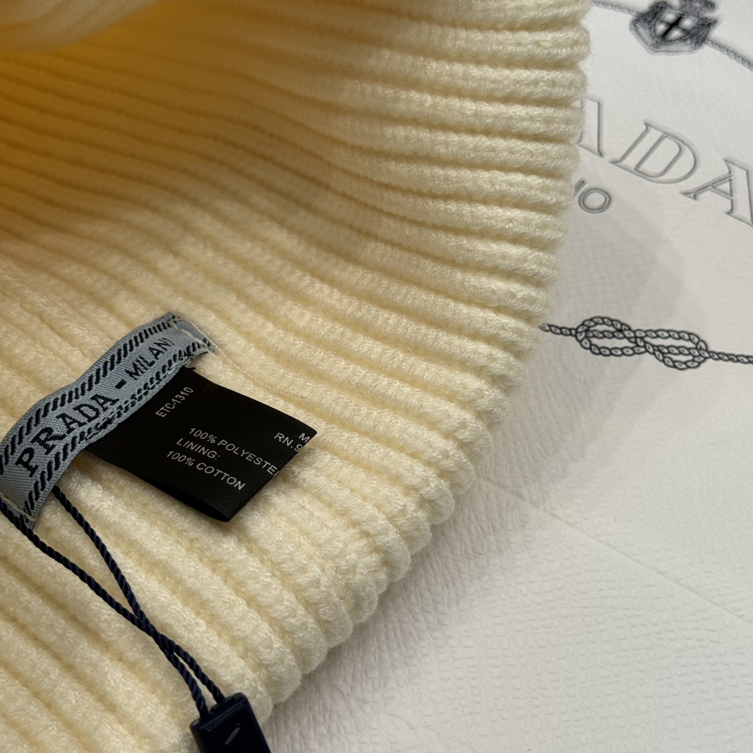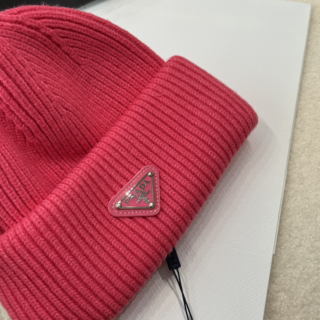 PRADA普拉达秋冬款翻边羊毛针织毛线帽