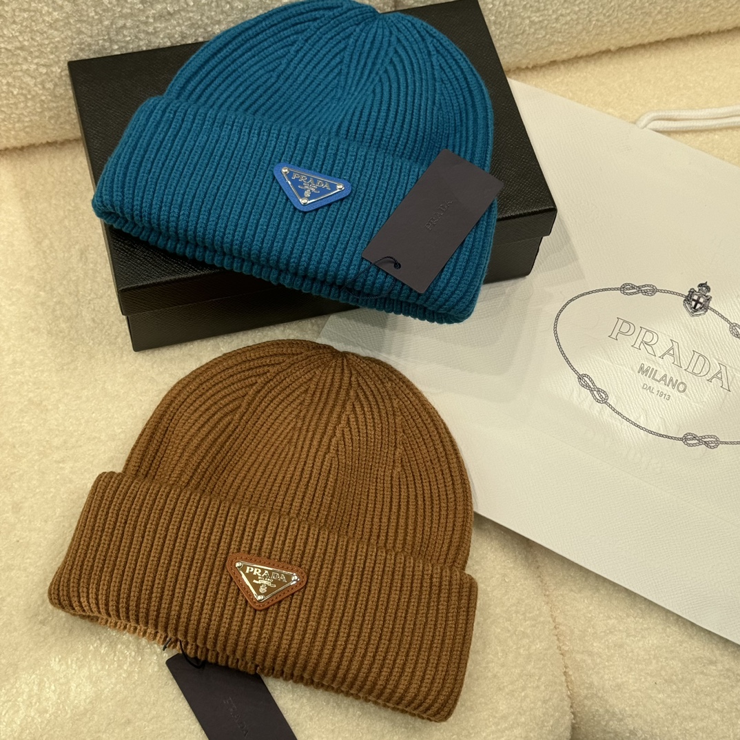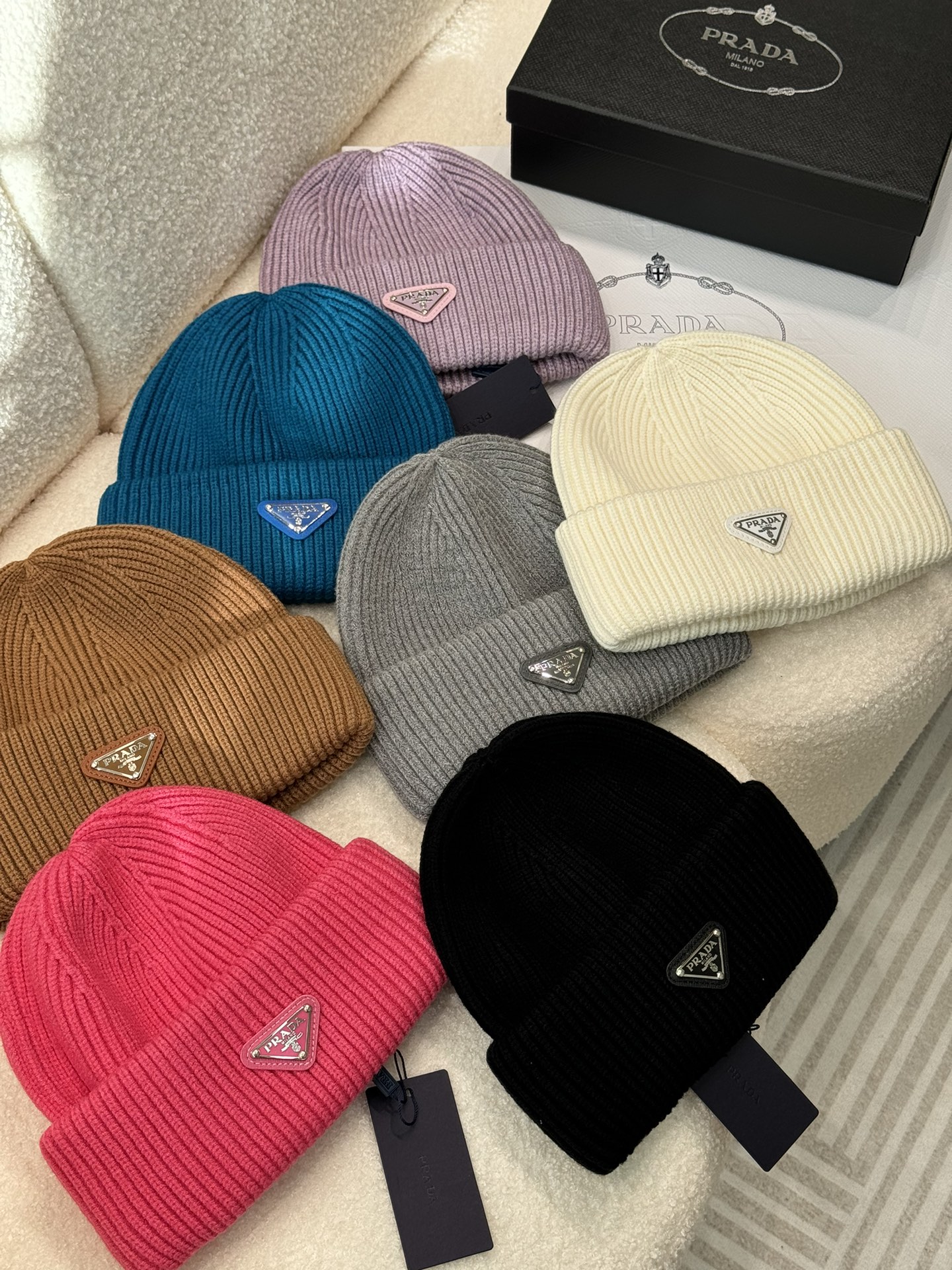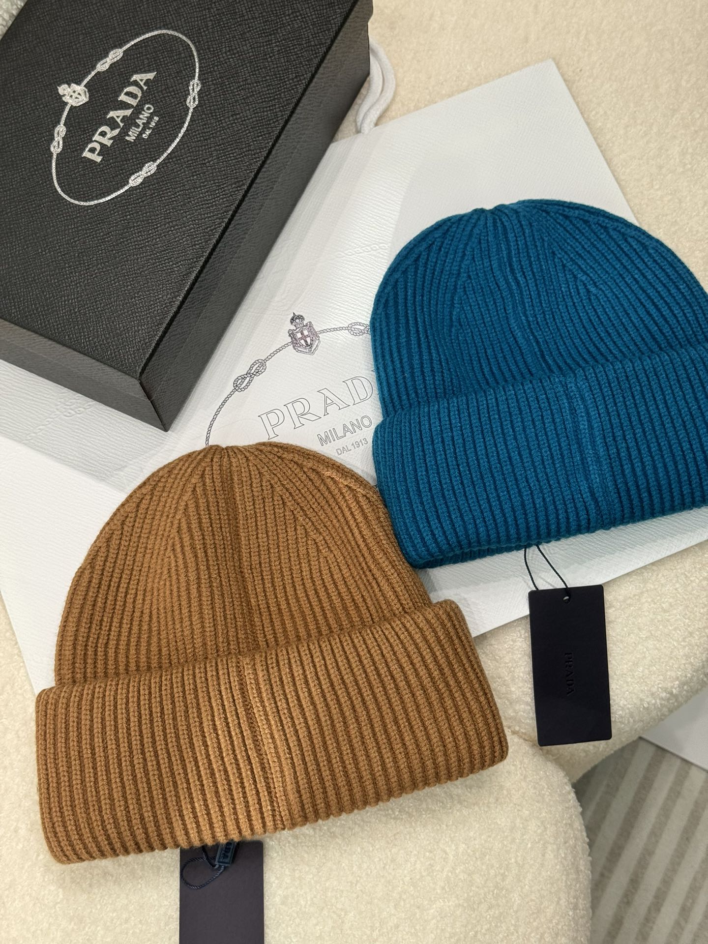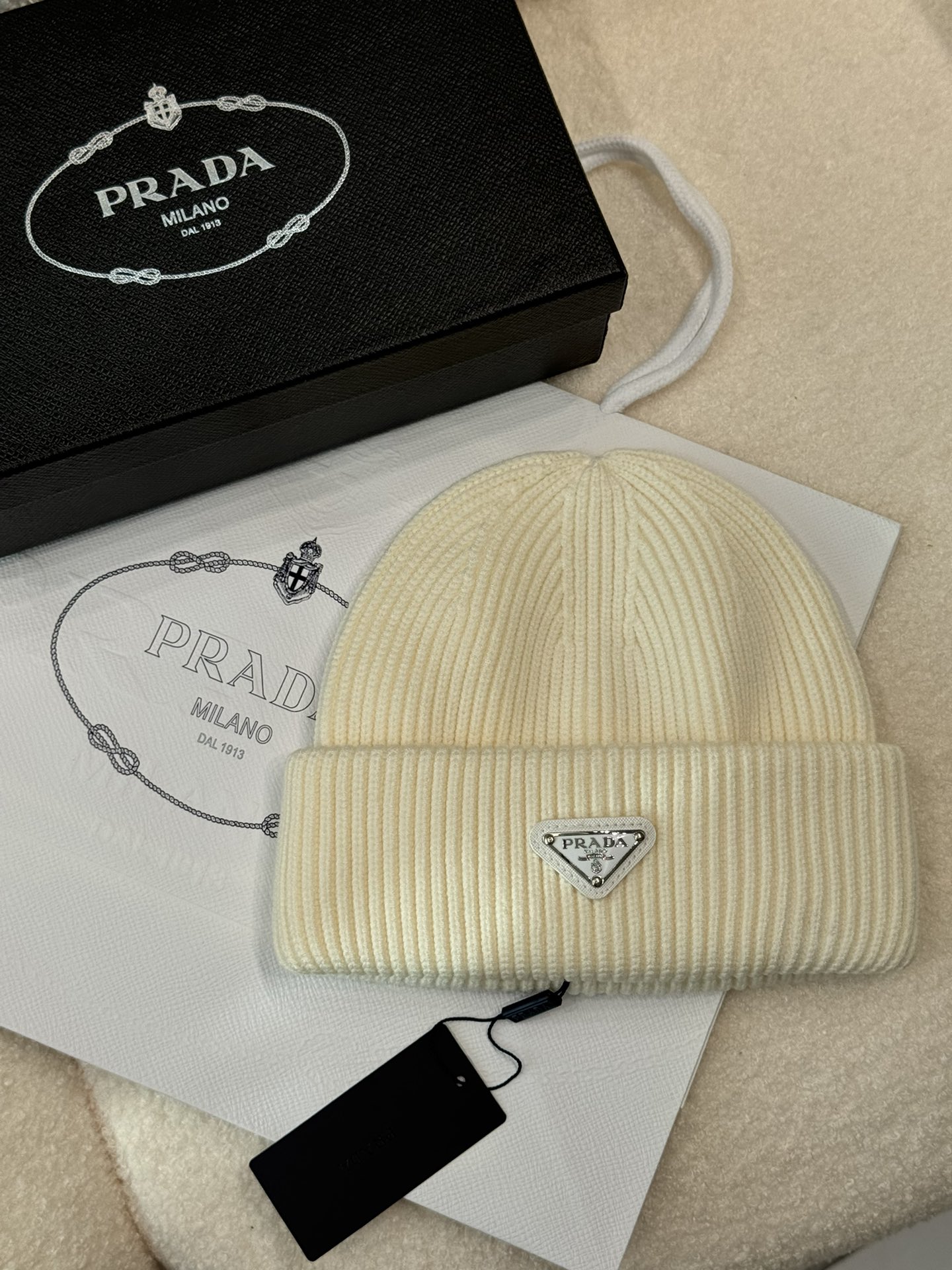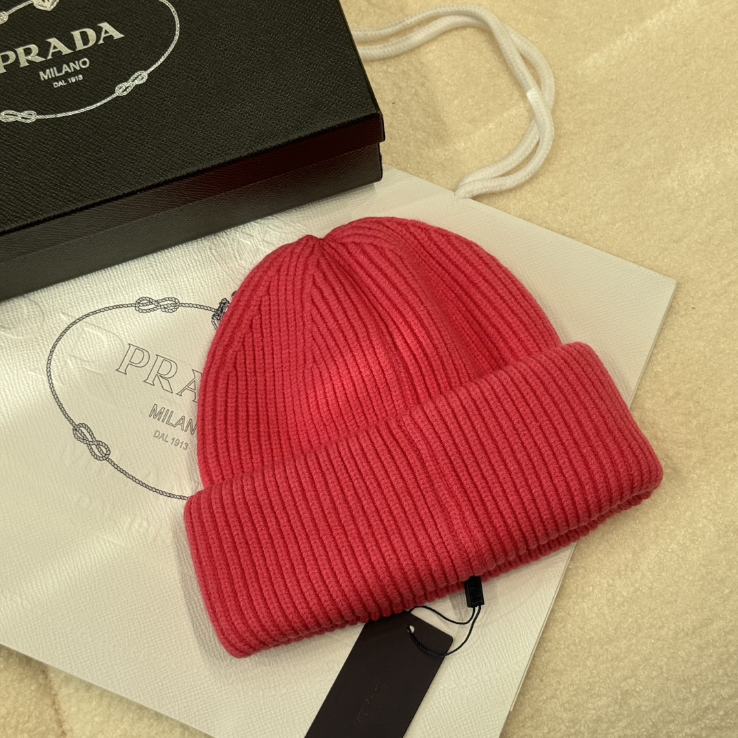 PRADA普拉达秋冬款翻边羊毛针织毛线帽