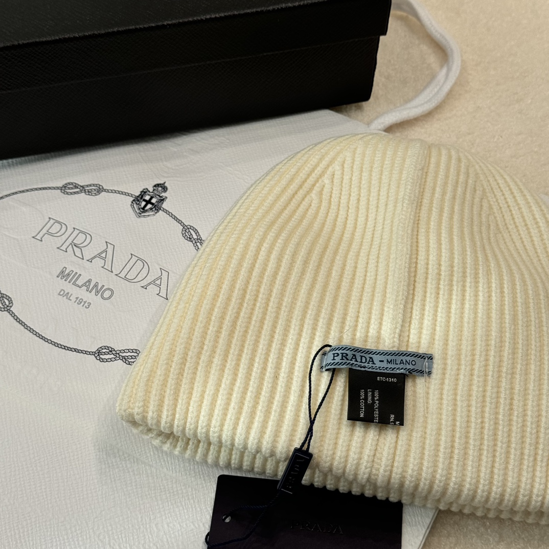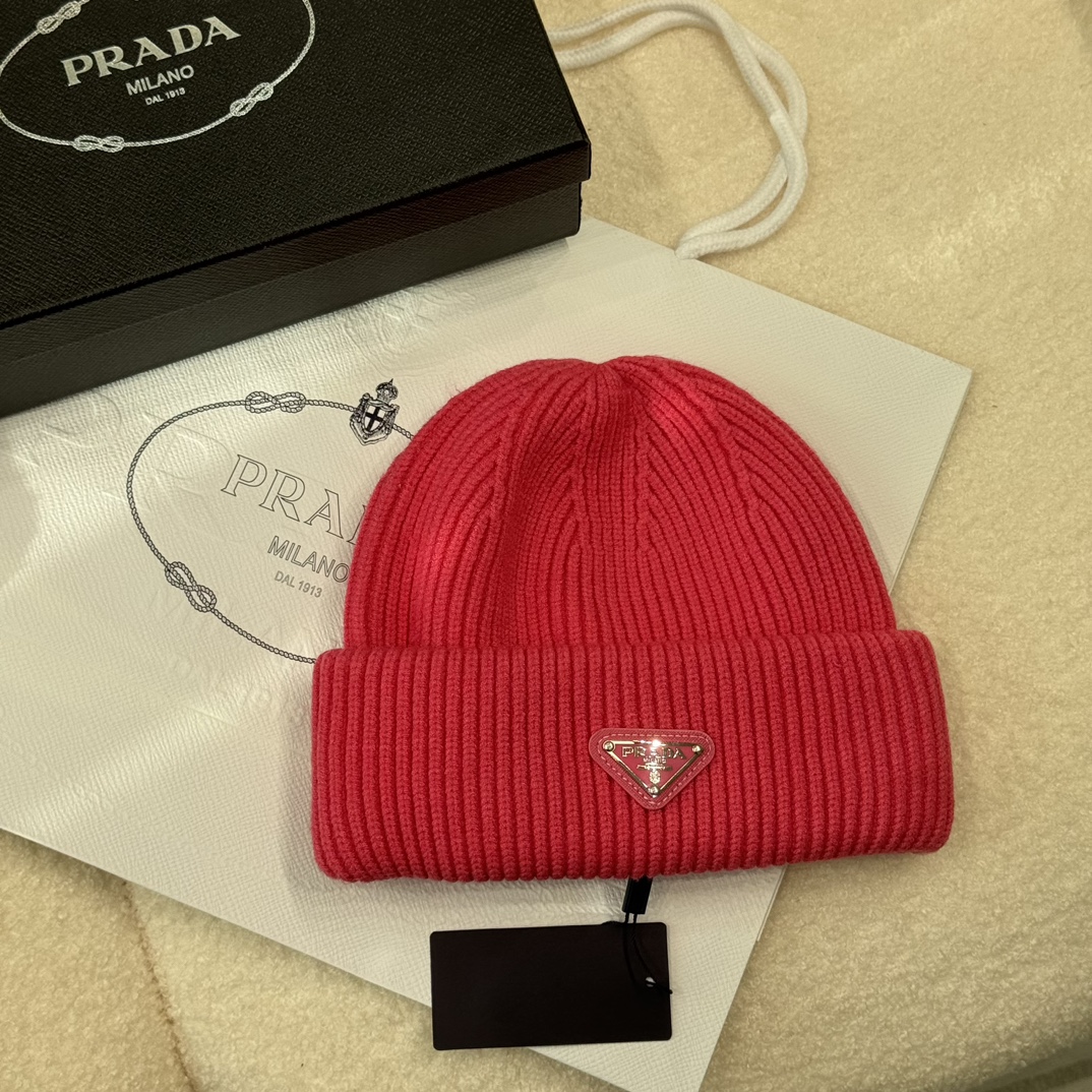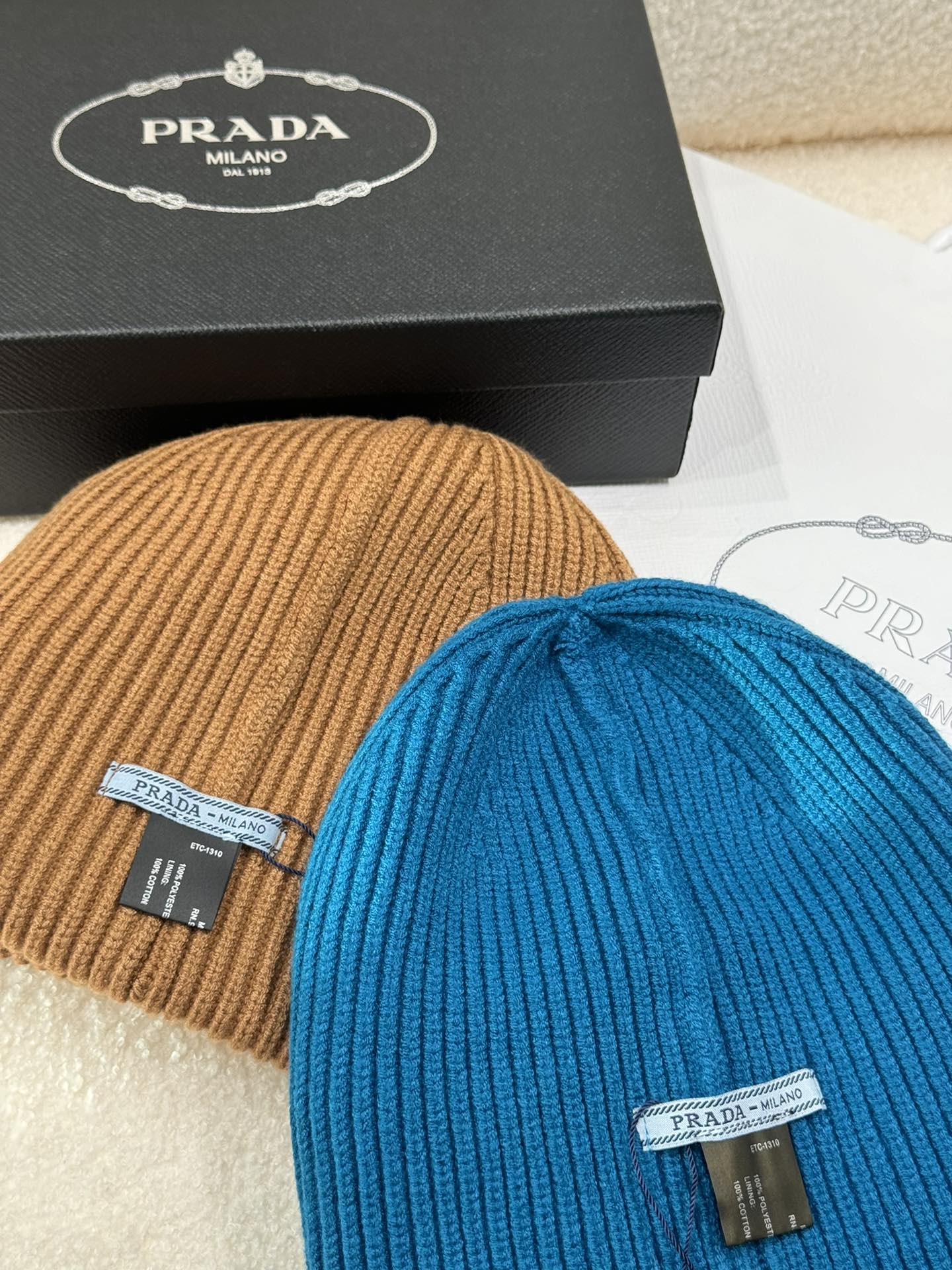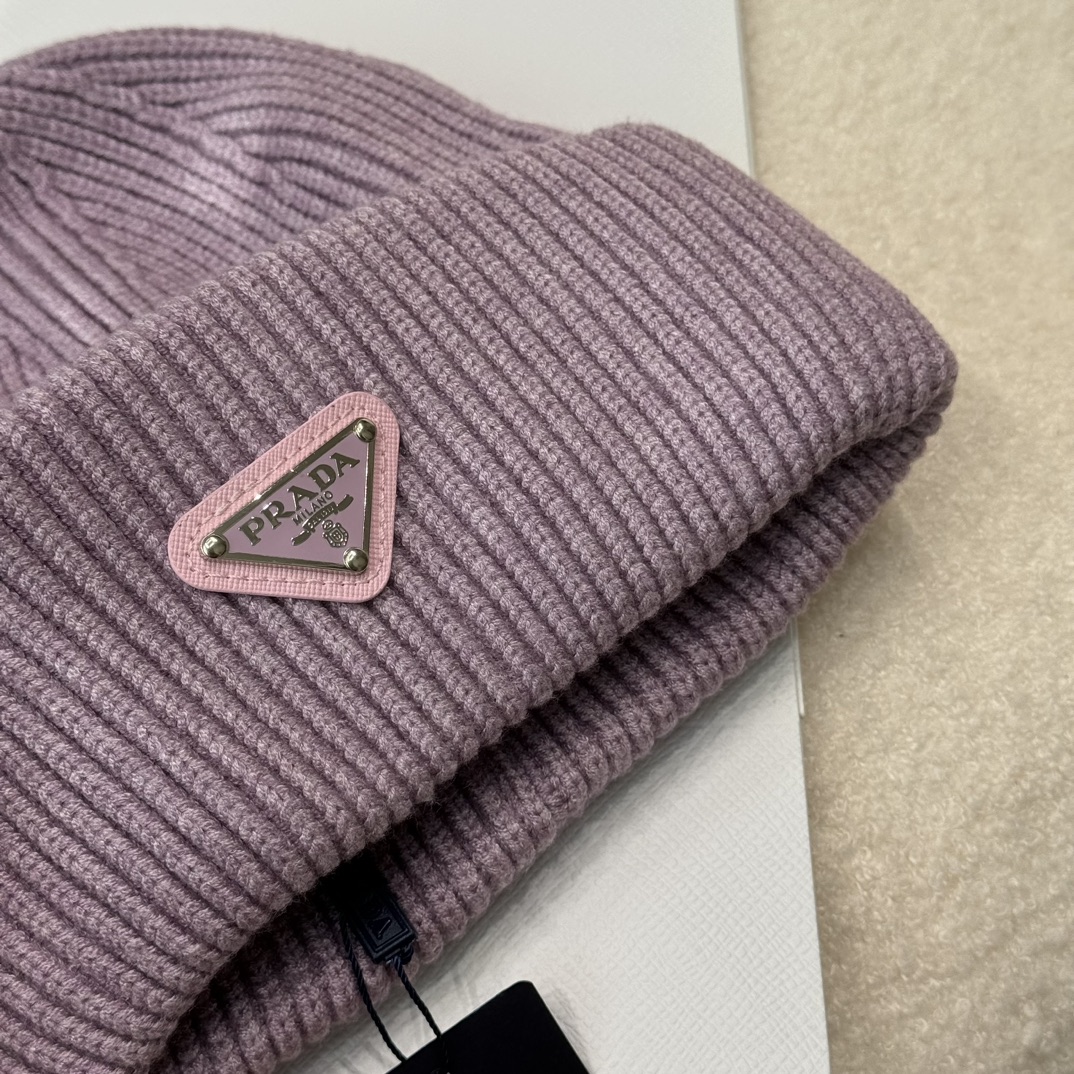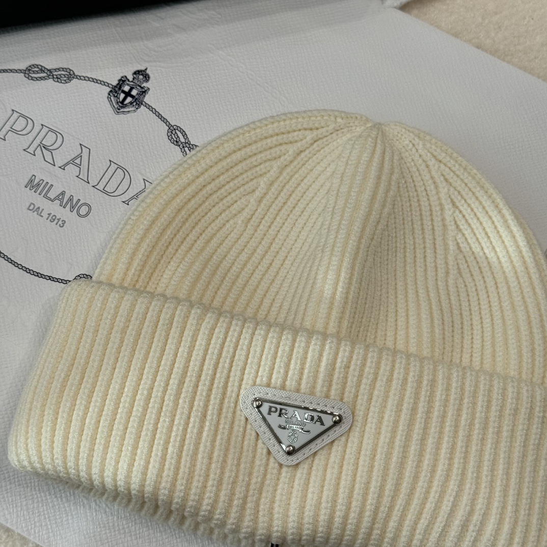 PRADA普拉达秋冬款翻边羊毛针织毛线帽