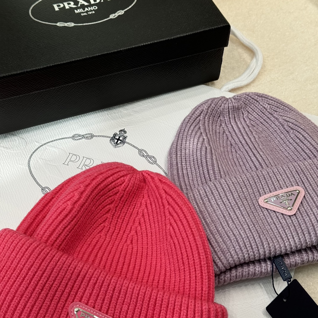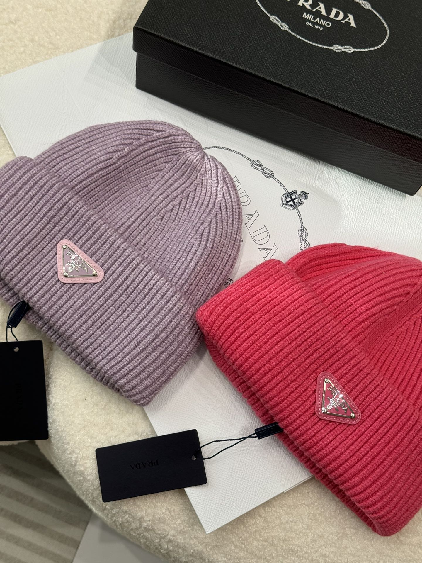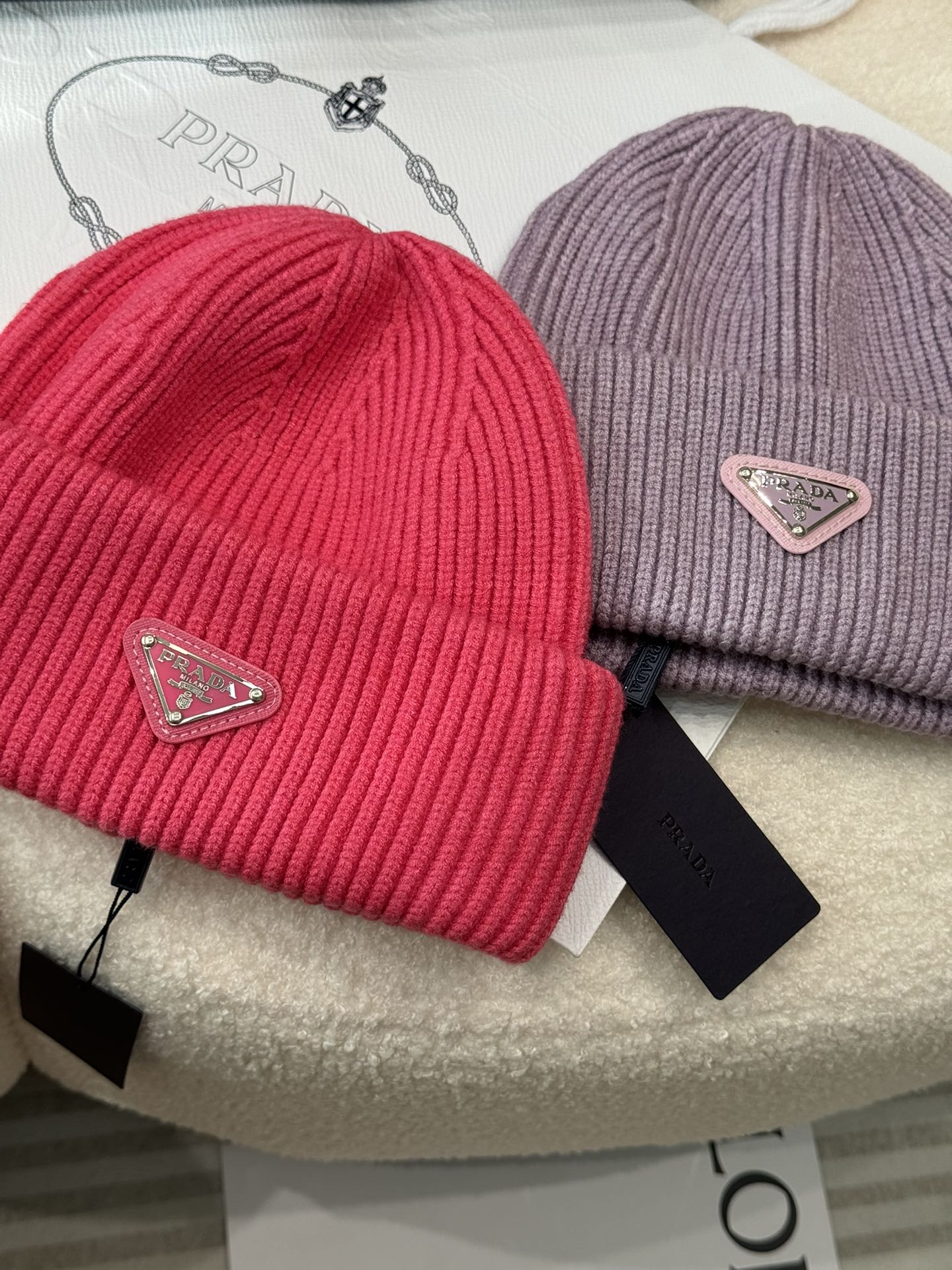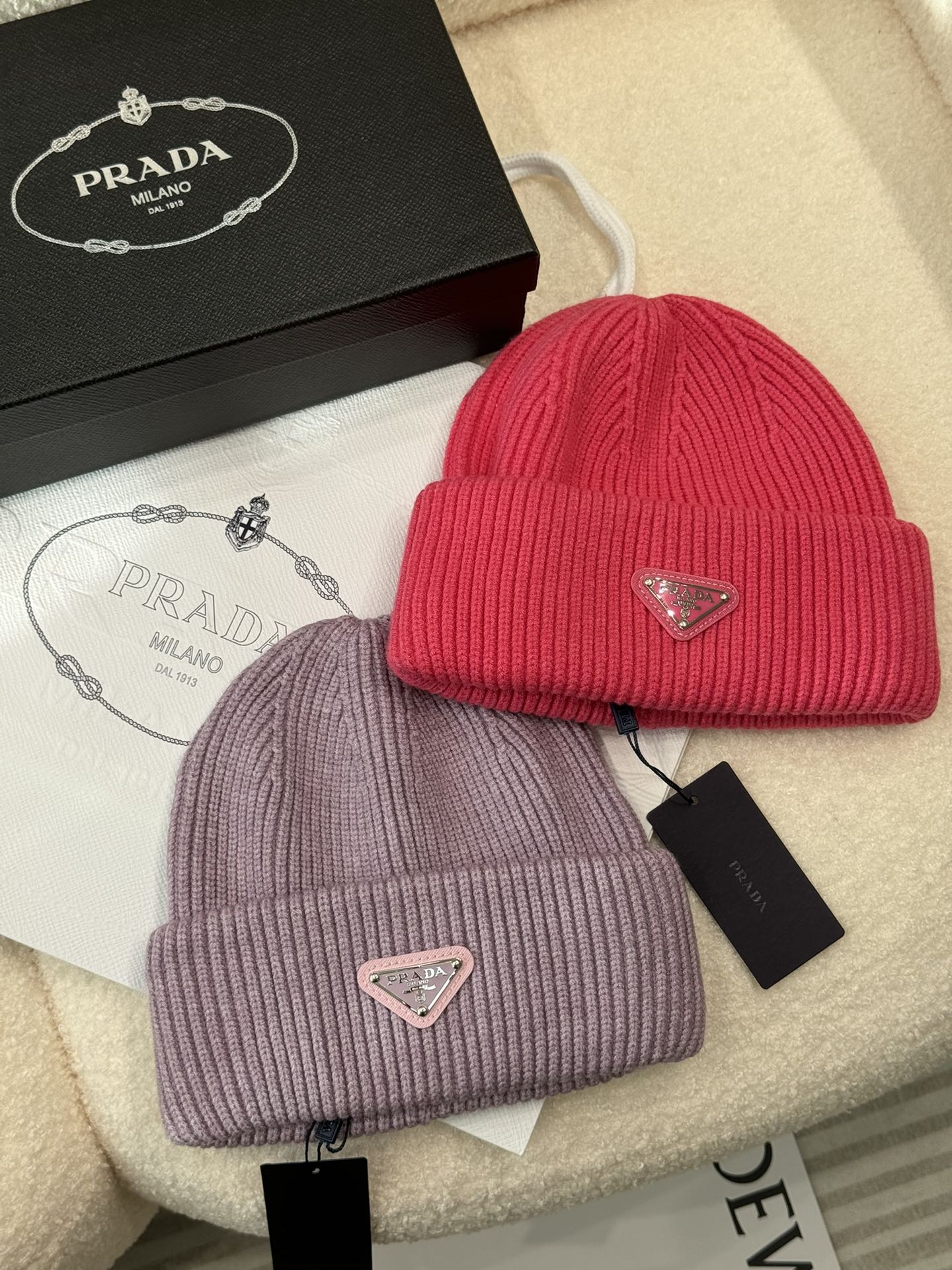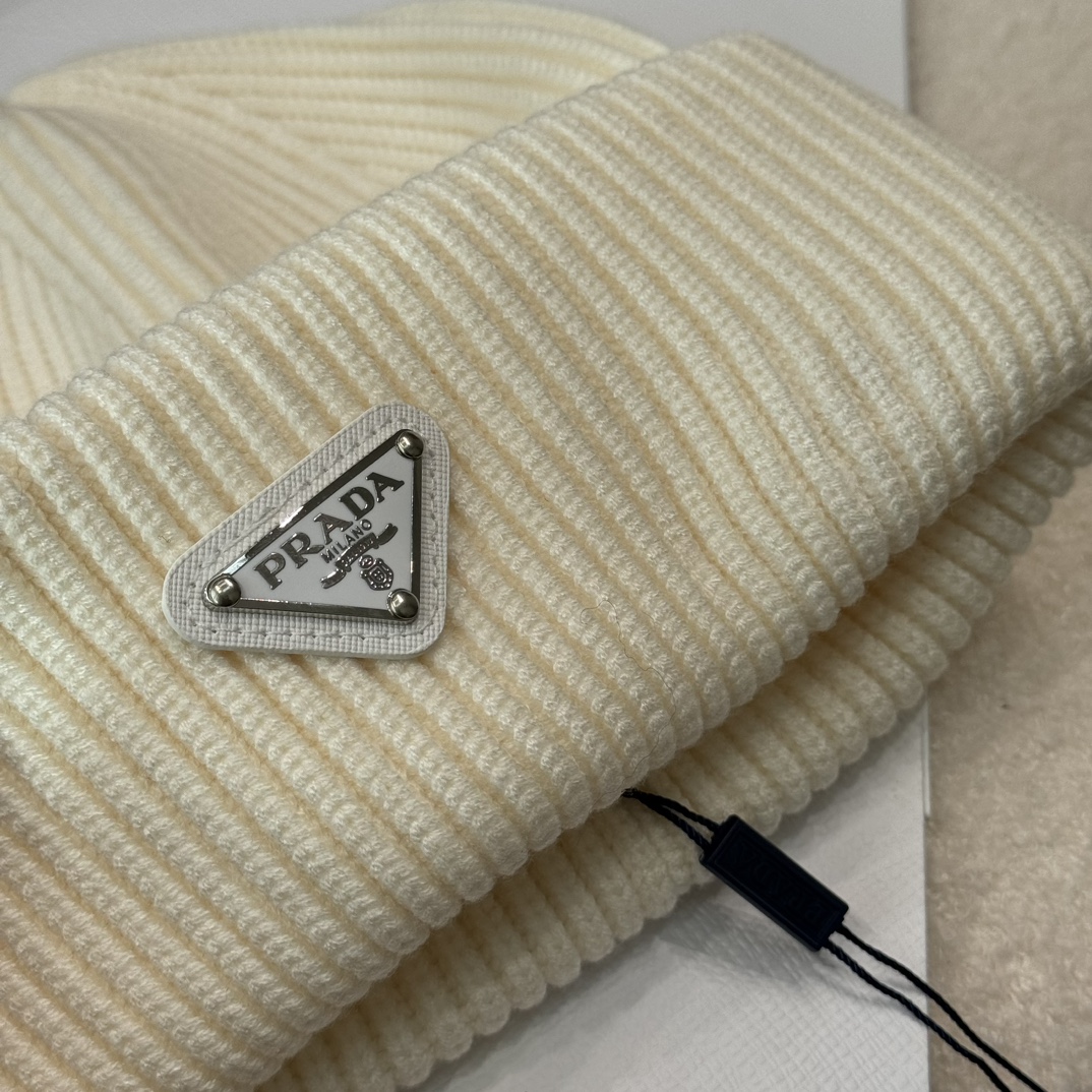 PRADA普拉达秋冬款翻边羊毛针织毛线帽