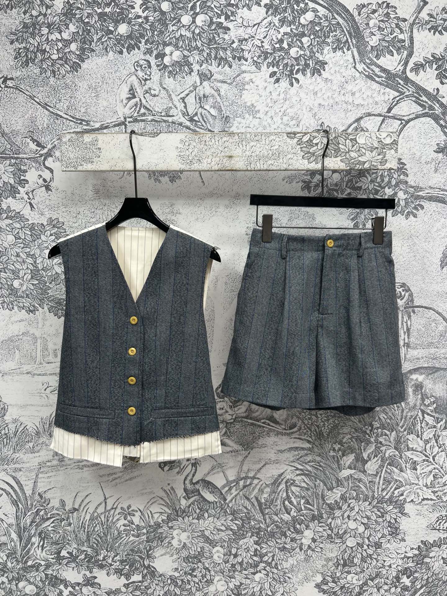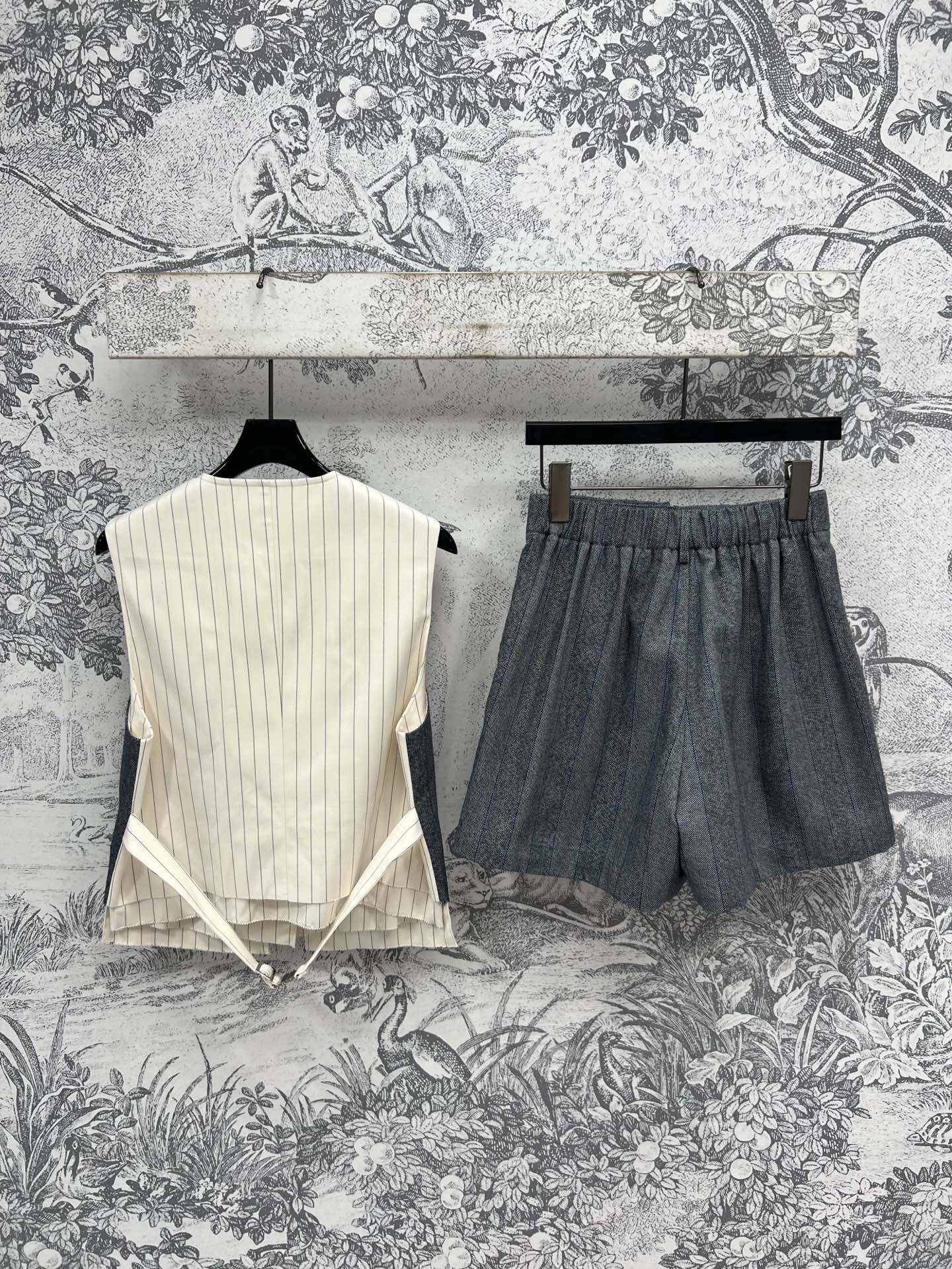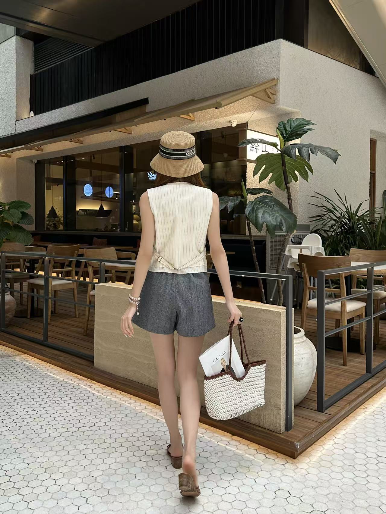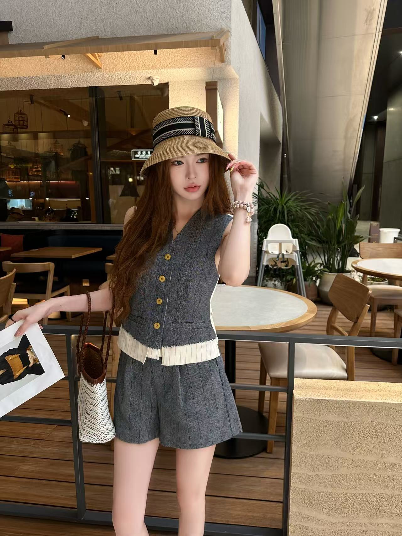 25春夏新款 学院风拼接搭片条纹马甲+高腰短裤