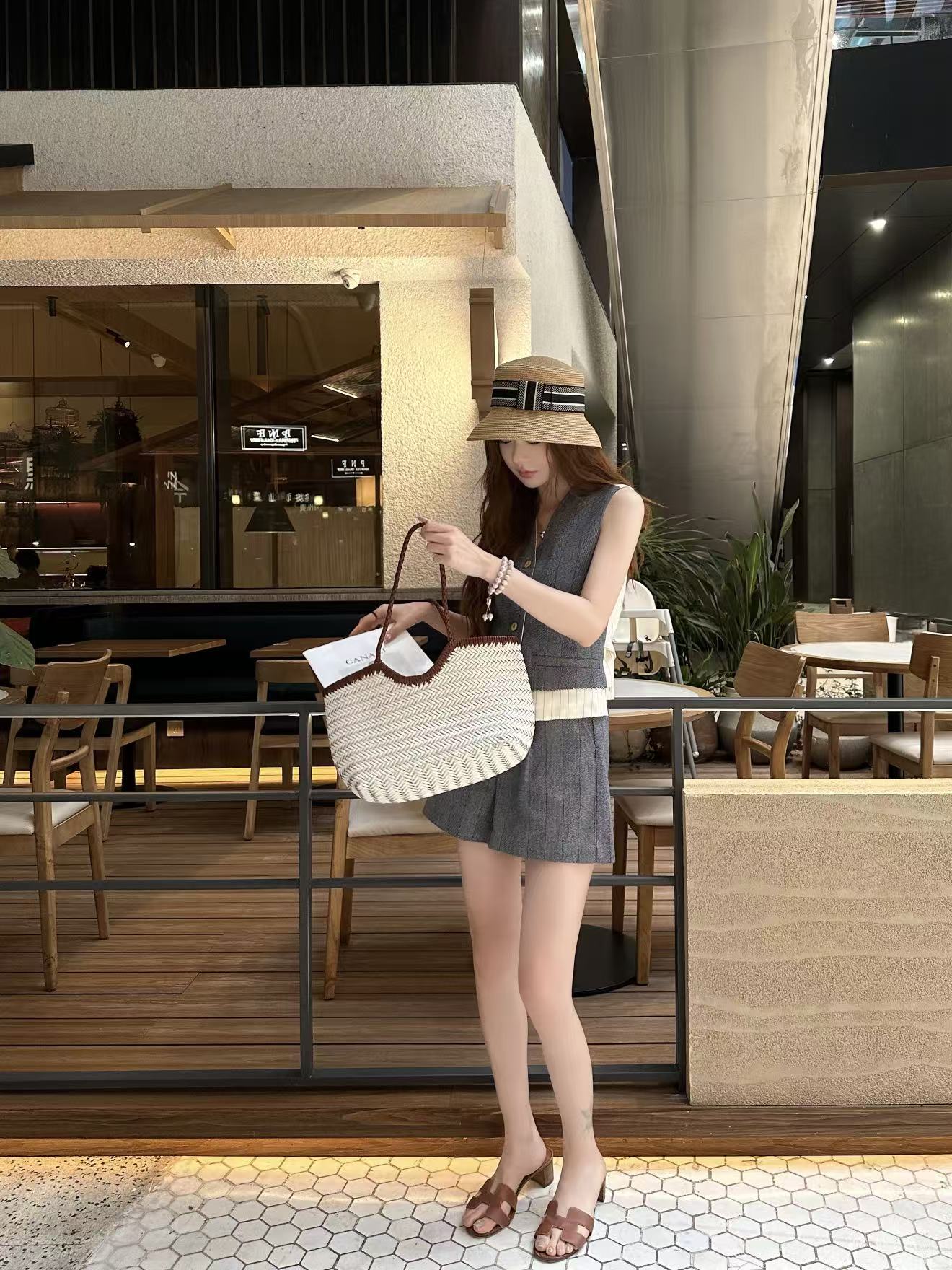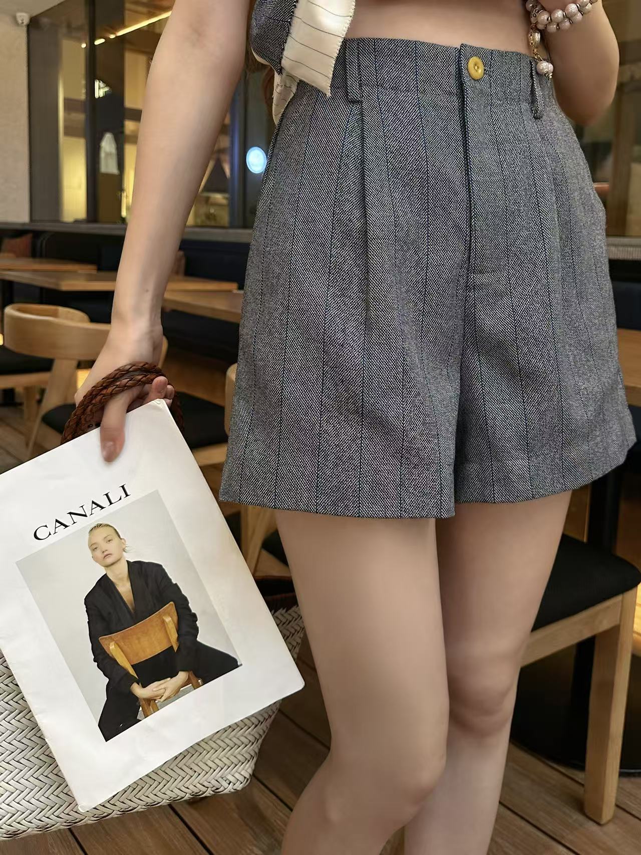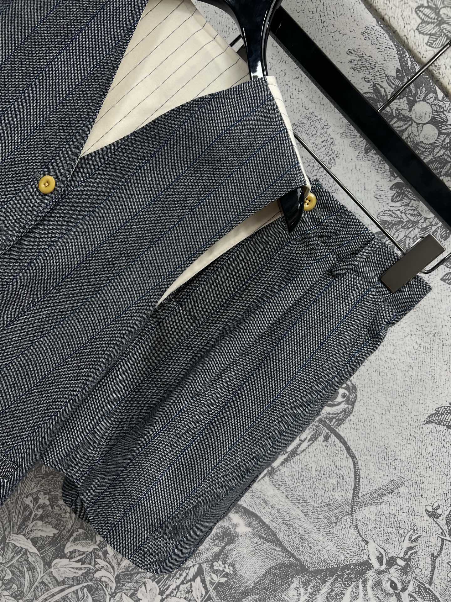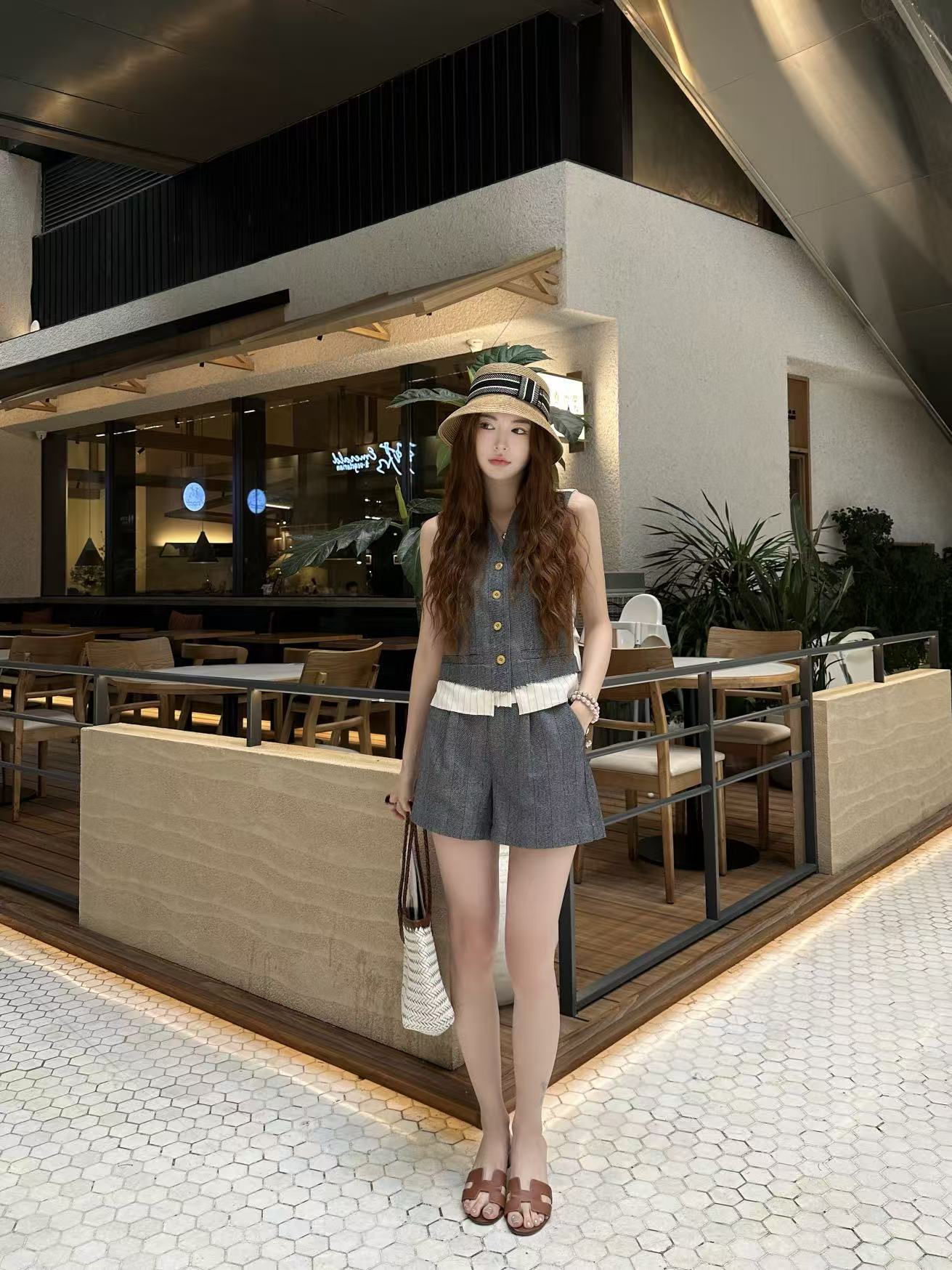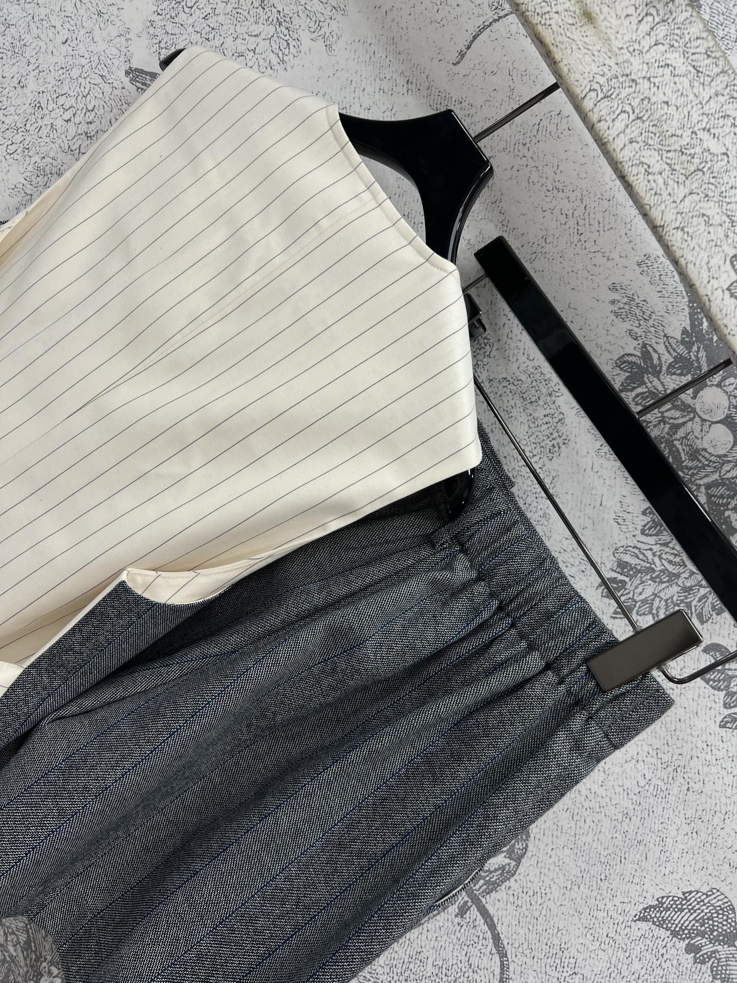 25春夏新款 学院风拼接搭片条纹马甲+高腰短裤