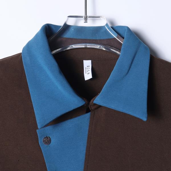 26T09SDSA秋冬新款痞帅男装时尚简约拼接撞色斜纽扣翻领长袖T恤百搭