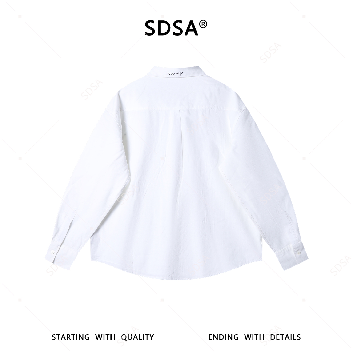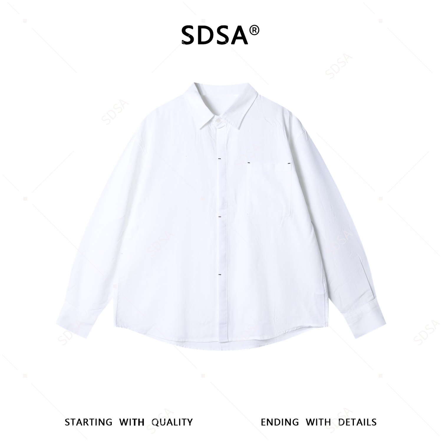 33270SDSA男士秋冬新款痞帅男装极简风刺绣衬衫长袖宽松纯色老钱风百搭