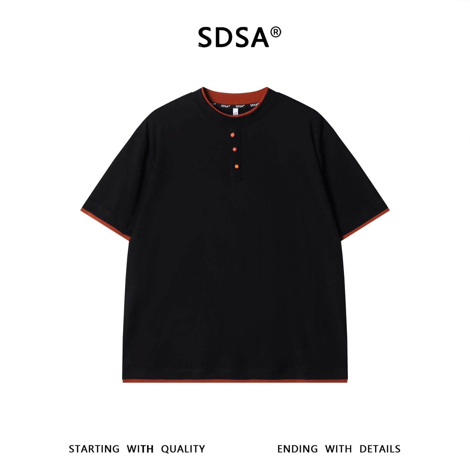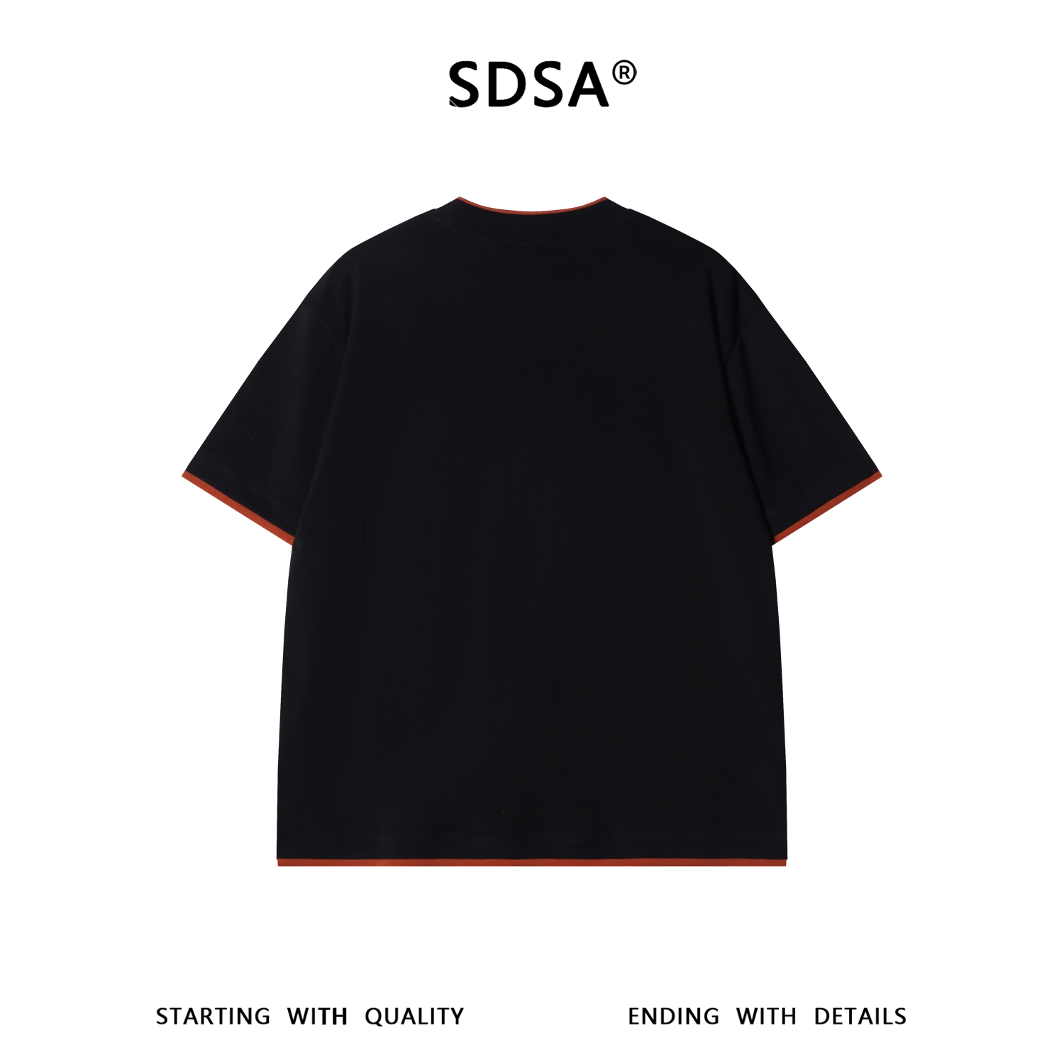 SDSA男装2026新款高贵轻奢潮牌撞色拼接假两件短袖T恤百搭时尚