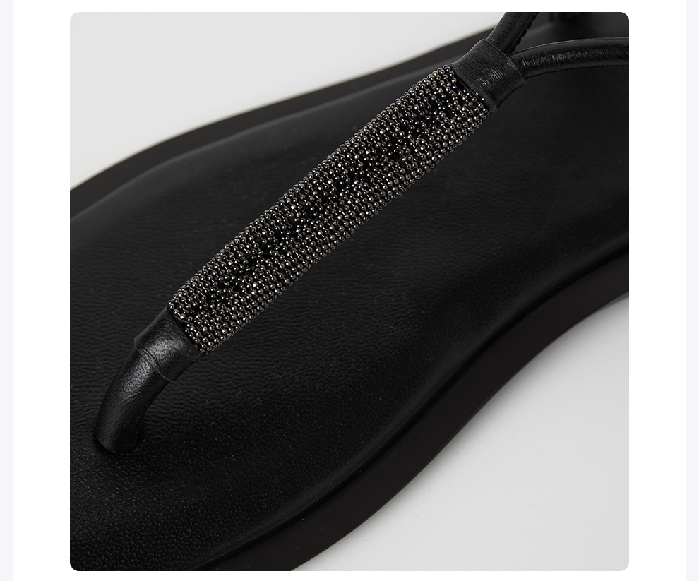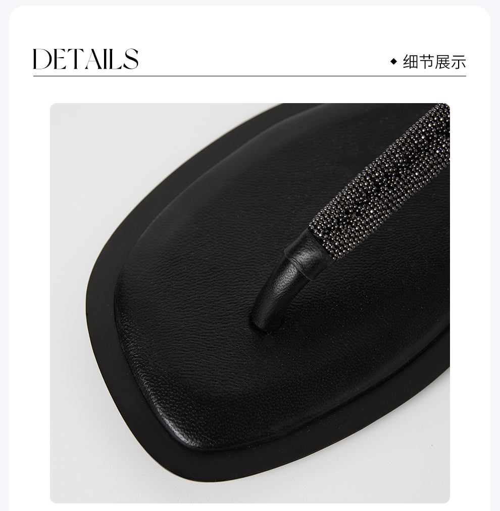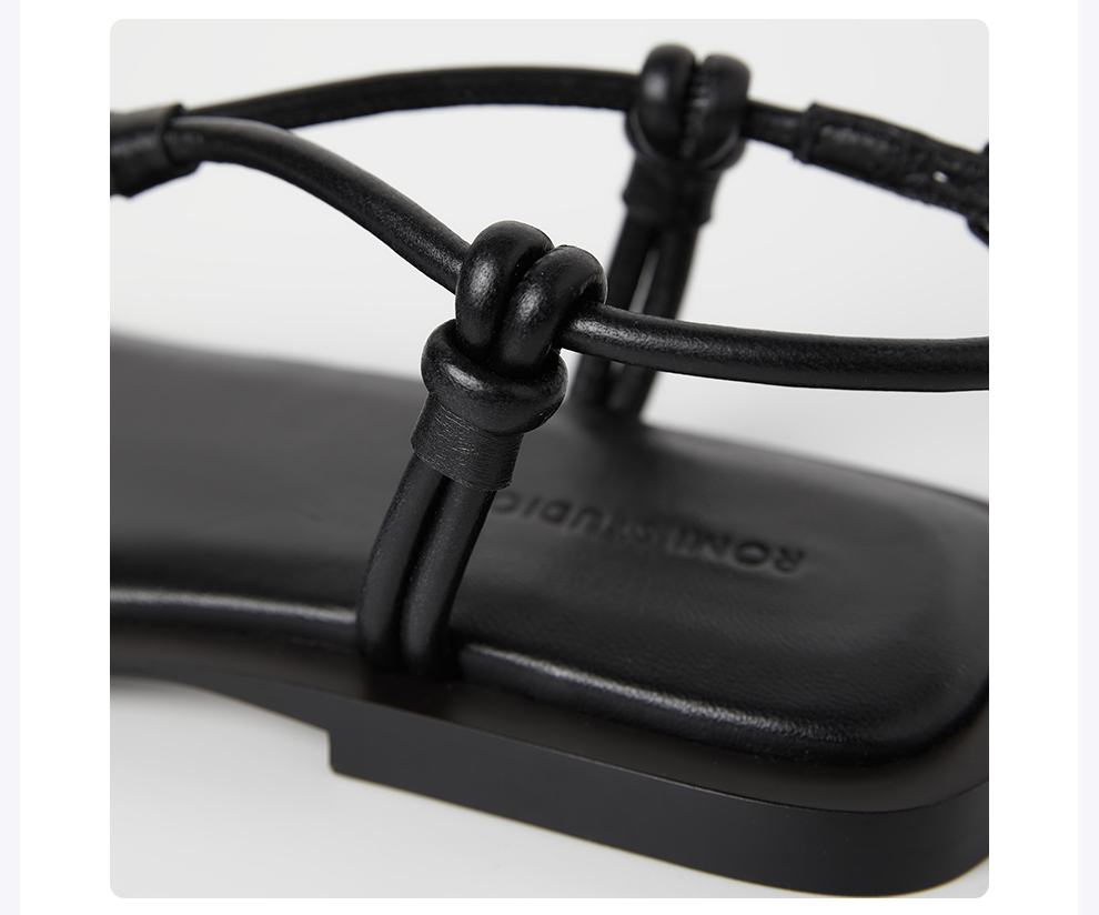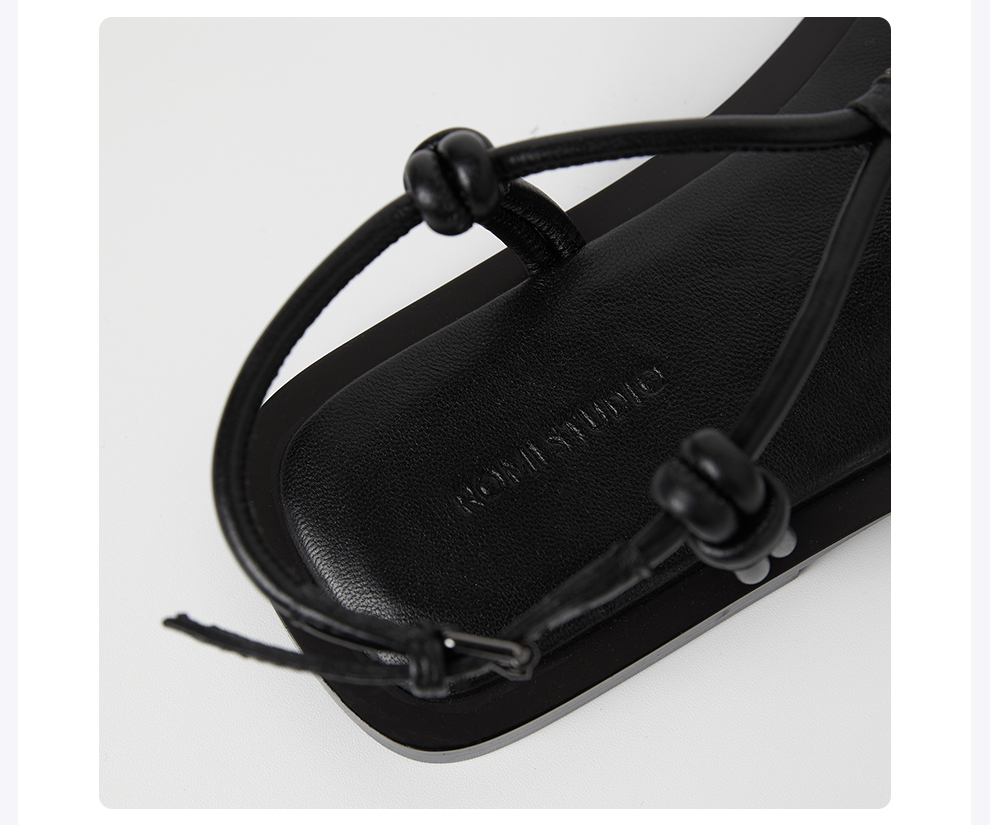 ROMI STUDIO黑色老钱羊皮革一字式扣带平底夹趾凉鞋 RWCRP32806【发货时效25天】