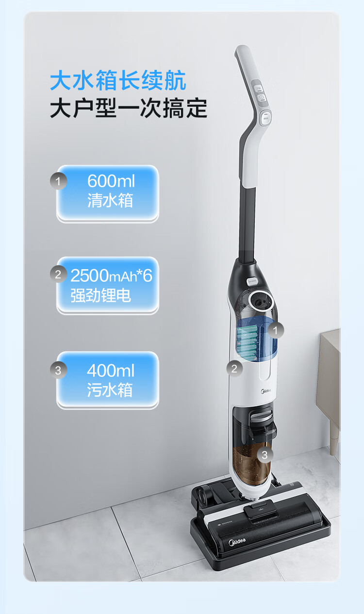 美的(Midea)洗地机G3 吸拖一体 无尘感拖地 吸尘扫地 家用