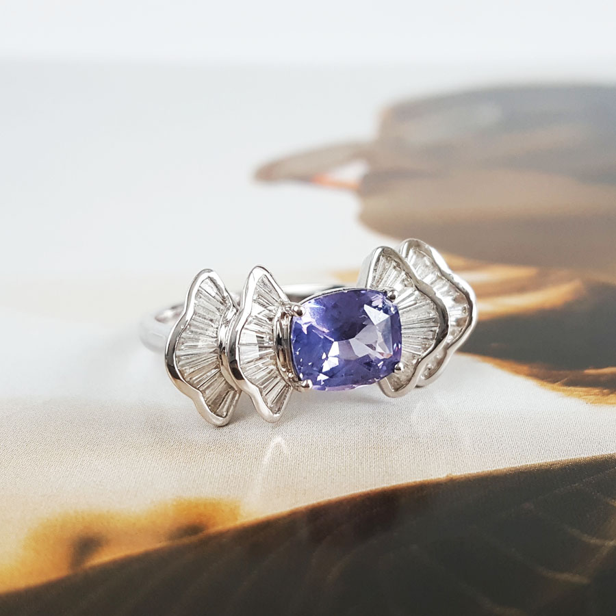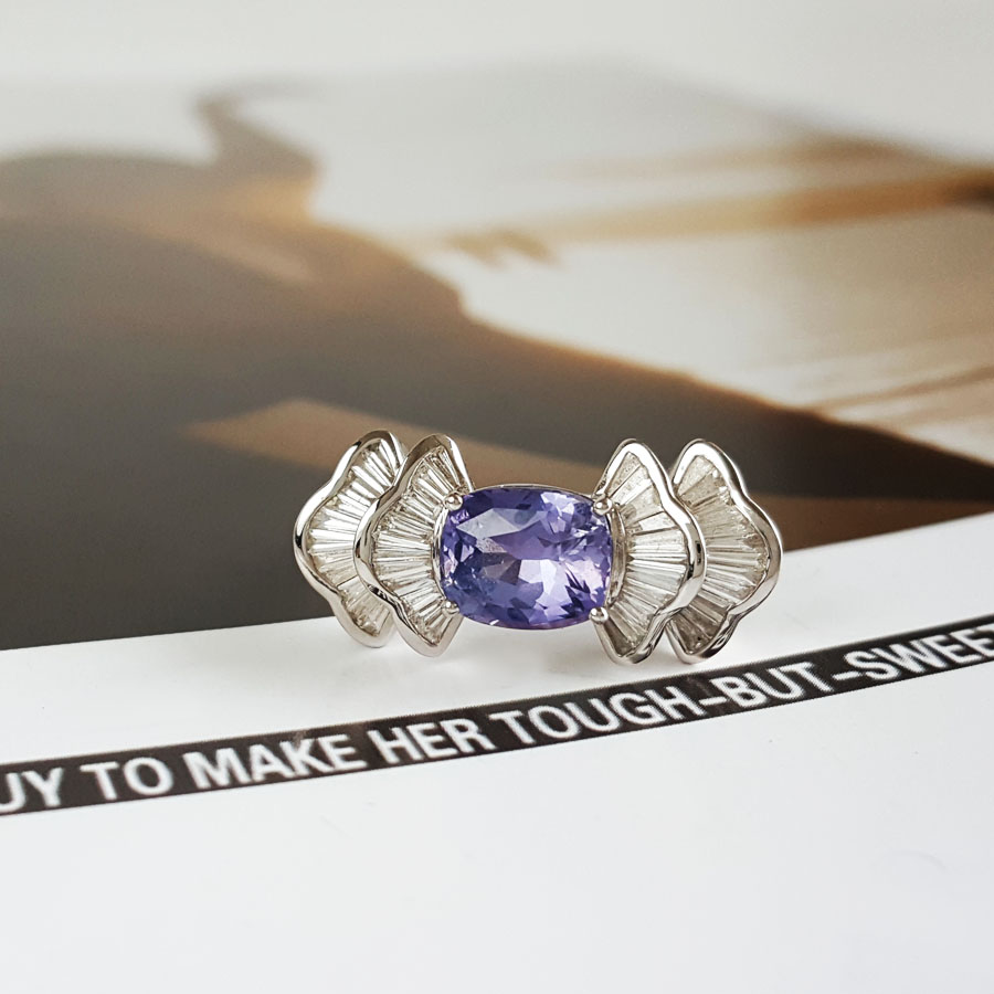 名称 | AU750收藏级白金镶钻镶天然1.80克拉紫色蓝宝石戒指 |
