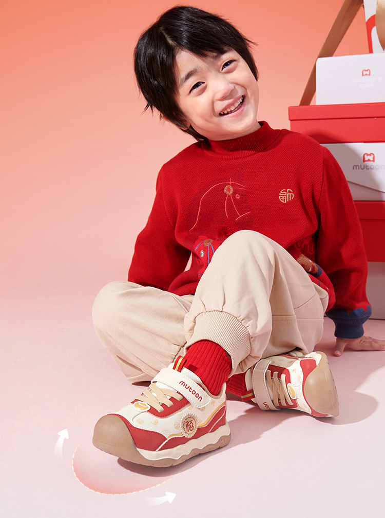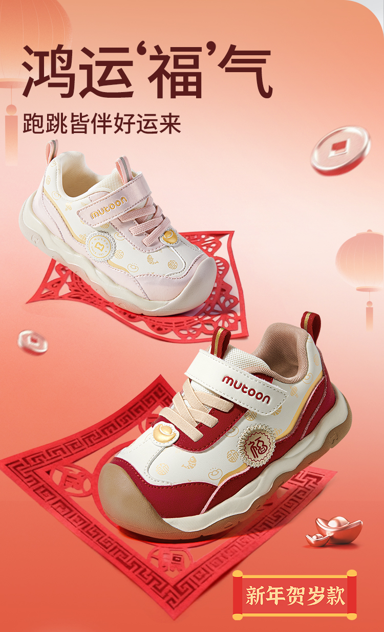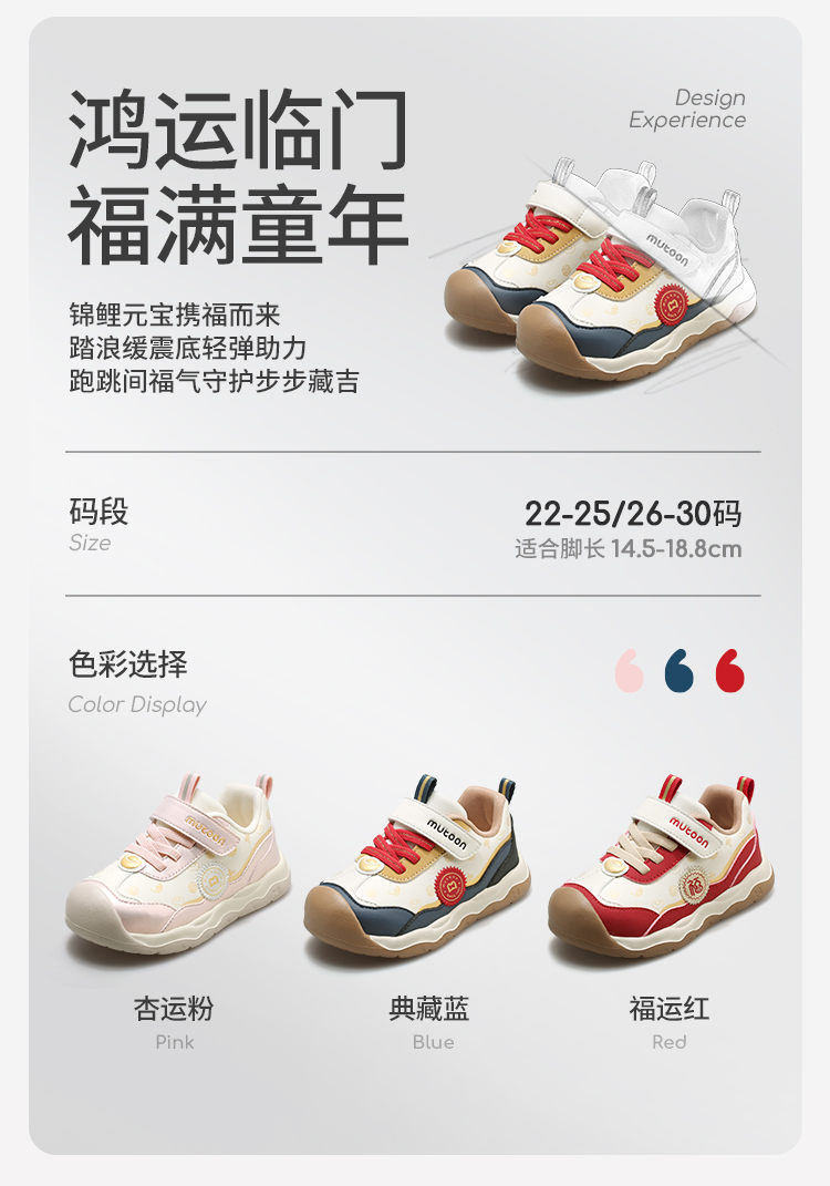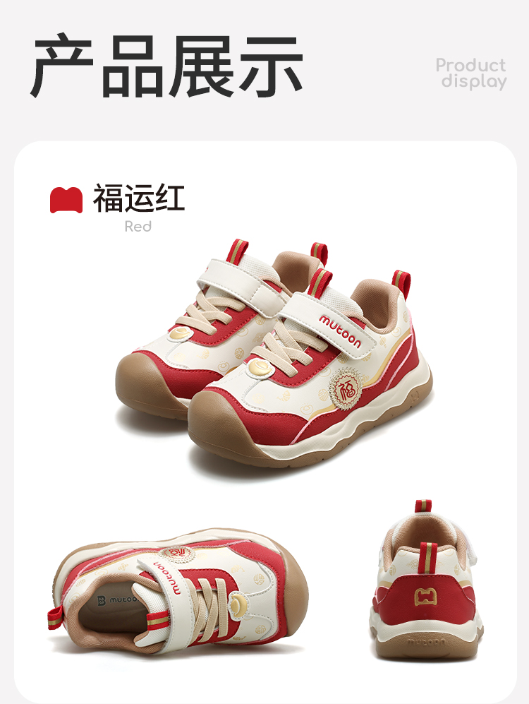牧童2026春季新款运动机能鞋新年福运鞋幼儿园鞋子防滑透气稳步鞋